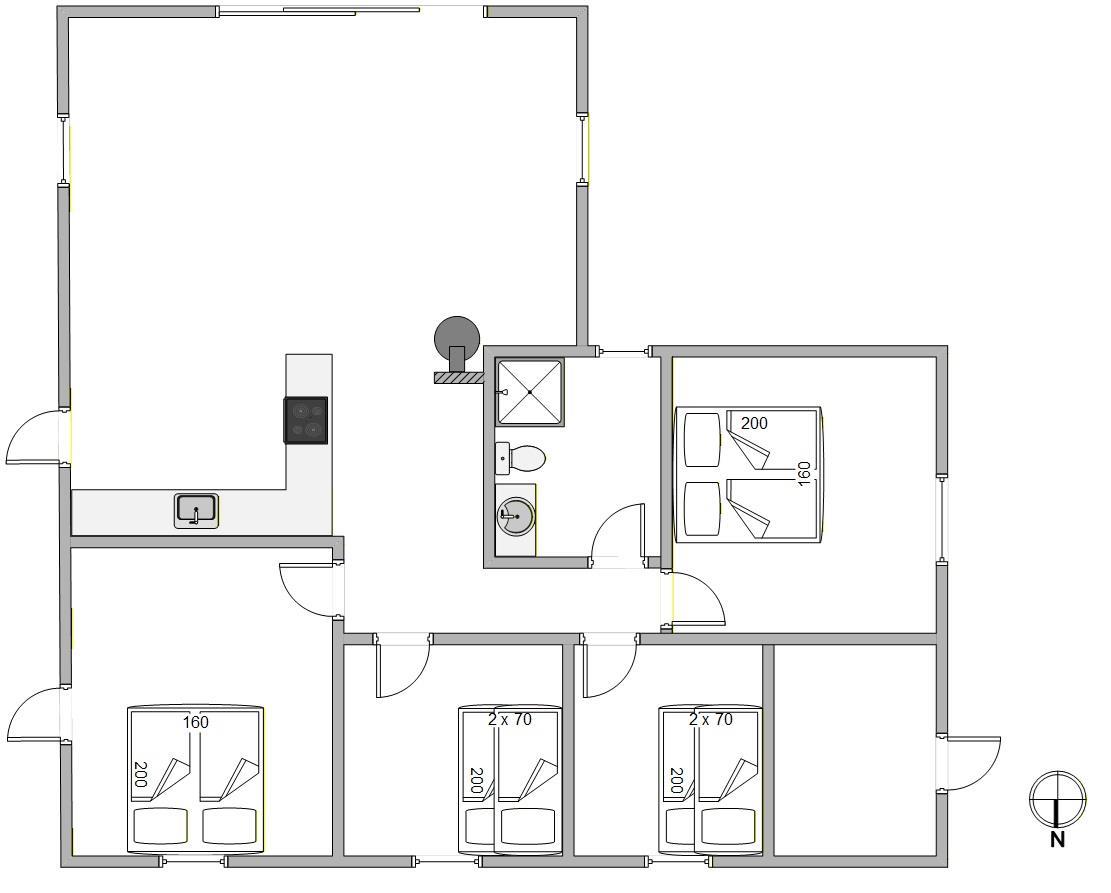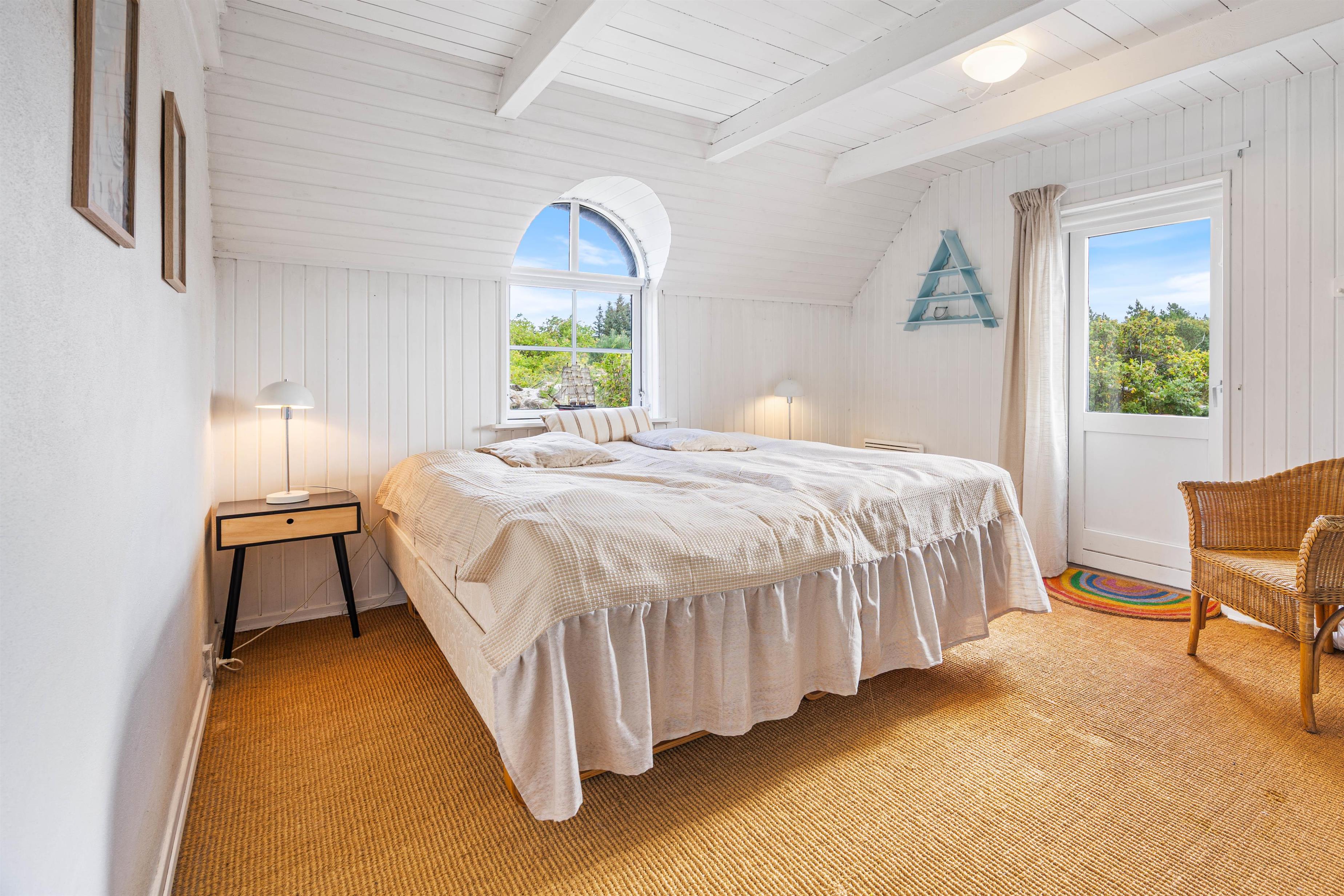 Sommerhusets sovepladser er fordelt på 4 værelser, hvoraf 2 er indrettet med dobbeltsenge på 160 cm. Et andet værelse er indrettet med 2 køjesenge, mens I på det sidste værelse finder én køjeseng.