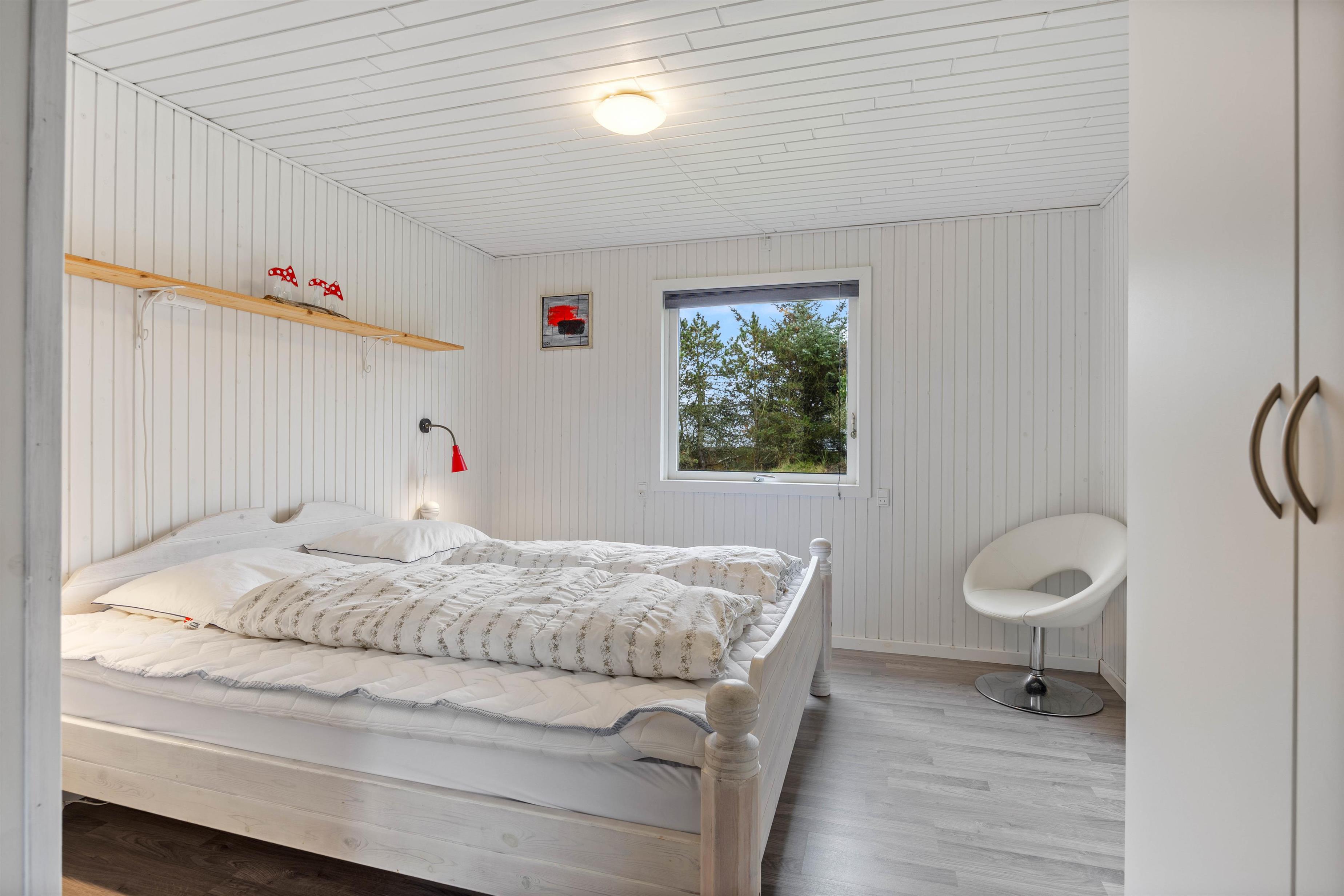 Badeværelset har gulvvarme, og i de 3 soveværelser fordeles 6 komfortable sovepladser sig med 1 værelse med dobbeltseng 180 x 200 centimeter, 1 værelse med dobbeltseng 140 x 200 centimeter og 1 værelse med køjesenge 2 x 70 x 190 cm. Her er også vaskemaskine og tørretumbler, så I kan friske garderoben op i løbet af ferien. Den omkostnings- og energibesparende varmepumpe sørger for behagelige temperaturer i feriehuset.