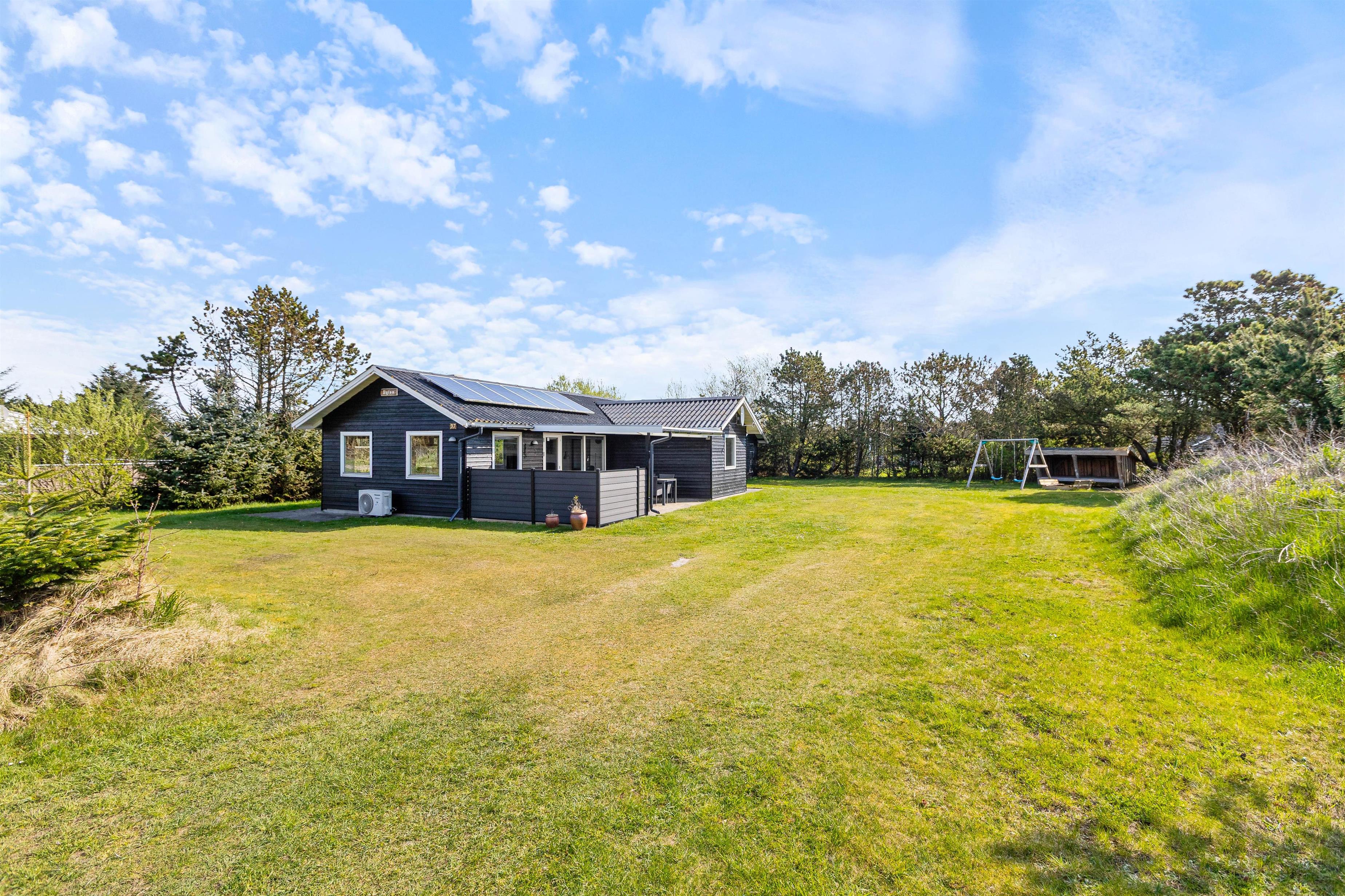 På den åbne terrasse, som omgiver feriehuset, kan I solbade på liggestolene eller trække jer tilbage i havemøblerne med en god bog. Imens kan børnene lege i sandkassen eller gyngerne – eller spille et spil viking på plænegrunden. Tænd op i grillen til aften og nyd et lækkert grillmåltid sammen, imens skyggerne bliver lange. Bagefter kan I nå en dejlig gåtur til stranden og opleve solnedgangen i Vesterhavet.