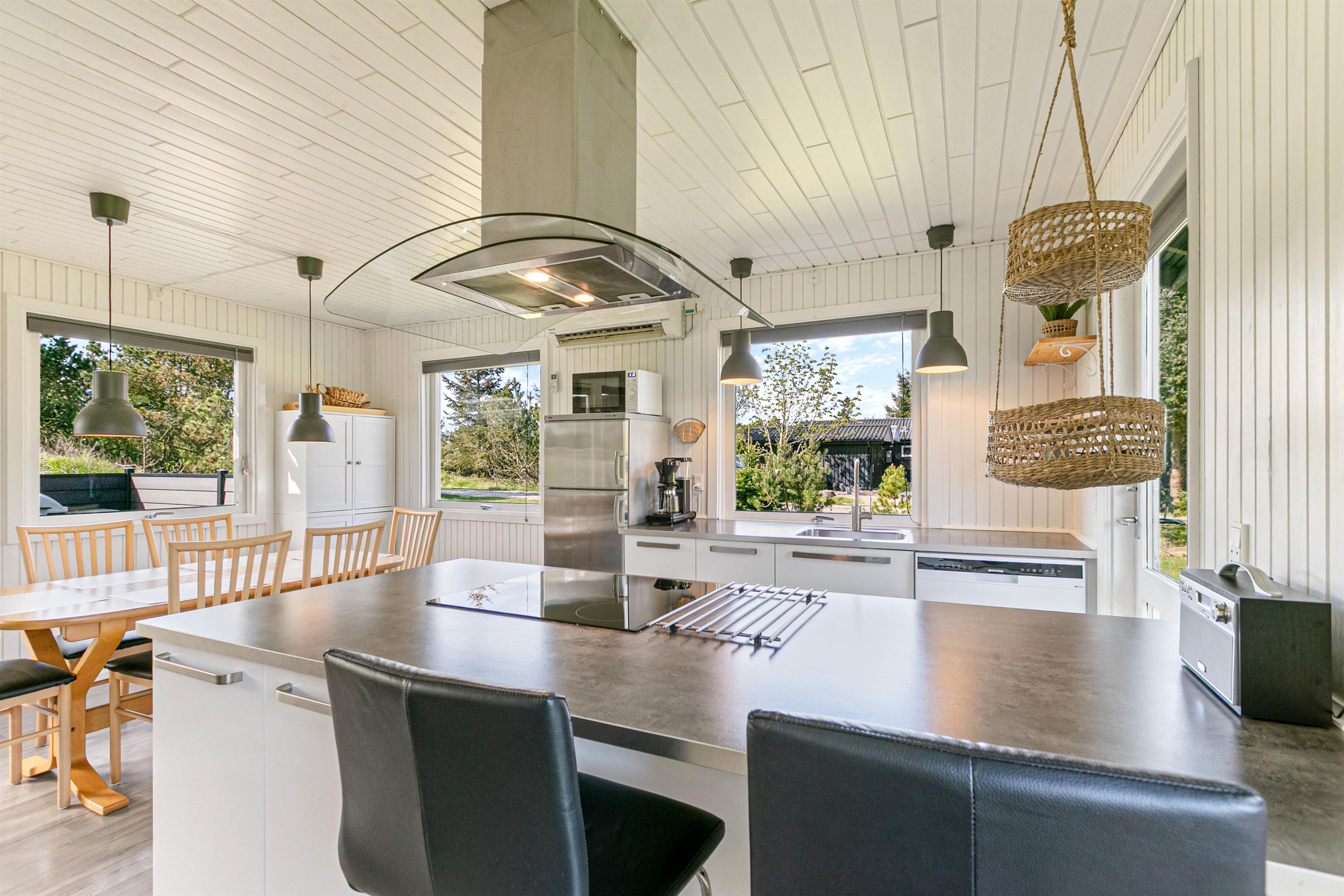 På Sigfred Jensens Vej 37 melder feriestemningen sig straks, man træder ind ad døren. Den lyse og venlige indretning indbyder til, at I slapper af i sofaen foran den knitrende ild i brændeovnen. Det åbne køkken indeholder alt, hvad I behøver for at forkæle hinanden med lækre hjemmelavede måltider, herunder induktionskomfur, opvaskemaskine og mikrobølgeovn. I det separate aktivitetsrum kan I spille bordtennis, pool eller elektronisk dart.