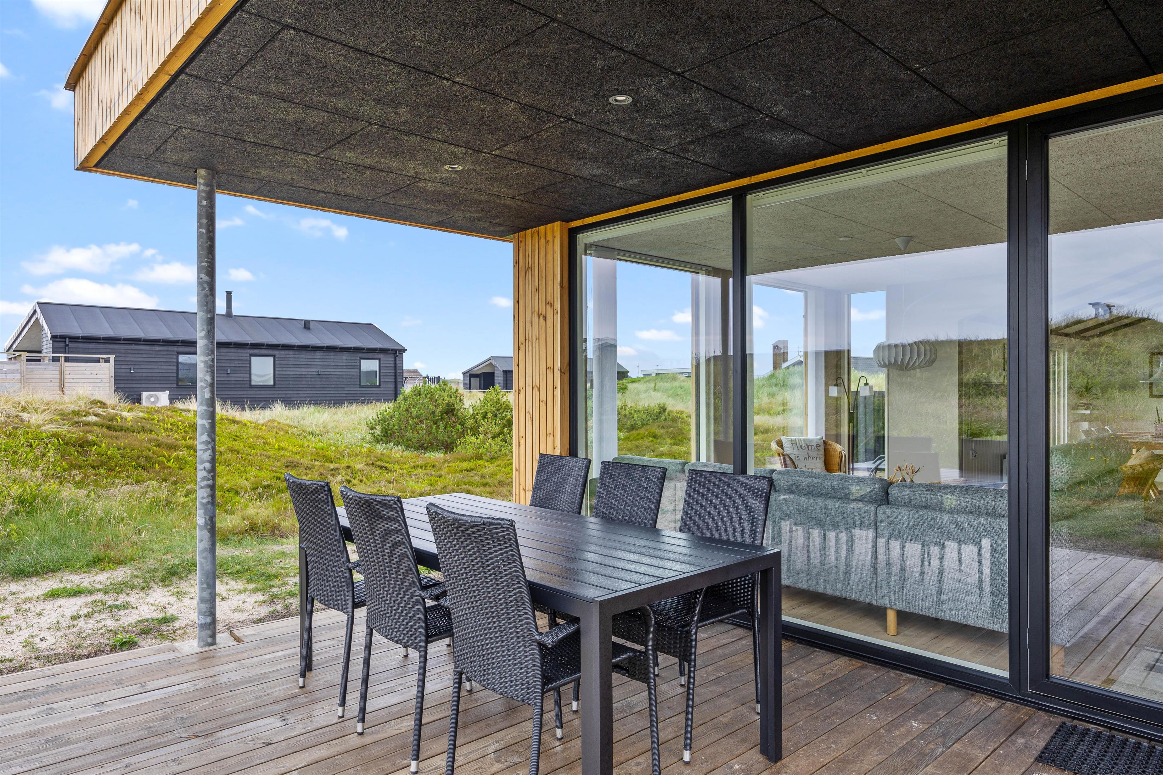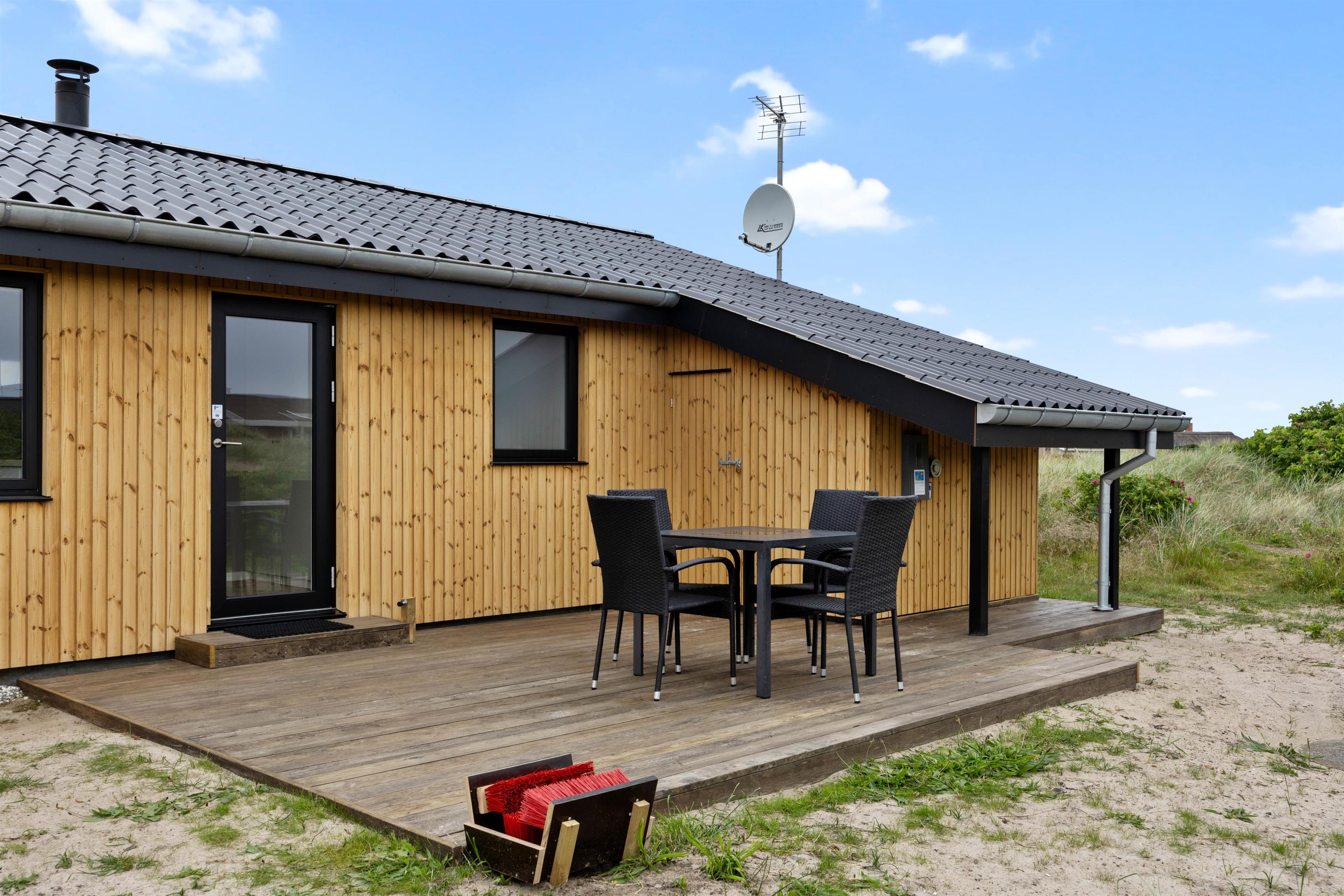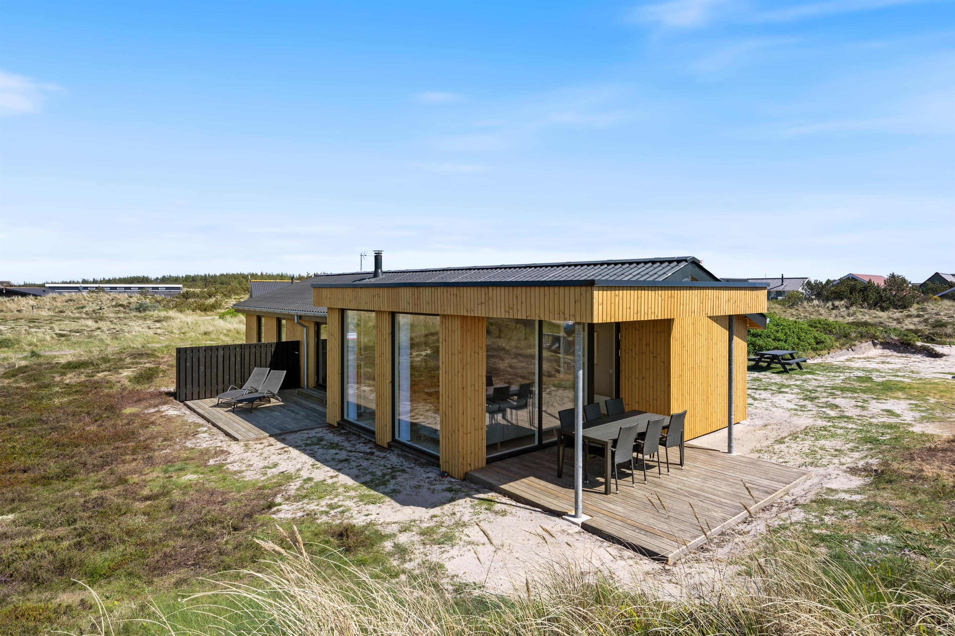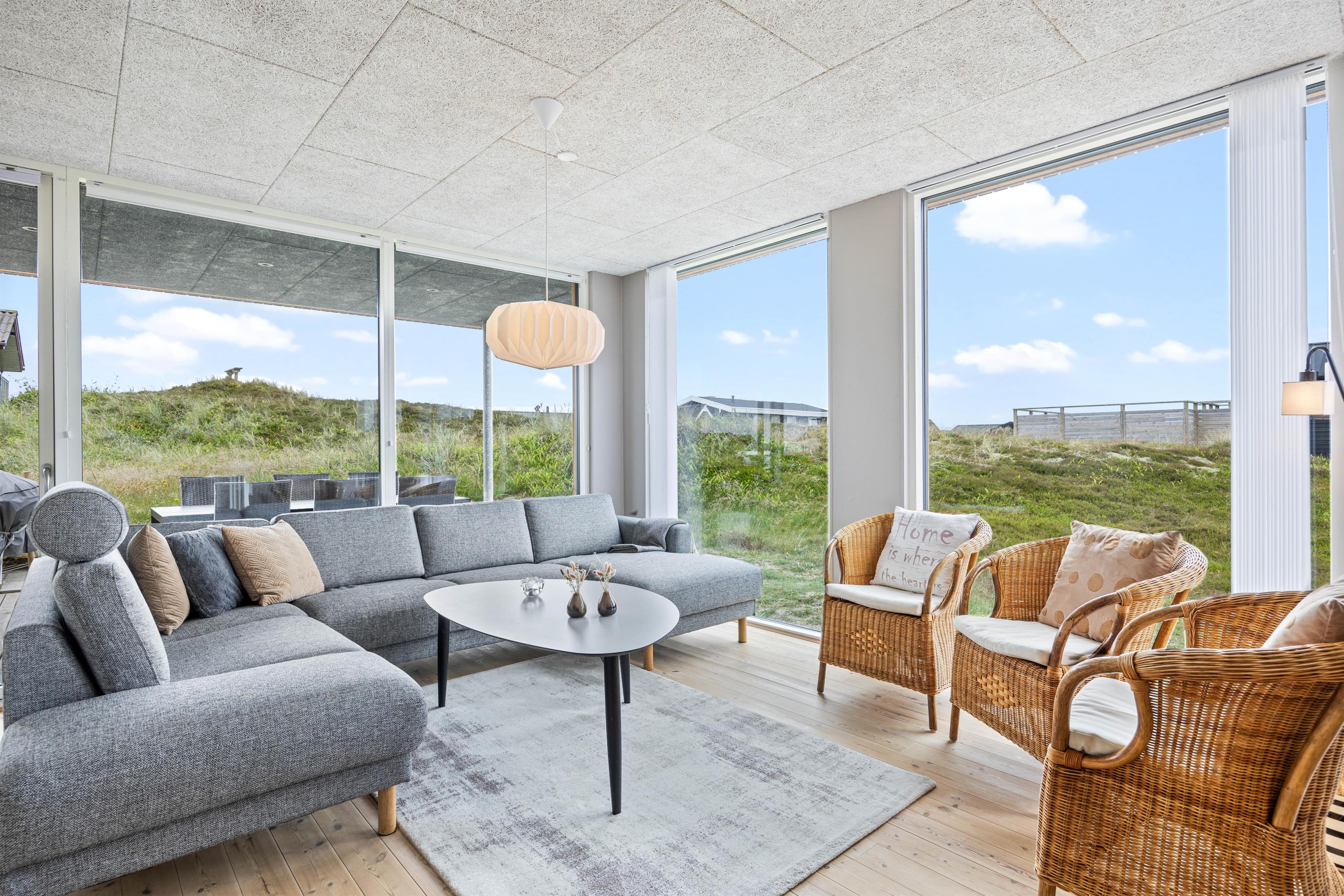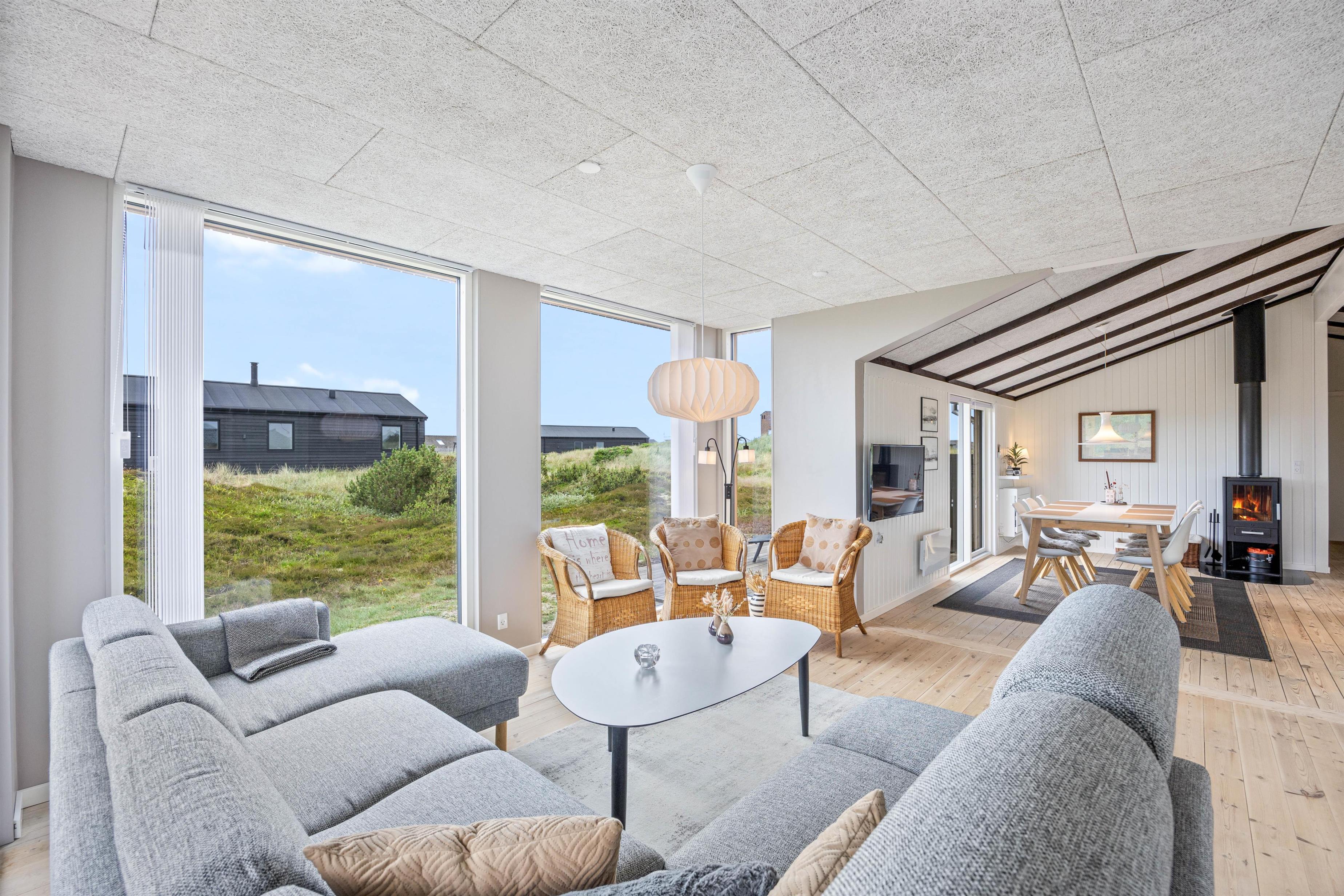 Feriehuset er hyggeligt og indrettet i lyse, venlige nuancer. Med sine 98 kvadratmeter er her fin plads til samvær og afslapning med familie og venner. Her er nogle skønne vinduer, hvor lyset strømmer ind. Hjerterummet er det fine alrum, hvor I alle kan samles. Her er stue og køkken i åben forbindelse, så I kan grine og have det sjovt, på tværs af rummet. I det åbne og veludstyrede samtalekøkken bliver madlavningen til en leg – og opvasken klarer opvaskemaskinen. Imens kan I sætte jer til rette i sofaen med en god bog eller spille et brætspil. På de køligere aftner kan I gøre bruge af den energibesparende varmepumpe, der sørger for en god temperatur.