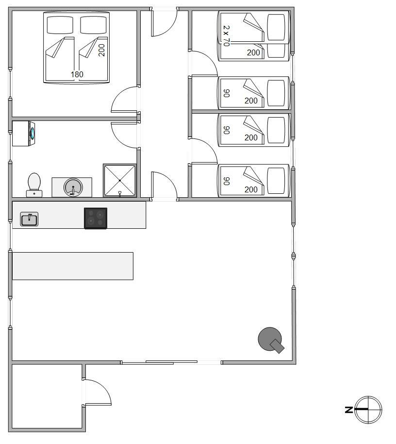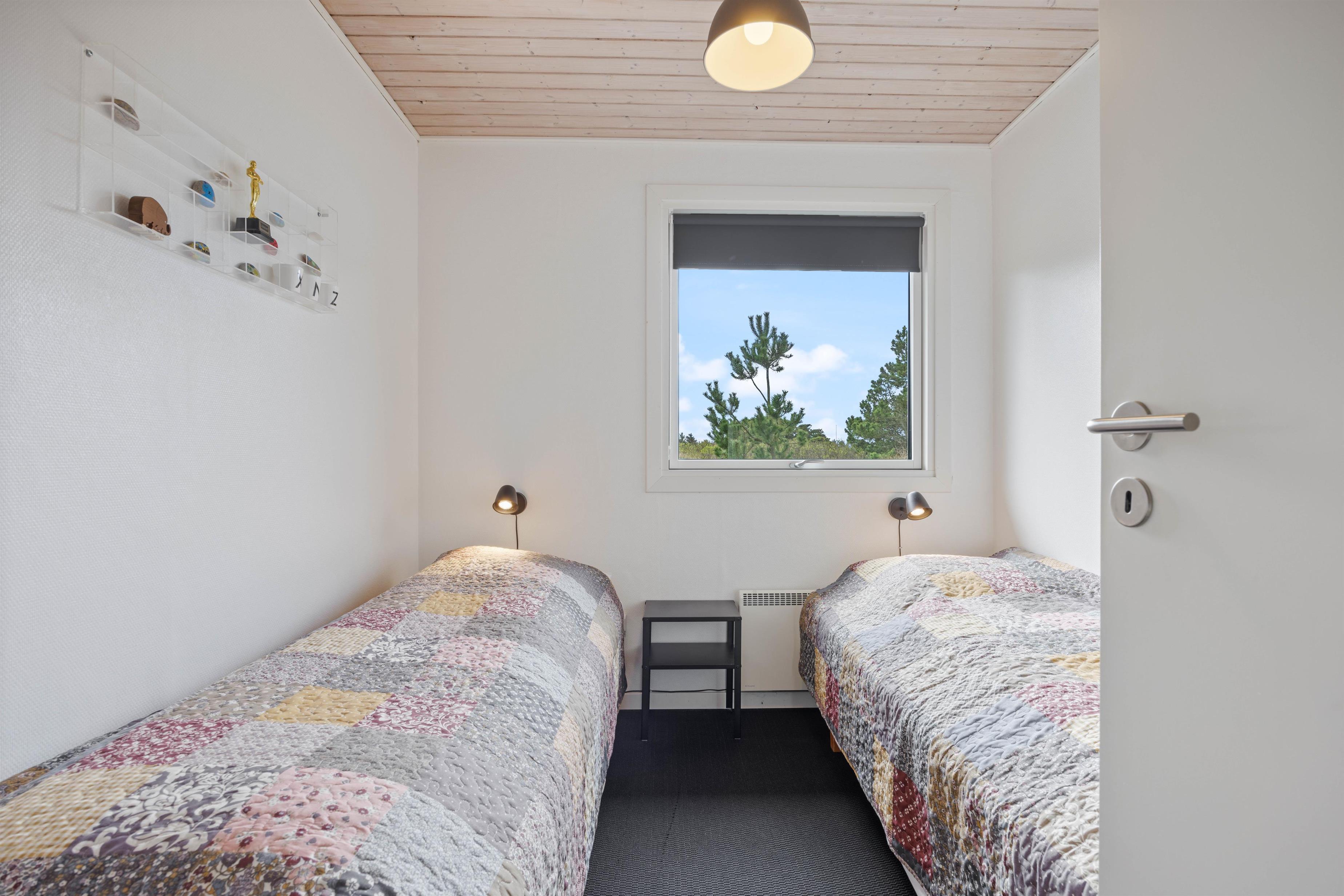 Badeværelset har bruser og gulvvarme, så du ikke behøver at bekymre dig om kolde fødder. Om aftenen kan I fordele jer i 3 hyggelige soveværelser med 6 komfortable sovepladser. Der er et værelse med en dobbeltseng, et med 2 enkeltsenge og et med en enkeltseng og en køjeseng. Dine børn vil føle sig særligt hjemme i det sidste.