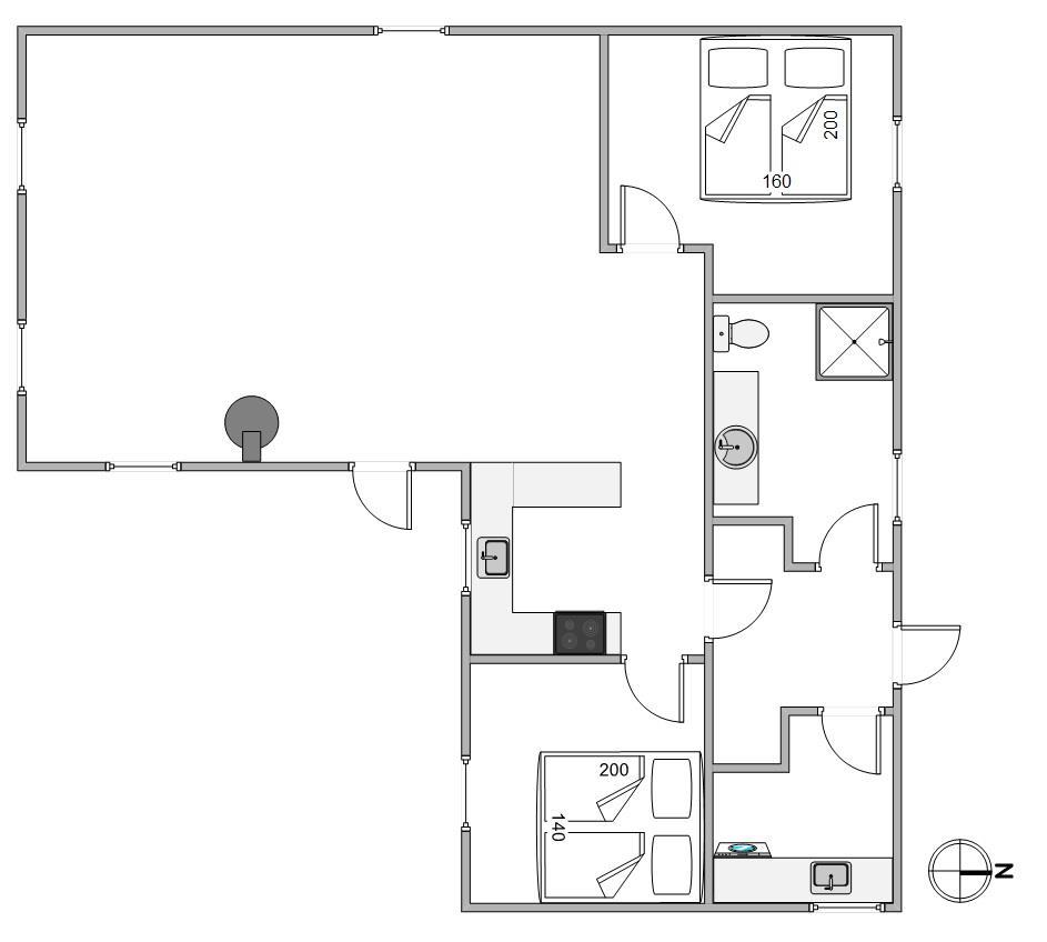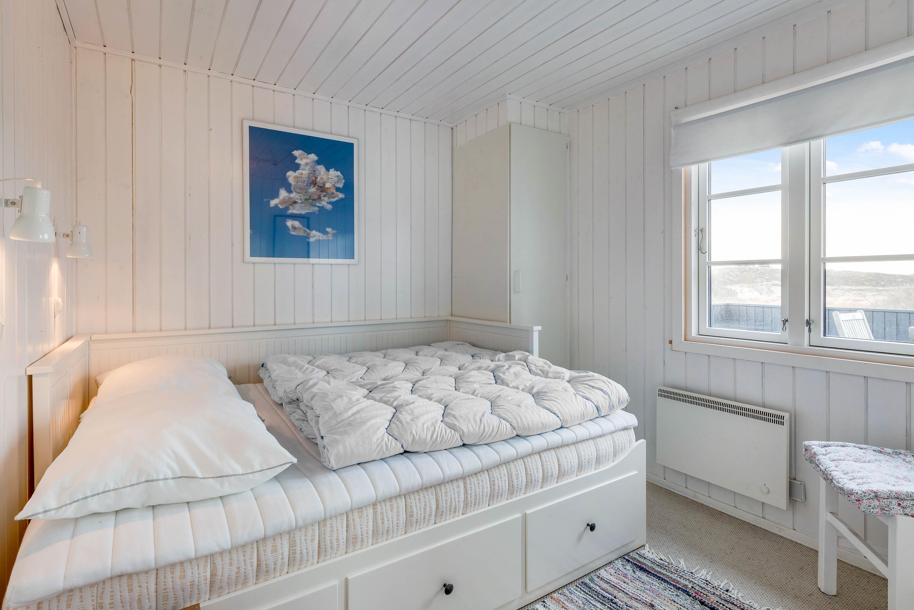 Huset her på Auroravej 13 er til 4 personer – fordelt på 2 soverum med hver sin dobbeltseng (140 cm + 160 cm). Badeværelset har alt, hvad man har brug for. Det praktiske bryggers har også en vaskemaskine, hvilket måske nok småbørnsfamilier vil sætte pris på.