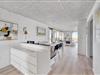 Efter en dag i den friske natur indbyder den store kombinerede stue-spisestue til afslapning og familiehygge – med ilden knitrende i brændeovnen. Gennem de store panoramavinduer hentes den fascinerende og flotte natur med hedelandskabet og klitterne helt ind i stuen til jer.