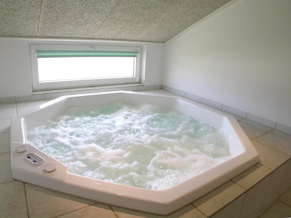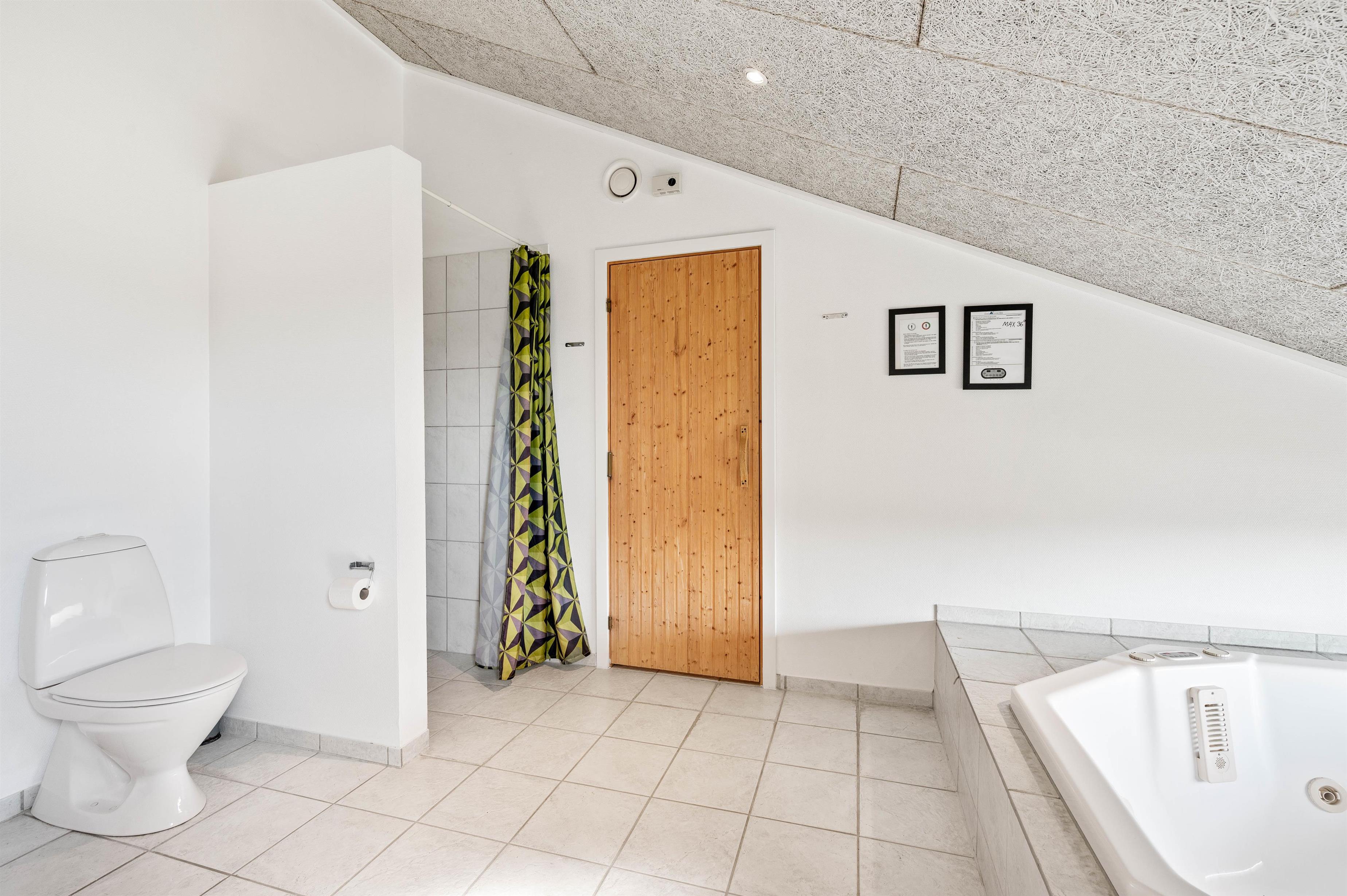 Derudover har feriehuset 2 dejlige badeværelser med gulvvarme og bruseniche. Et badeværelse er endvidere udstyret med en stor 6 personers standvandsspa, og herfra er der indgang til sommerhusets sauna.Som et ekstra plus er der både vaskemaskine og tørretumbler i sommerhuset.