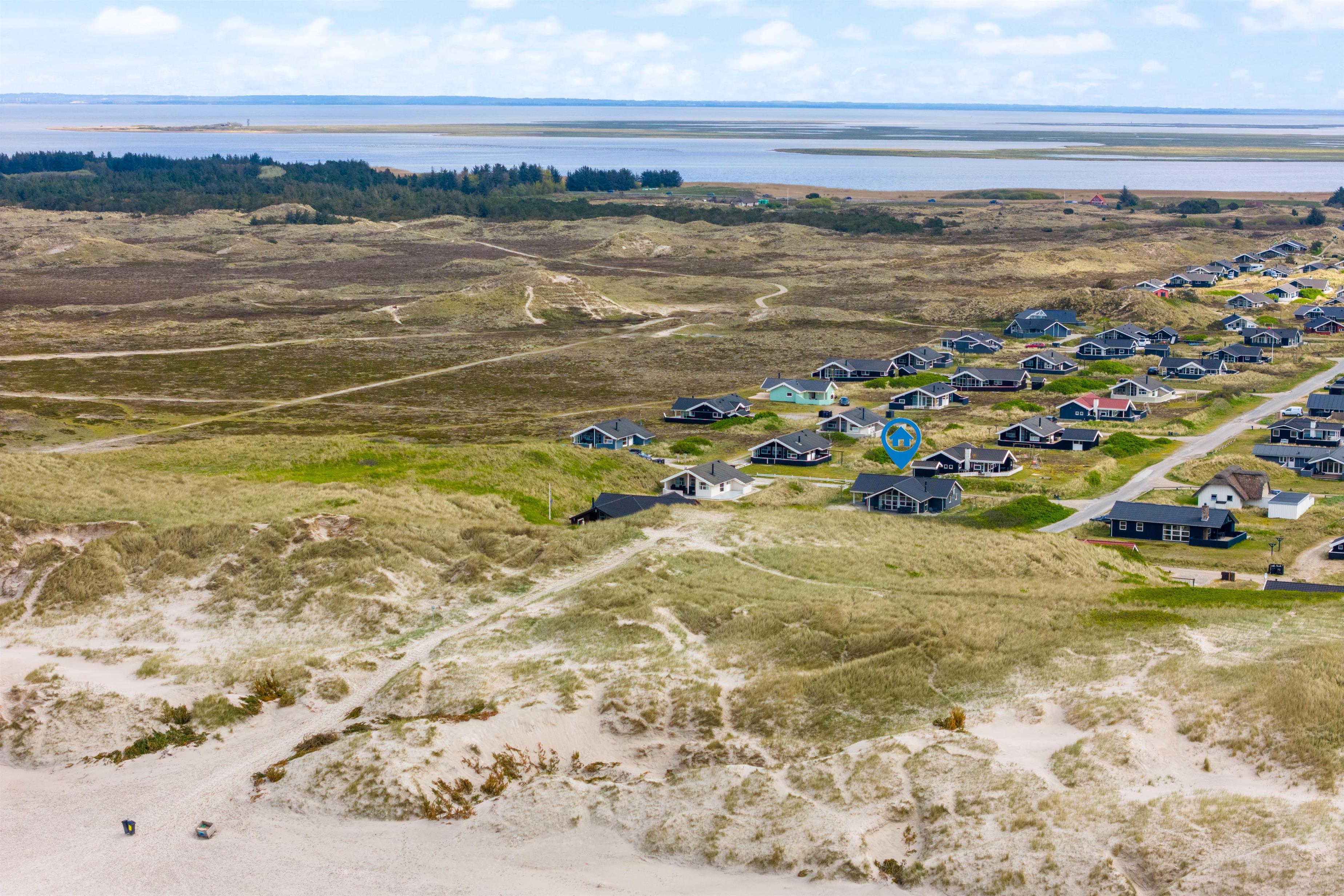 Med stranden i baghaven kan I næsten ikke ønske jer bedre omgivelser. Sommerhuset ligger i det populære Bjerregård på den sydlige del af Holmsland Klit, hvor Ringkøbing Fjord ligger mod øst og Vesterhavet mod vest. Fra sommerhuset er der blot 100 meter til stranden, hvor I kan nyde feriedagen med en frisk gåtur.
