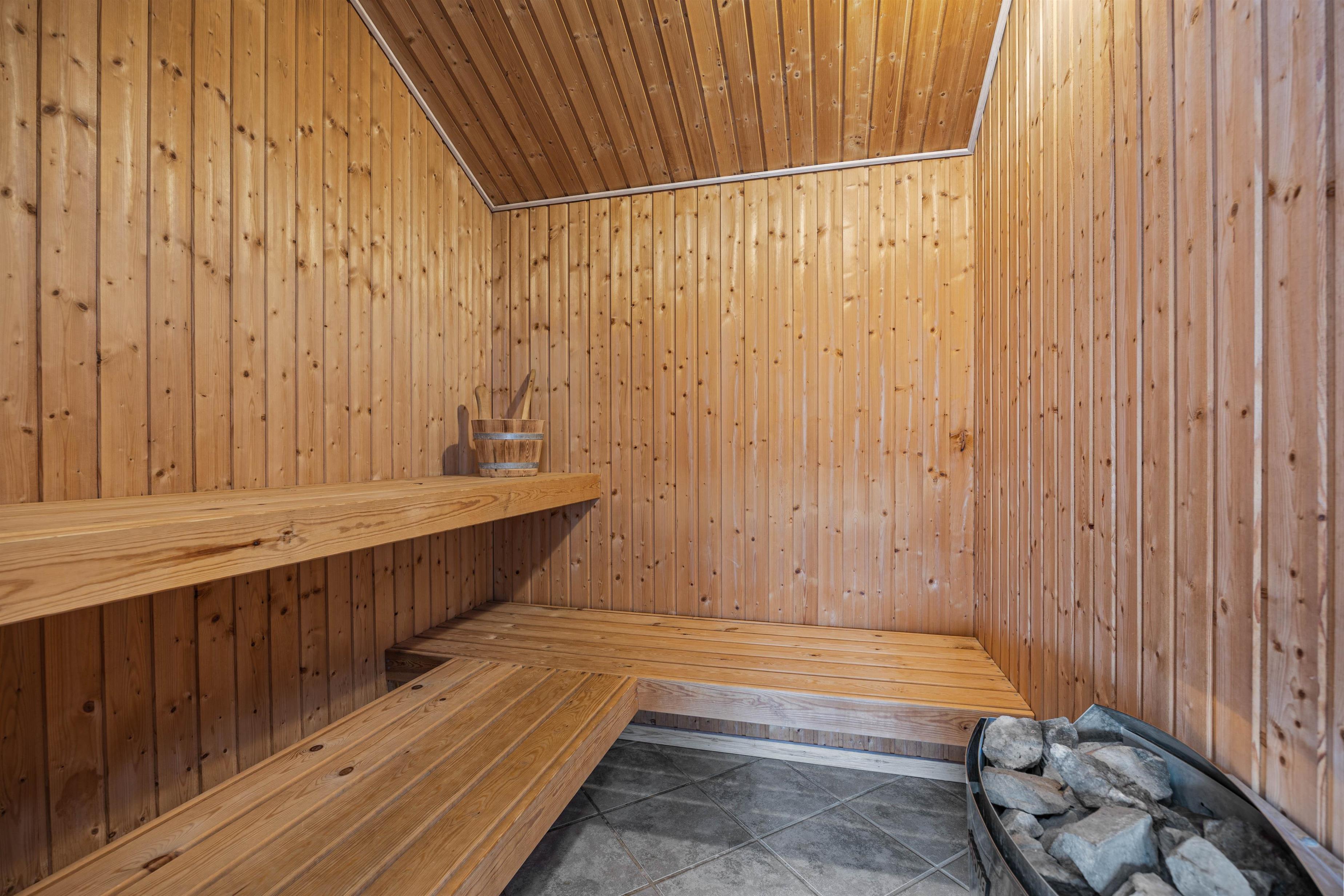 Med 2 badeværelser undgår I kø til morgentandbørstningen. I forbindelse med det største badeværelse finder I spabadet og indgang til saunaen.