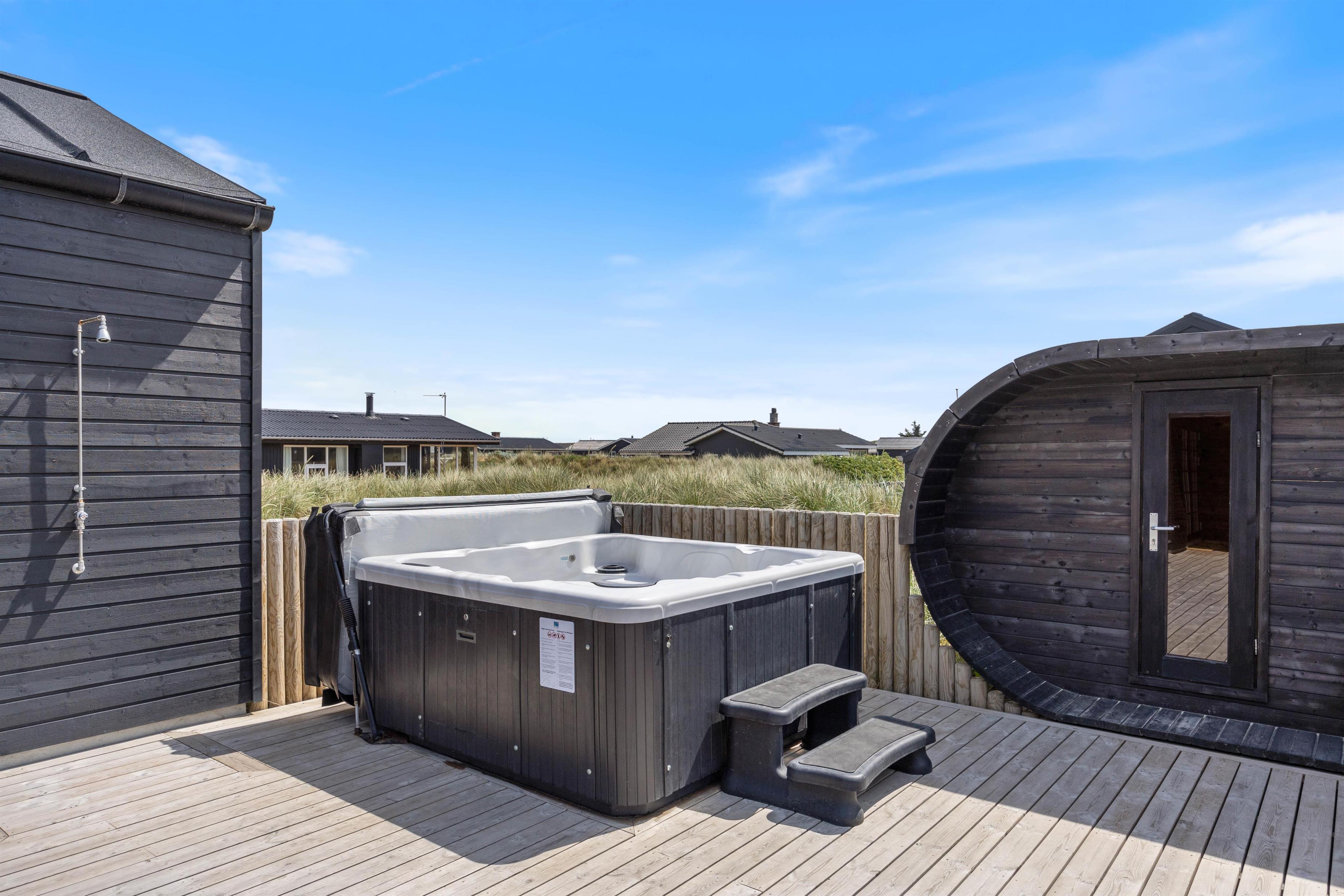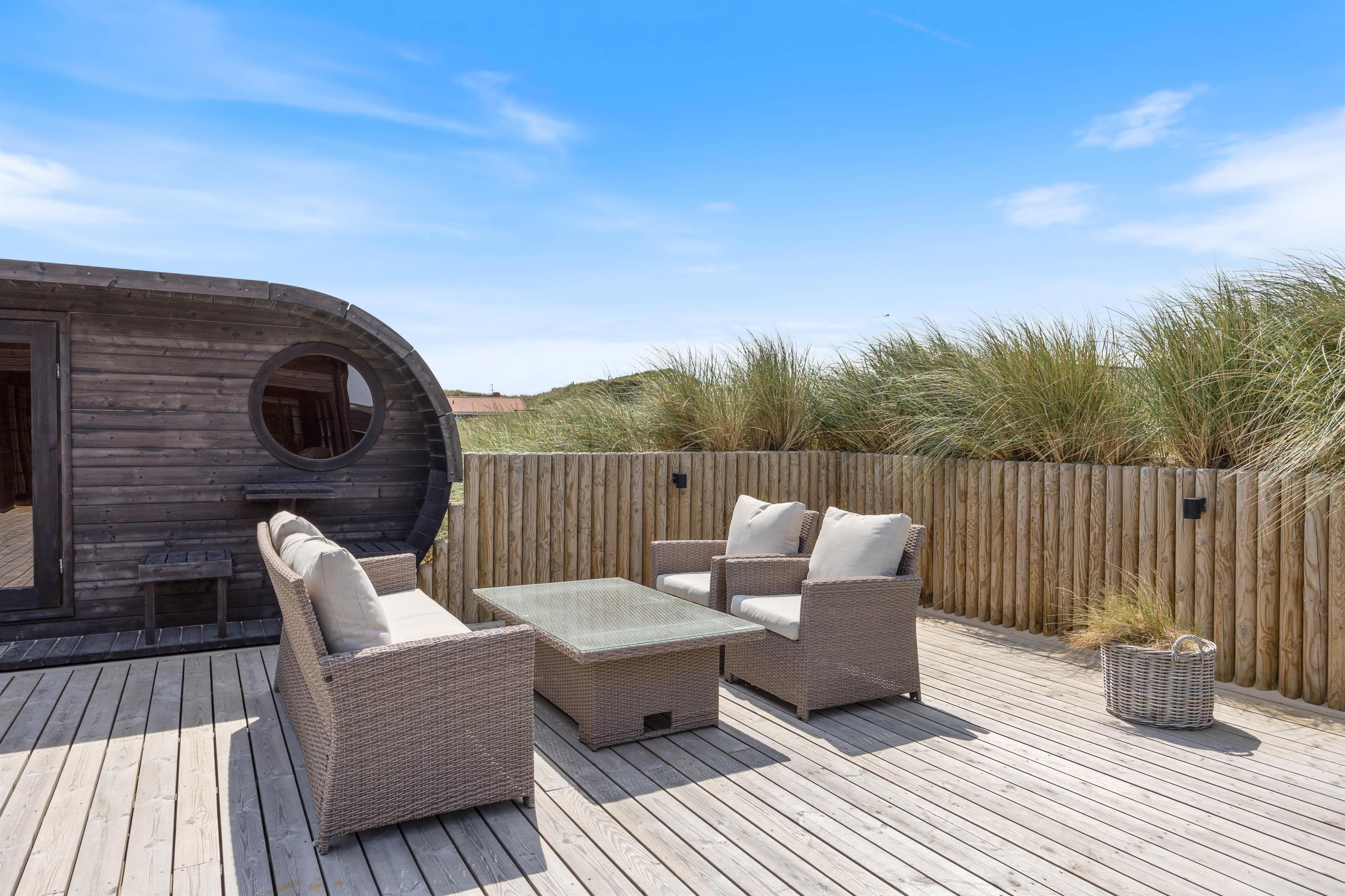 Lav for eksempel en BBQ-aften med mad fra grillen. Gå en tur langs sandstranden tæt på og slut aftenen af med en drink i udespaen, imens solen går ned bag klitterne.