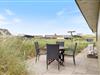 Terrasserne ved og omkring feriehuset på Kirstinevej 110 er et stort plus. Alt efter vind og vejr kan man benytte enten den helt åbne og afskærmede terrasse, som på charmerende vis går i ét med de omkringliggende klitter. Eller man kan opholde sig på den overdækkede del i forbindelse med sommerhuset. Her er altid mulighed for en krog med læ eller fuld sol, alt efter hvad der frister mest. Der er sandkasse til børnene og en dejlig naturgrund, hvor de kan gå på opdagelse.