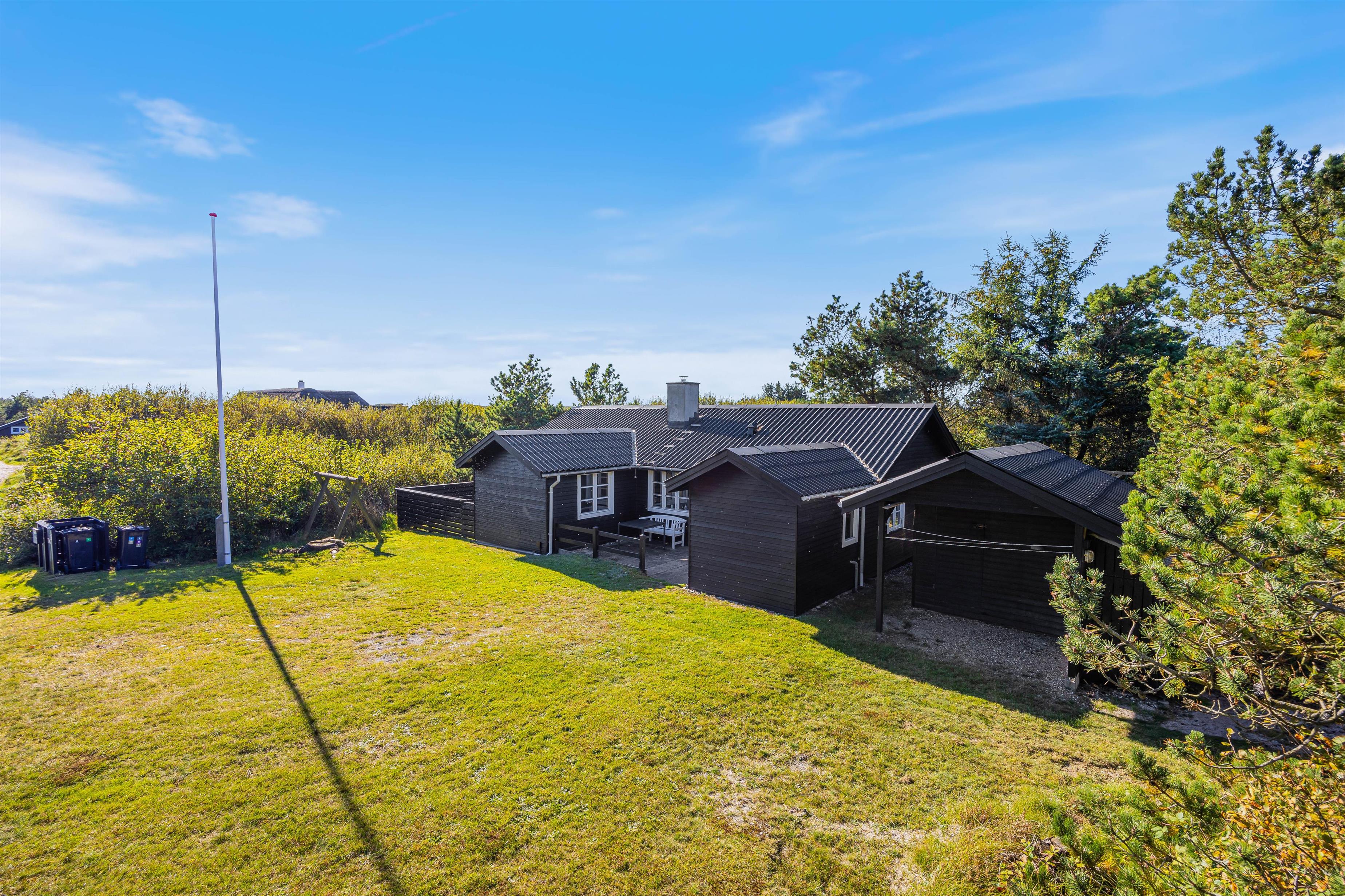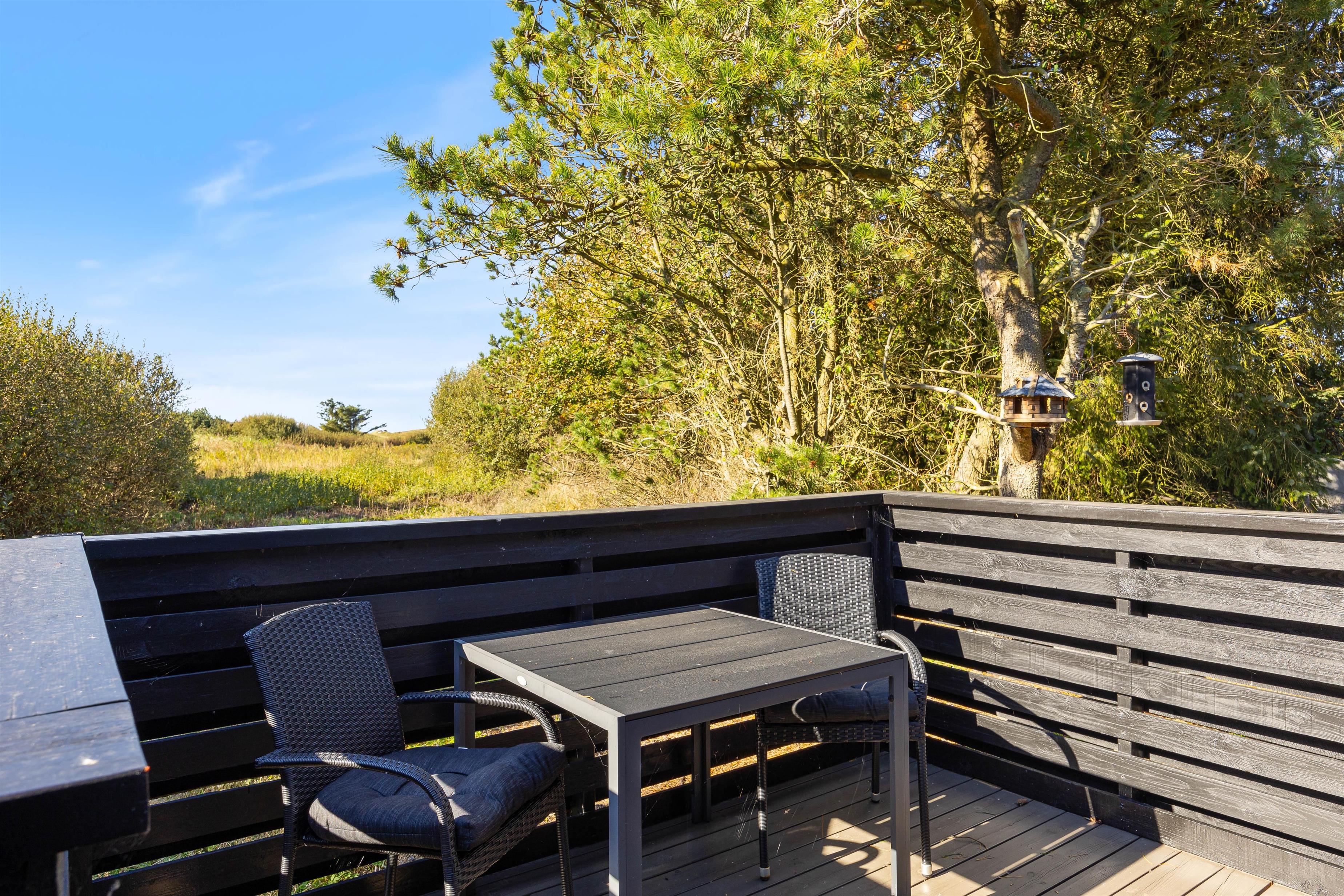 Feriehuset i Bjerregård ligger på en stor naturgrund på godt 2000 kvadratmeter. Her kan I nyde den friske luft i fulde drag. På den delvist overdækkede terrasse kan du tilbringe afslappende timer i havemøblerne og liggestolene. En gasgrill står til rådighed for lækre grillaftener, og her kan I hygge jer sammen imens skyggerne bliver lange. Med en efterfølgende vandretur til stranden, kan I runde dagen af med at opleve solnedgangen i Vesterhavet.