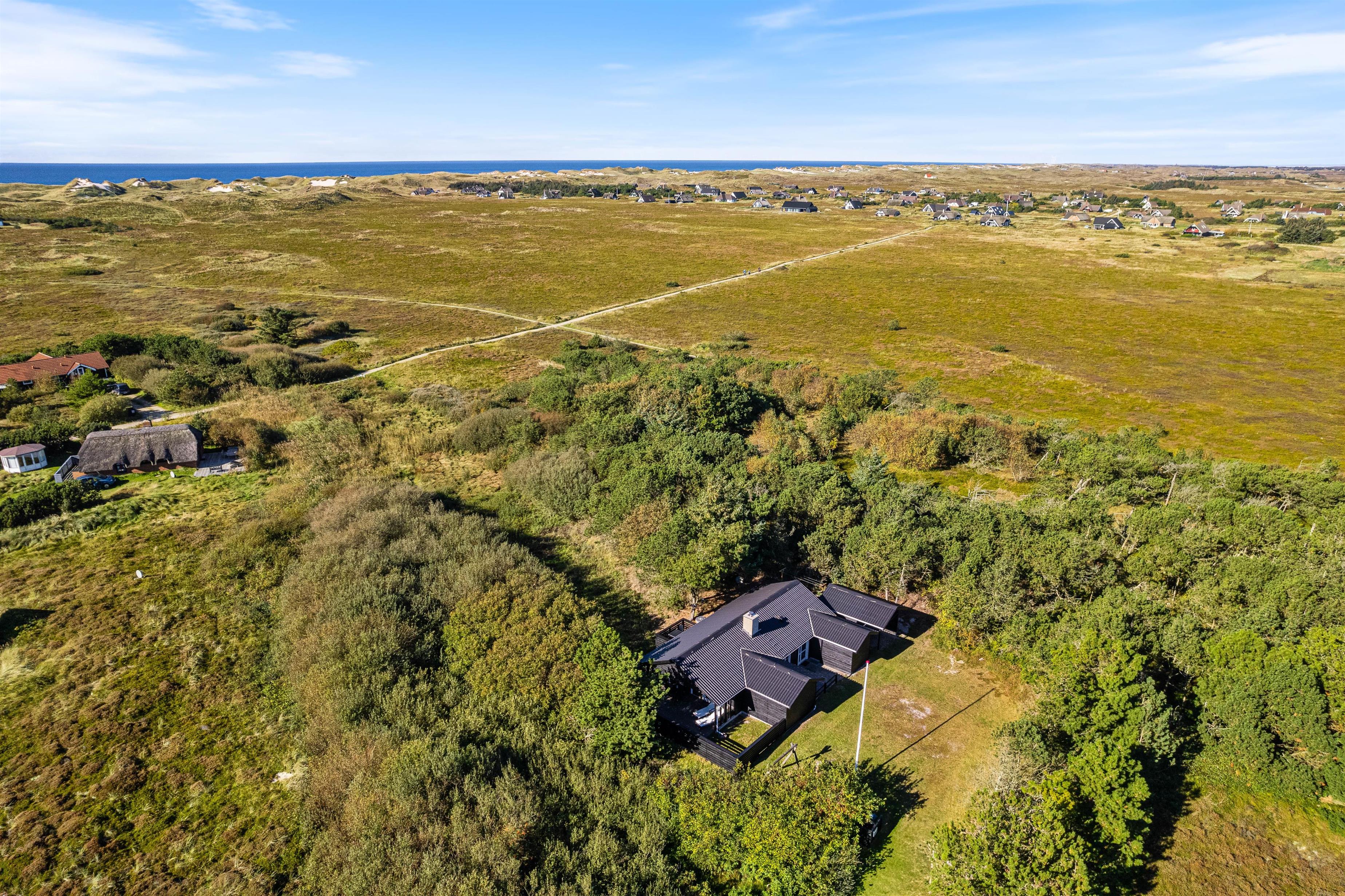 Bjerregård byder på mange muligheder for fritidsaktiviteter. Nyd nærheden til Vesterhavet, som kun ligger 600 meter væk, på gåture eller med en forfriskende dukkert. Der er kun 2 km til den nærmeste købmand, og her kan I købe alt, hvad I skal bruge til den daglige husholdning. I kan også hente friske rundstykker til morgenmad på terrassen her.