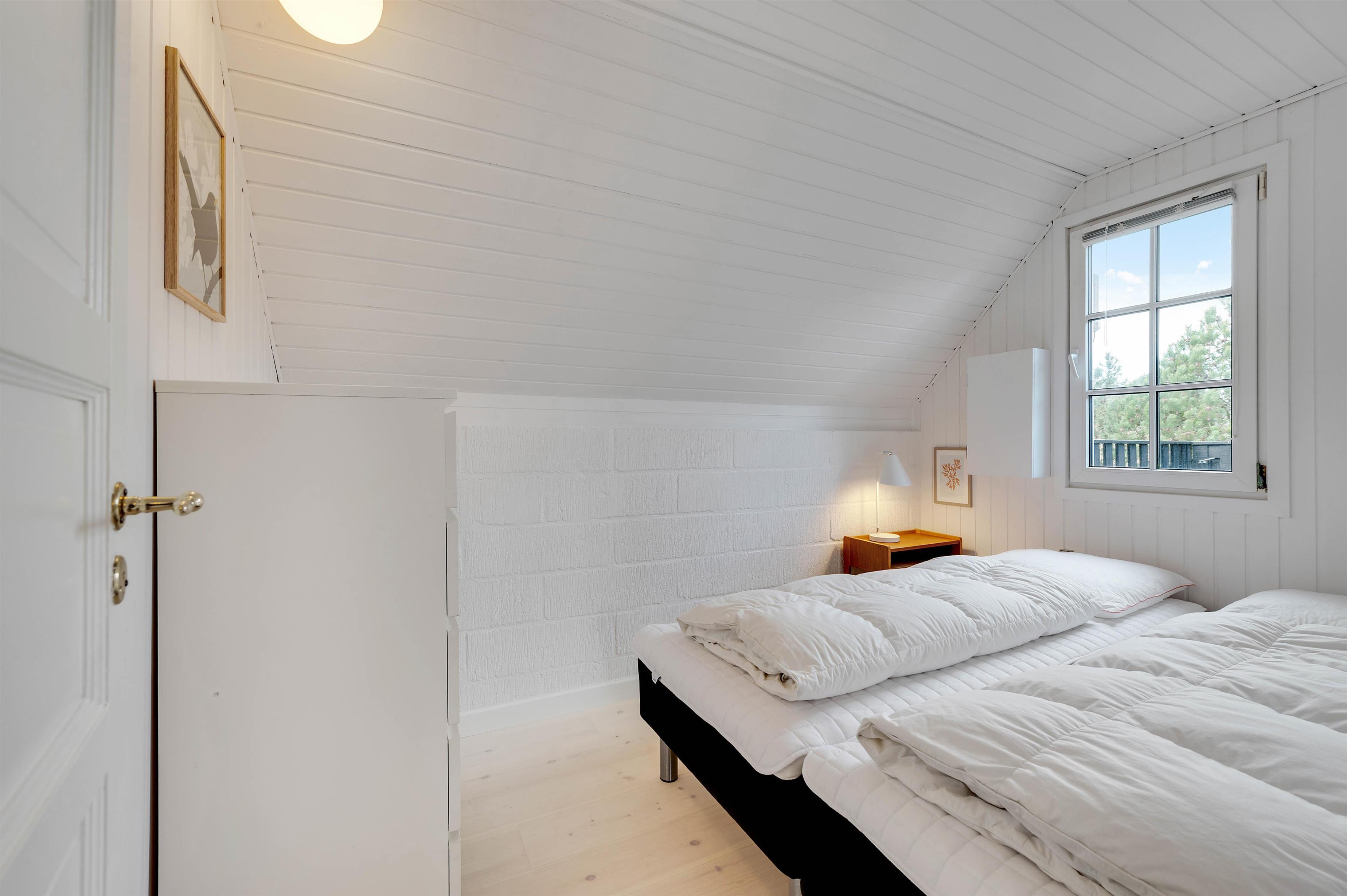Sommerhuset er lyst og praktisk indrettet med 2 soverum, bad og gang. I det ene soverum er der en dobbeltseng og det andet er med en køjeseng.