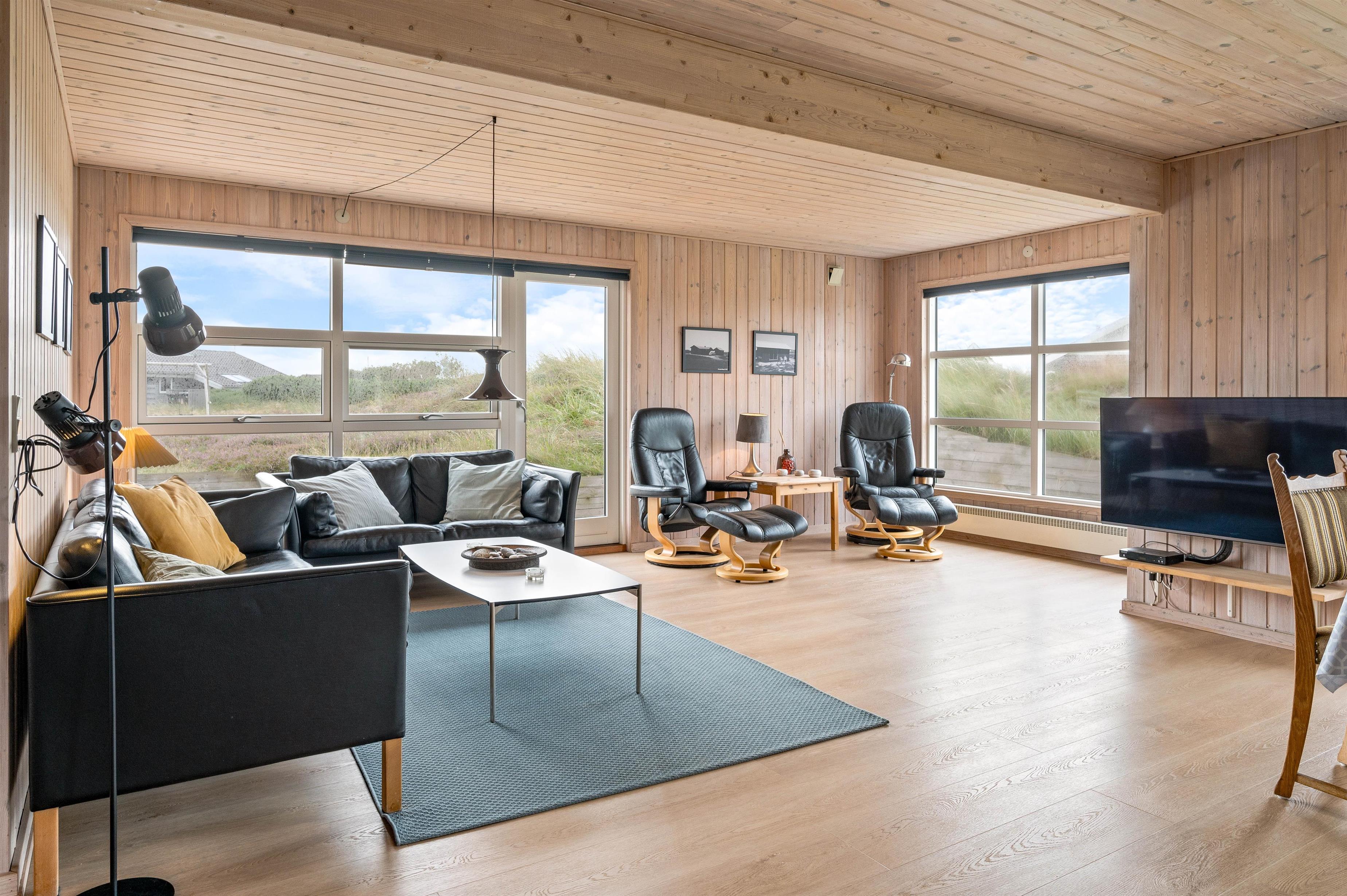Til en afslappende stund kan I benytte jer af saunaen, hvor I kan få varmet kroppen op efter en frisk gåtur ved Vesterhavet. Til natten kan I fordele jer på 3 soveværelser, hvoraf der er 2 med dobbeltseng. Det sidste værelse er indrettet med 2 enkeltsenge.