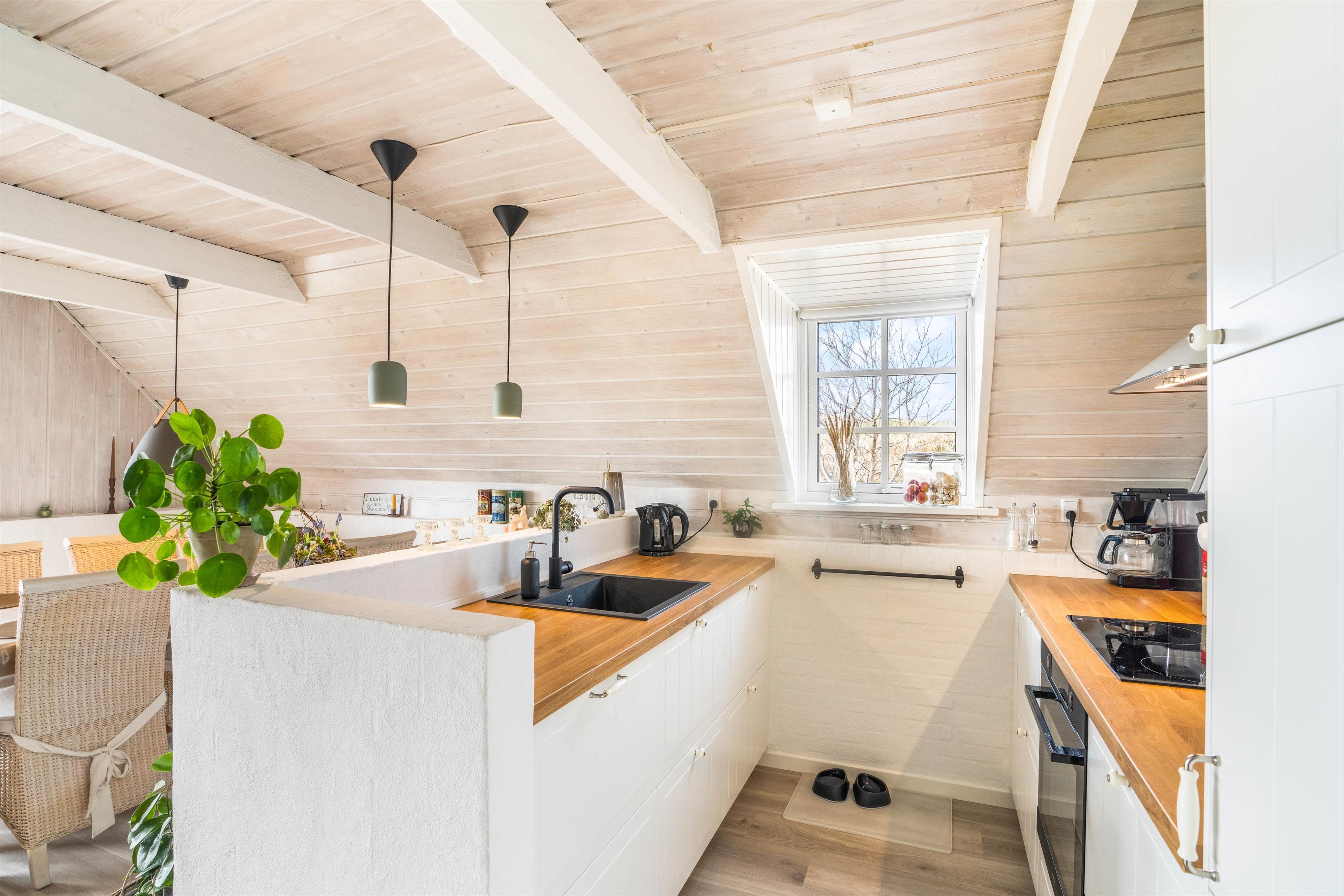 Det nye køkken er fra 2023 er udstyret med alt, hvad I har brug for til madlavningen, og opvaskemaskinen tager sig af det praktiske arbejde efterfølgende. Dermed kan hele familien sætte sig til rette i sofaen foran brændeovnen, som omfavner jer med sin hyggelige varme, mens I ser jeres yndlingsfilm via Chromecast.