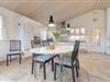 Feriehuset på Bjerregårdsvej 282 ligger for enden af en lille stikvej, så her kan I nyde en uforstyrret og afslappende ferie sammen. Man føler sig hjemme straks, man træder indenfor i det hyggelige køkken/alrum og opholdsstue. Det åbne køkken indeholder alt, hvad I behøver for at tilberede lækre hjemmelavede måltider til hinanden. Måltiderne nydes ved spisebordet – og her kan I også udfordre hinanden i et brætspil. Bagefter kan I trække jer tilbage i sofagruppen og hygge jer foran ilden i den store flotte pejs, eller I kan trække ud i udestuen med et glas vin, og nyde aftenskumringen der.