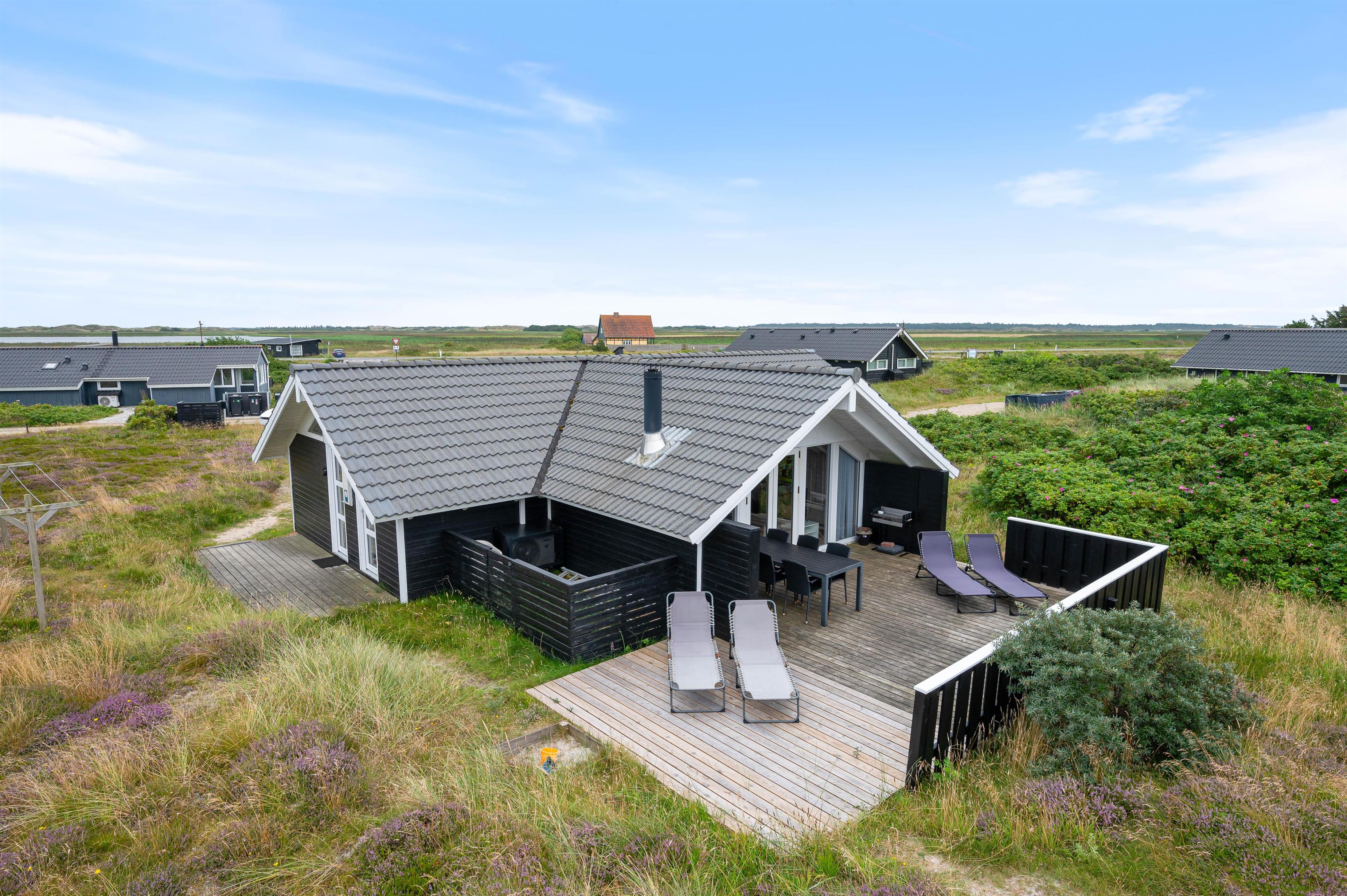 Feriehuset ligger i den sydlige ende af Ringkøbing Fjord, og området indbyder til gode gåture i naturskønne omgivelser. Efter en lille gåtur befinder I jer på den brede sandstrand ved Vesterhavet, der ligger 700 meter fra sommerhuset. Her kan I slentre langs vandet i timevis – uanset om solen skinner, en regnbyge passerer eller blæsten har godt fat.