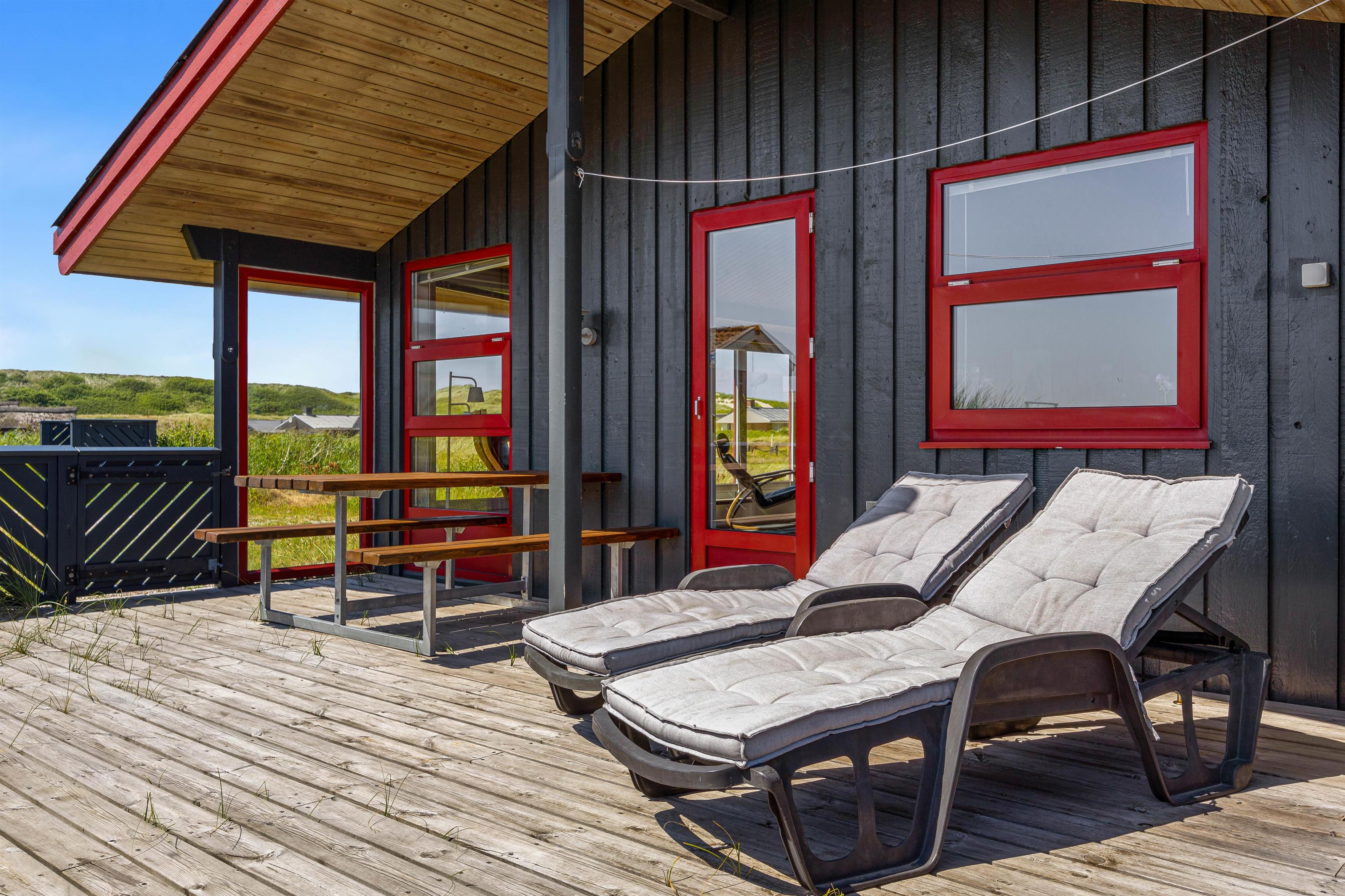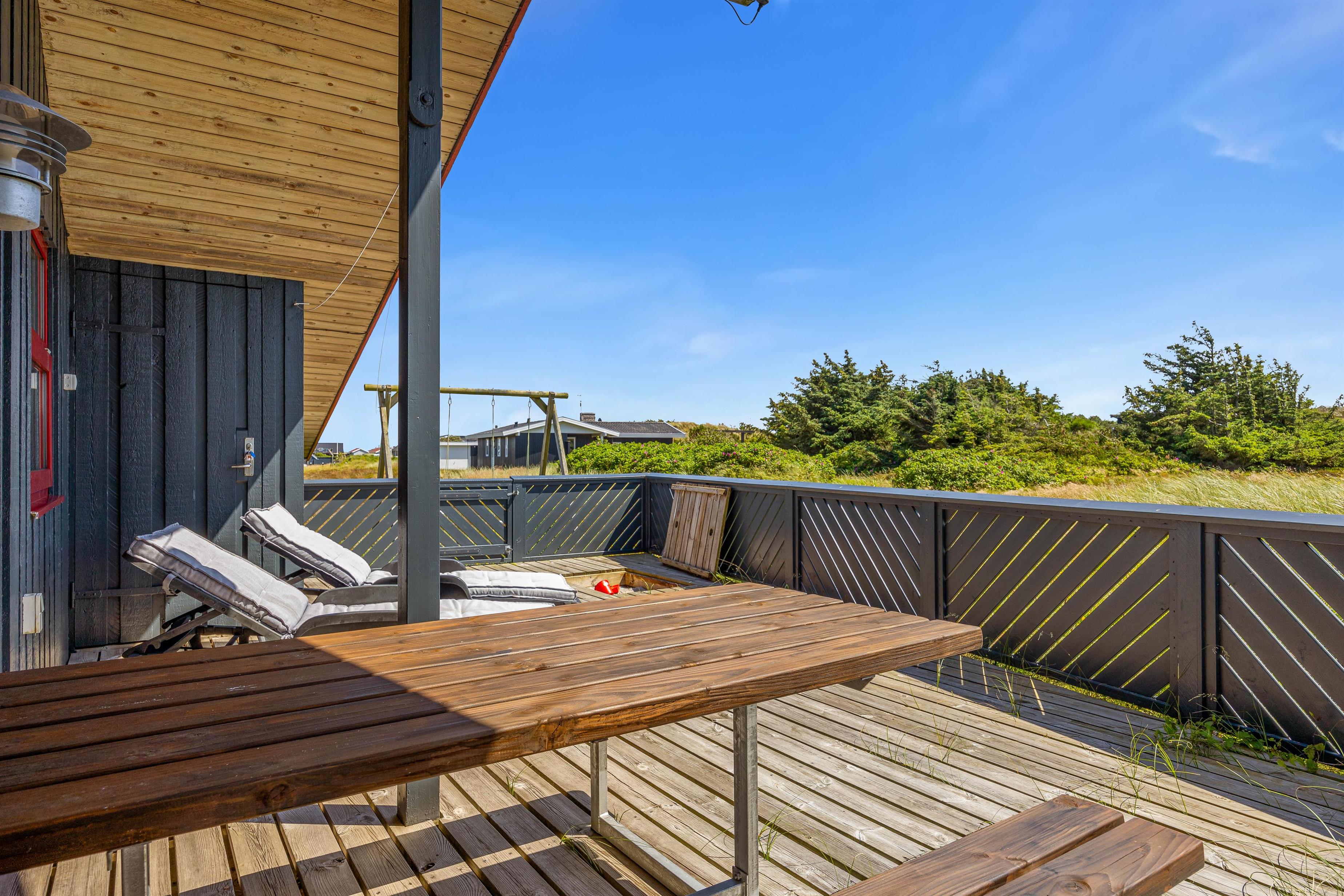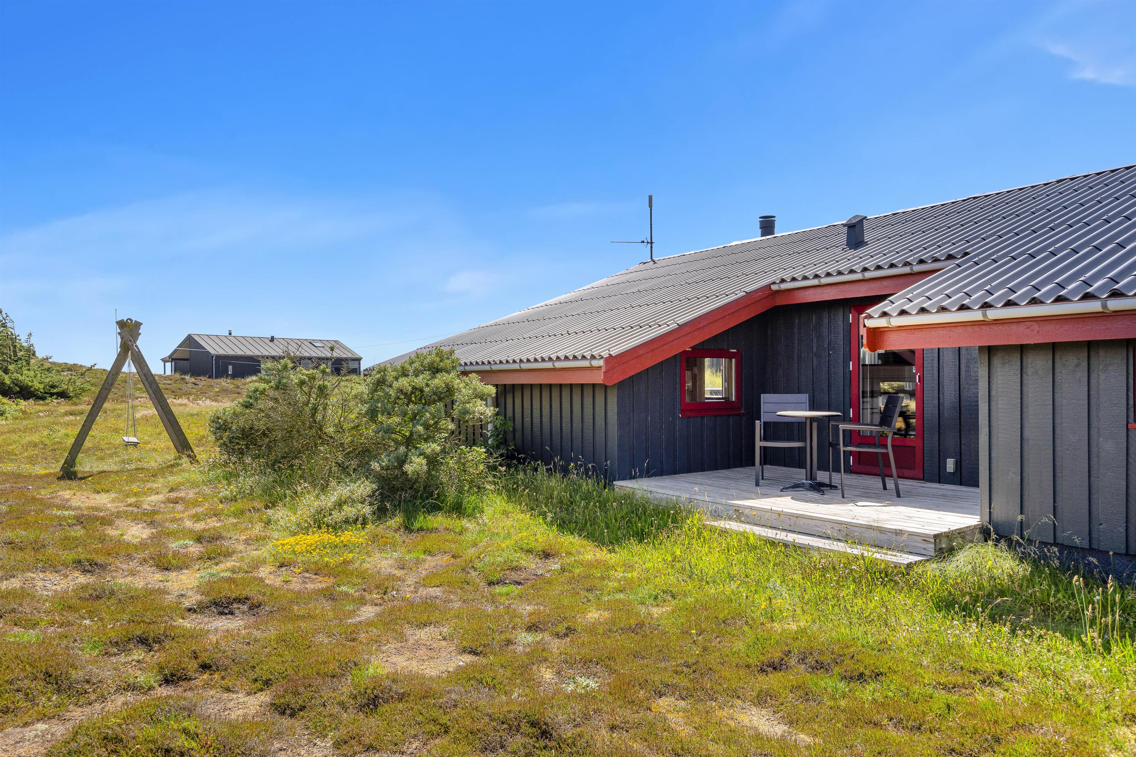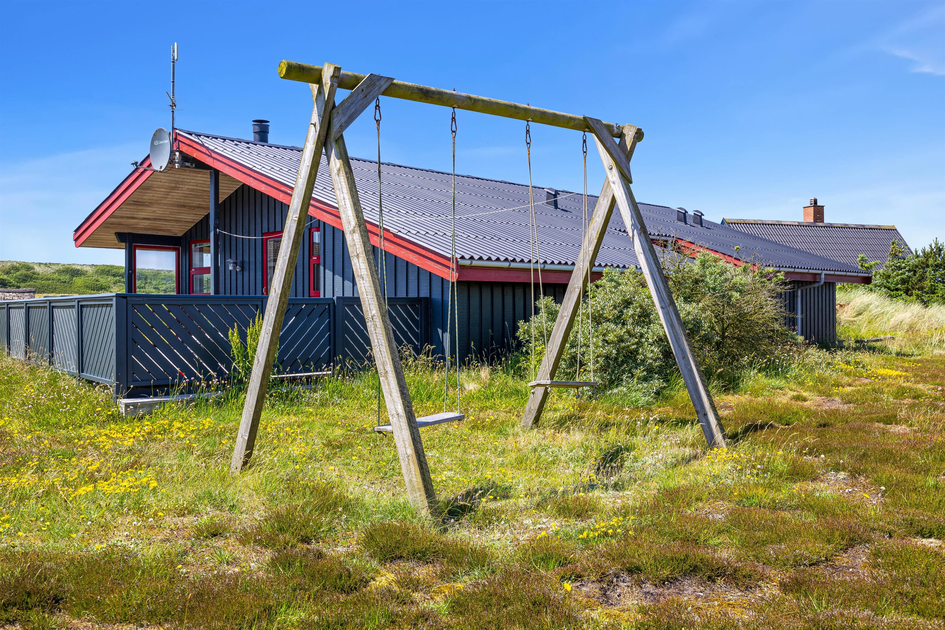 På den godt 1200 kvm store naturgrund kan både børn og voksne nyde naturen. Terrassen er delvist overdækket og helt indhegnet, så I kan sidde udenfor i al slags vejr. En grill står til rådighed til hyggelige grillaftener, mens de komfortable liggestole er perfekte til afslapning i solen. Til de små gæster er der en gynge, så de kan brænde krudt af i løbet af dagen. Her kan alle slappe af og nyde den friske havluft.