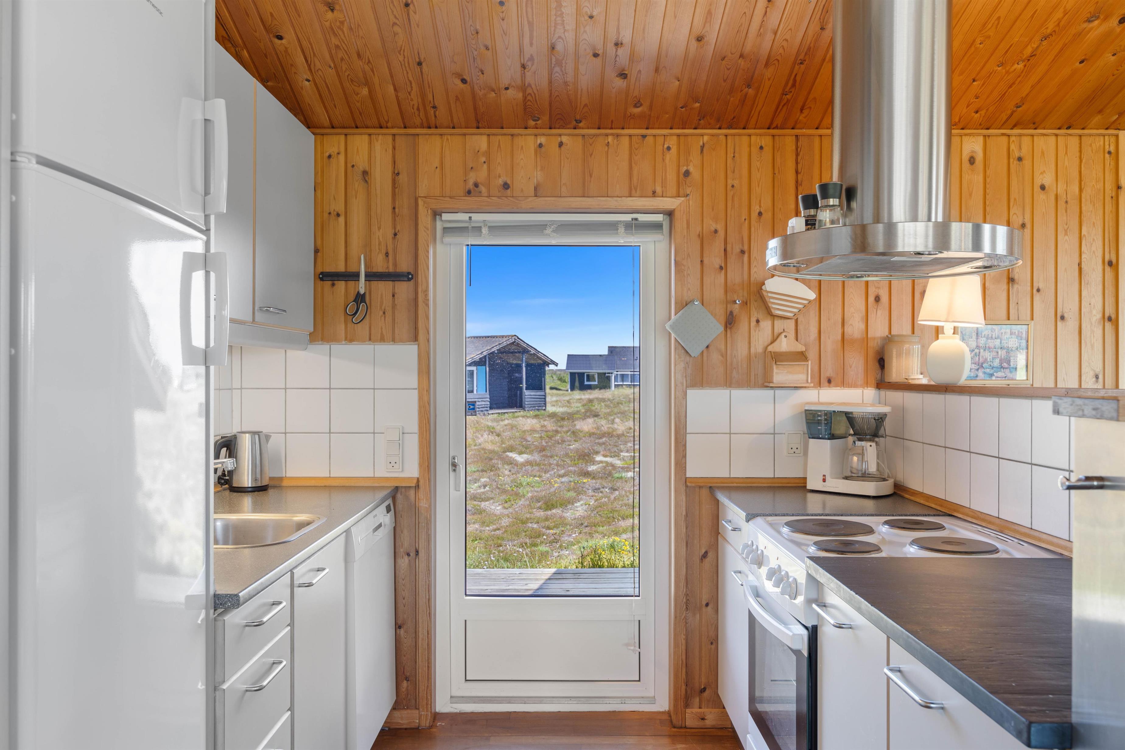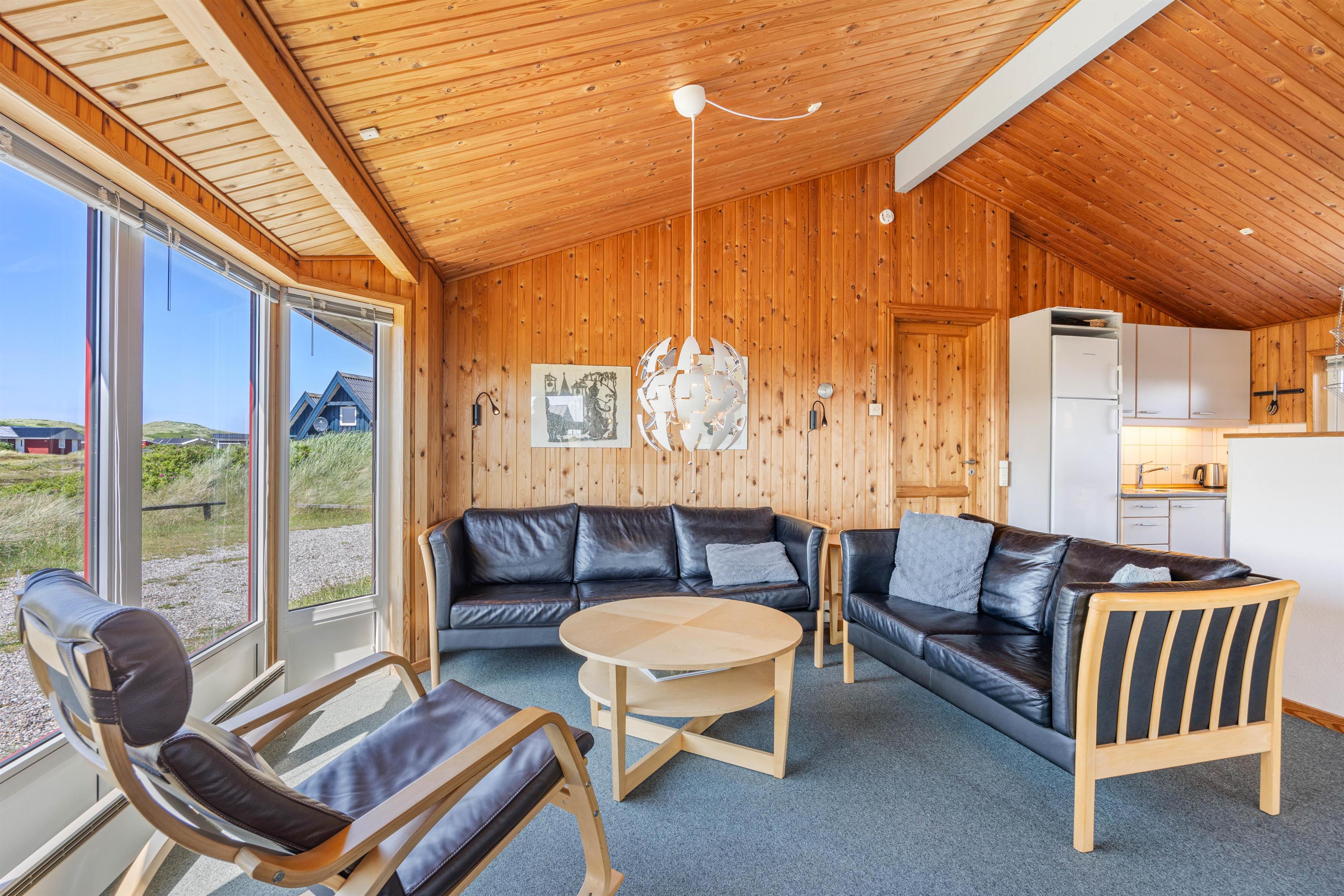 Når I træder ind ad døren på P Chr Dahls Vej 31 mødes I straks af stuen med talrige vinduer, der giver et rigtig godt lysindfald. Behagelige siddemøbler og en lys og venlig indretning bidrager sammen med brændeovnen til at øge feriestemningen. TV’et kan underholde eller tilbyde en pause til store og små, mens brændeovnen skaber en hyggelig atmosfære på køligere aftener. Varmepumpen sørger også for behagelig varme i feriehuset. Det åbne køkken er fuldt udstyret, her kan I forkæle hinanden med lækre hjemmelavede retter – til hjælp har I alle nødvendige redskaber til at tilberede lækre måltider, en opvaskemaskine og en 60-liters fryser.