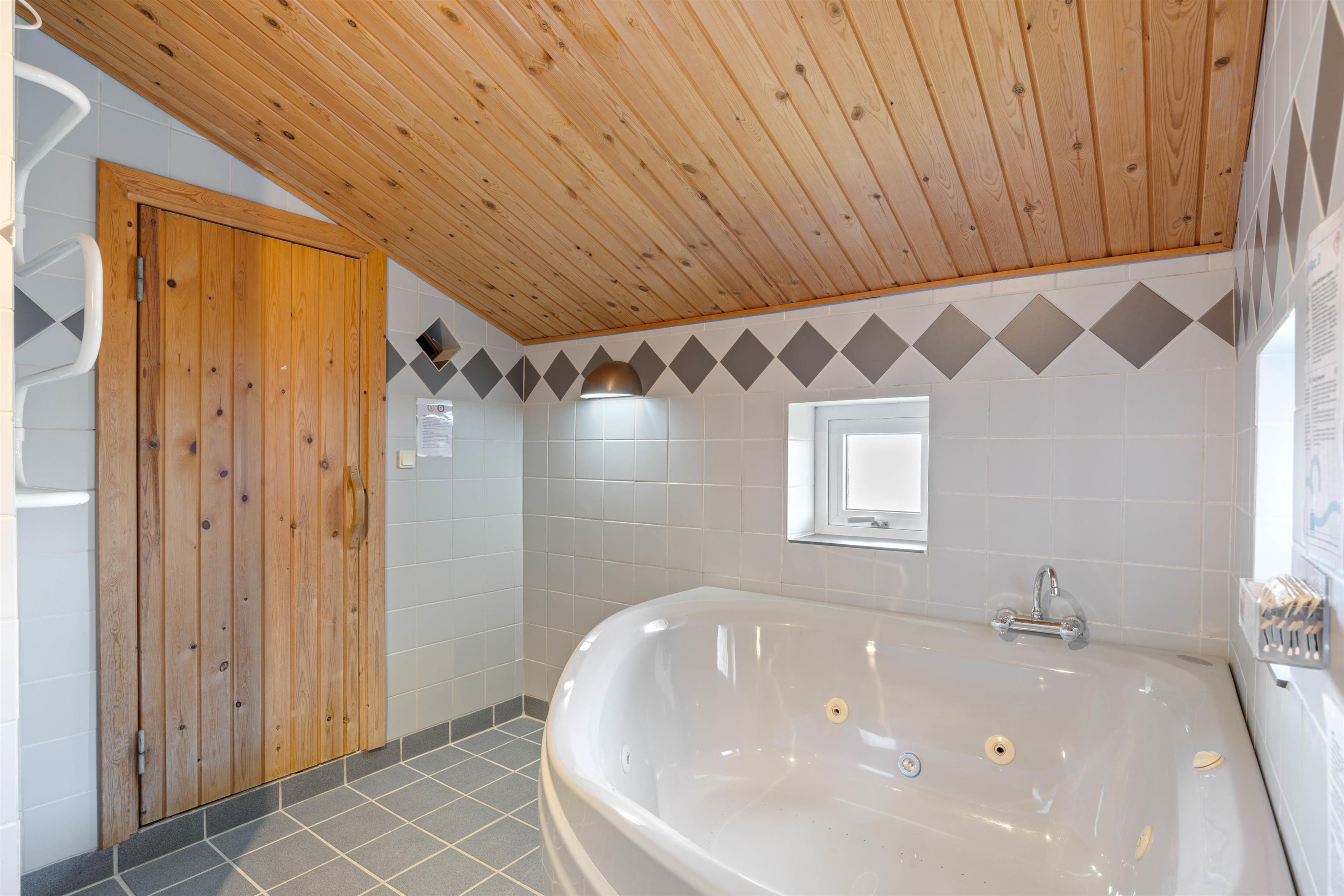 Fra badeværelset med gulvvarme har I adgang til spa og sauna, som tilbyder afslapning efter en lang dag på stranden. Der er også gæstetoilet i feriehuset, så I kan roligt tage god tid. Praktisk nok er der vaskemaskine og tørretumbler til rådighed, så I kan friske garderoben op i løbet af ferien. I de 3 hyggelige soveværelser finder I 6 komfortable sengepladser - 1 værelse med dobbeltseng og 2 værelser med hver 2 enkeltsenge – ideelt til at få en god nats søvn efter en oplevelsesrig dag.
