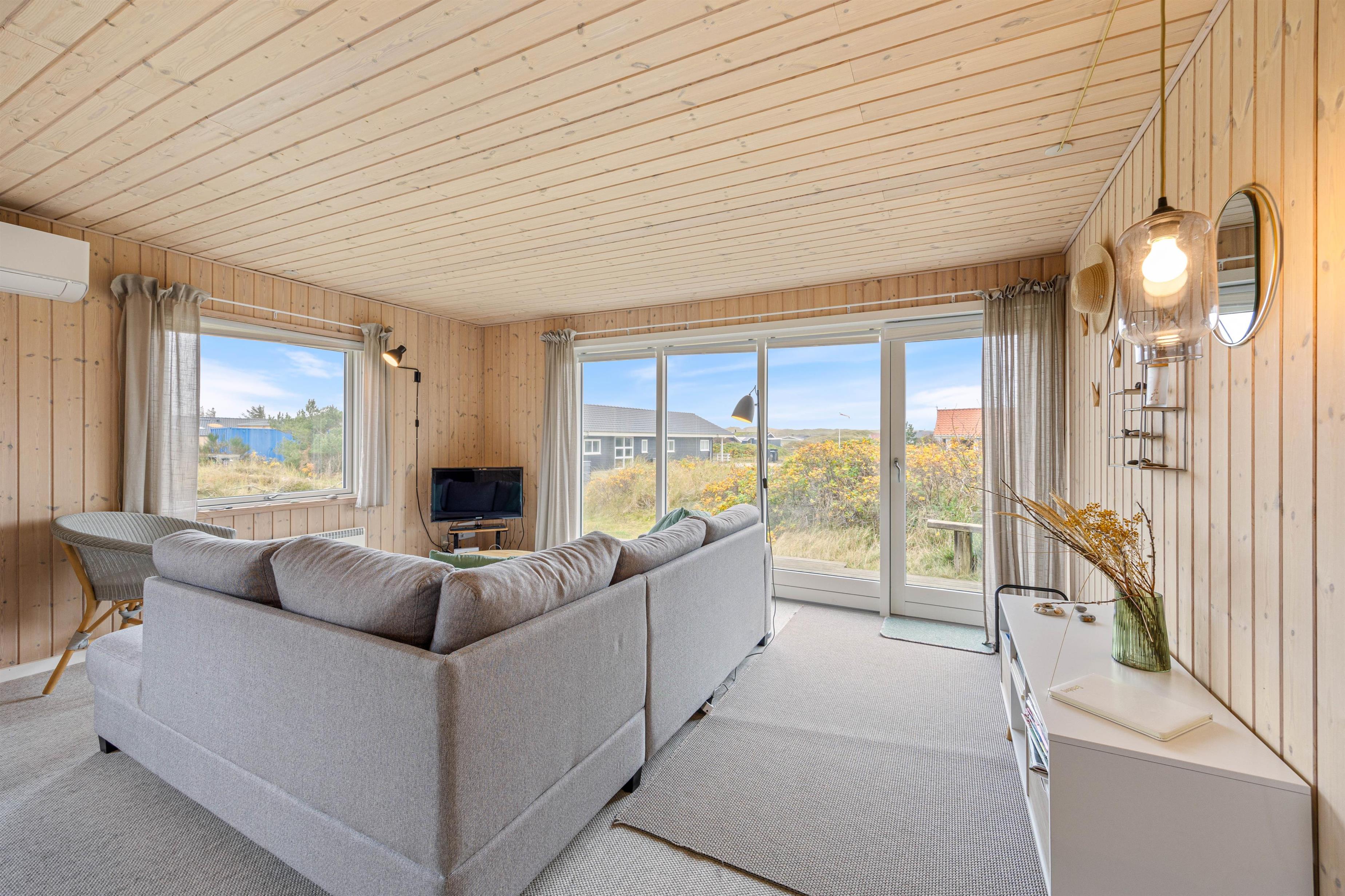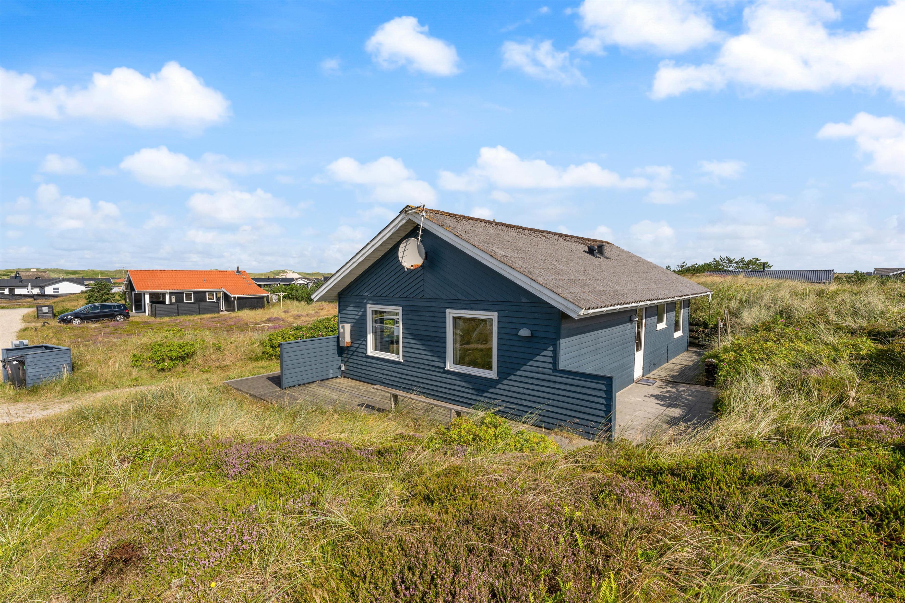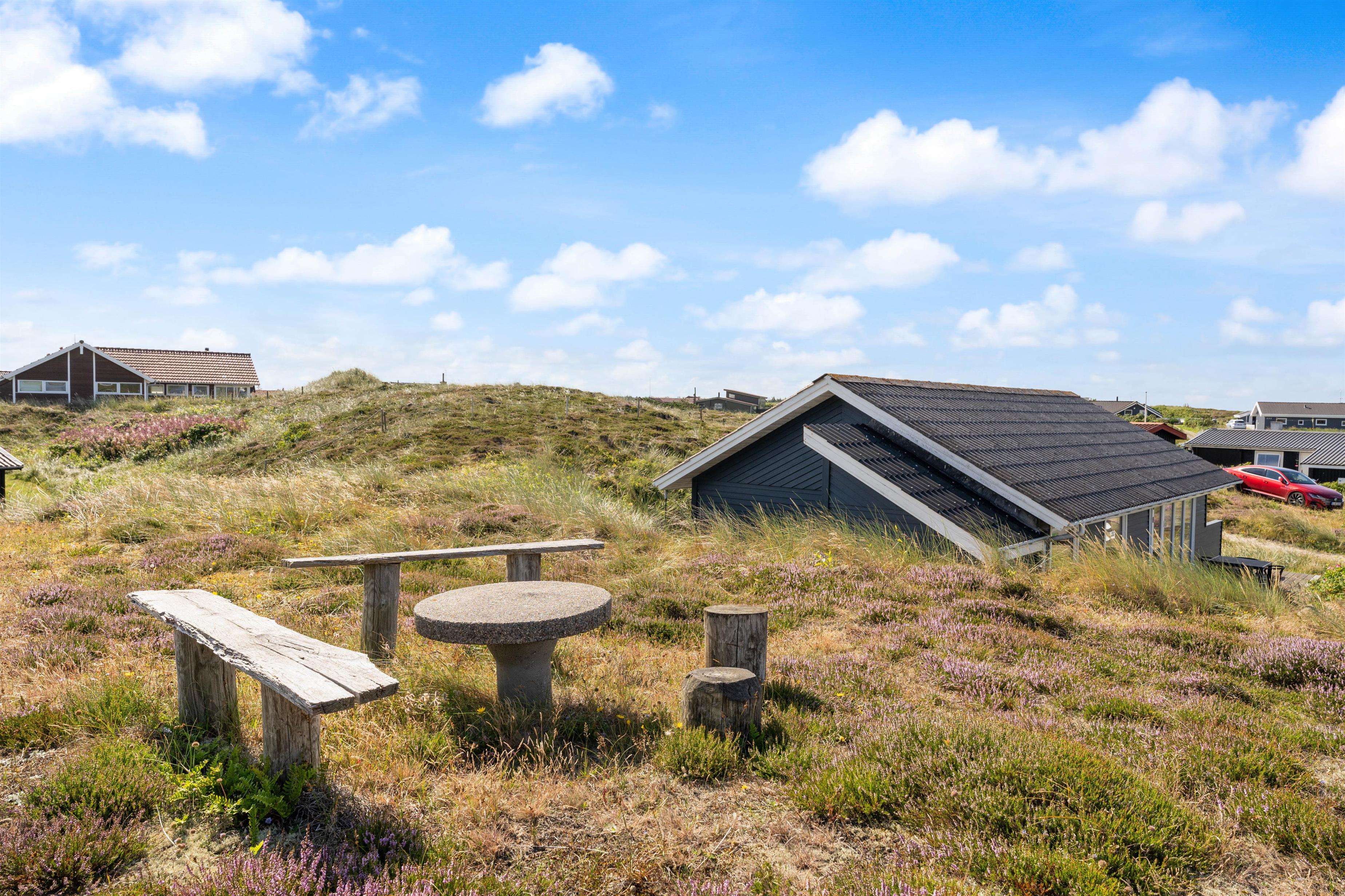 Beliggenheden af dette sommerhus på den kuperede naturgrund kun ca. 500 meter fra stranden gør udendørs ophold til en ægte og uforstyrret naturoplevelse på den møblerede og uforstyrrede terrasse, hvor solen og den friske havluft i Vestjylland rigtig kan nydes.