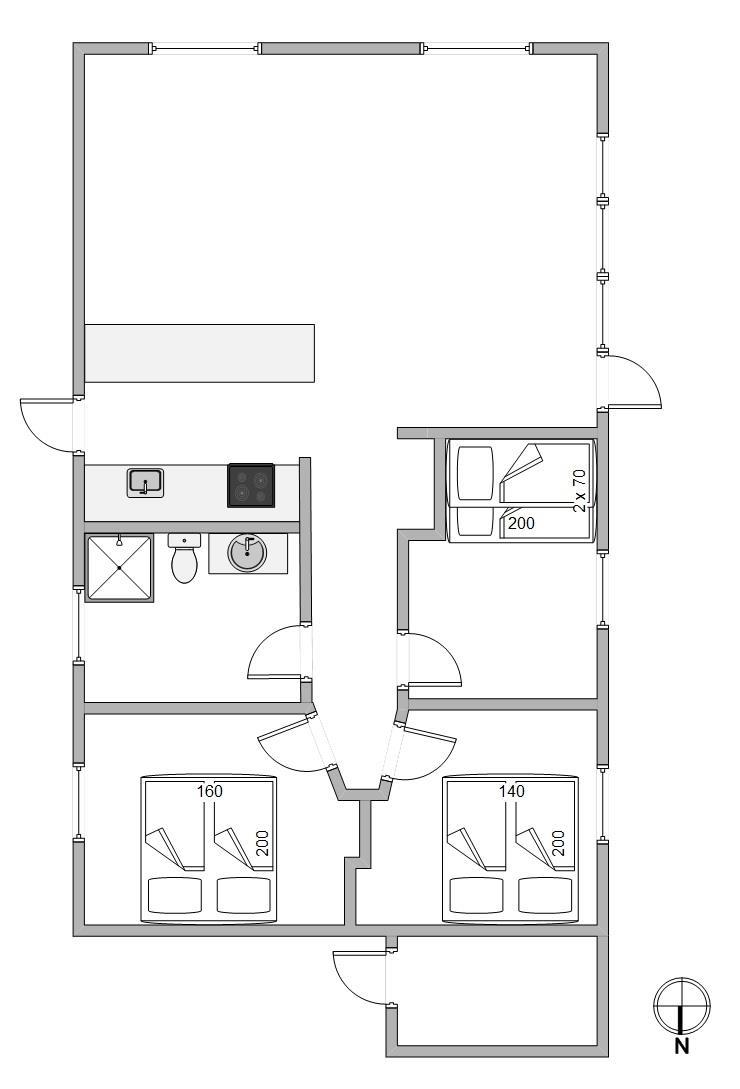 Sommerhuset har plads til 6 feriegæster, og har 3 fine soveværelser til rådighed. De 2 af værelserne er indrettet med gode dobbeltsenge, mens det sidste værelse er indrettet med en køjeseng til børnene.