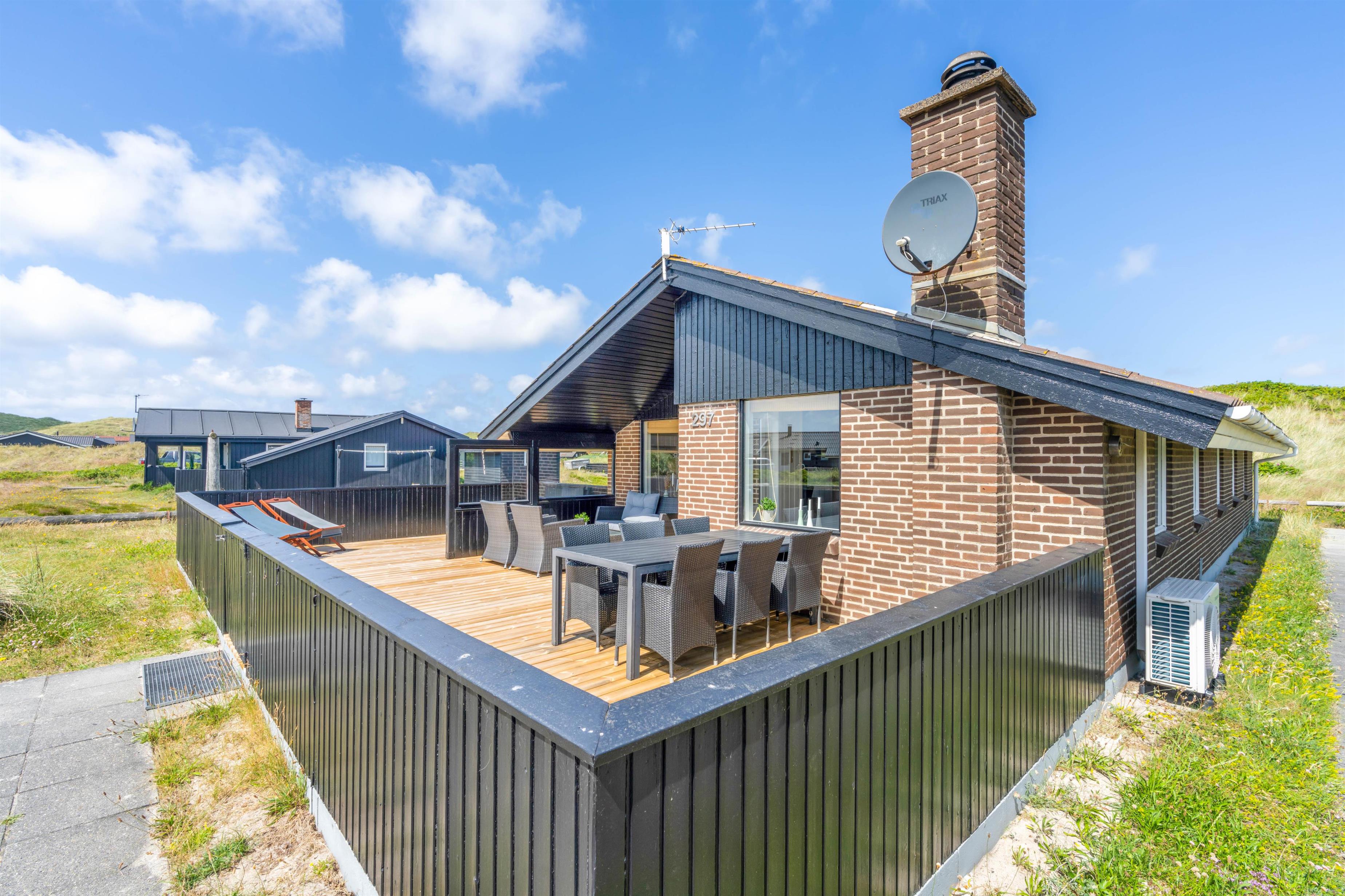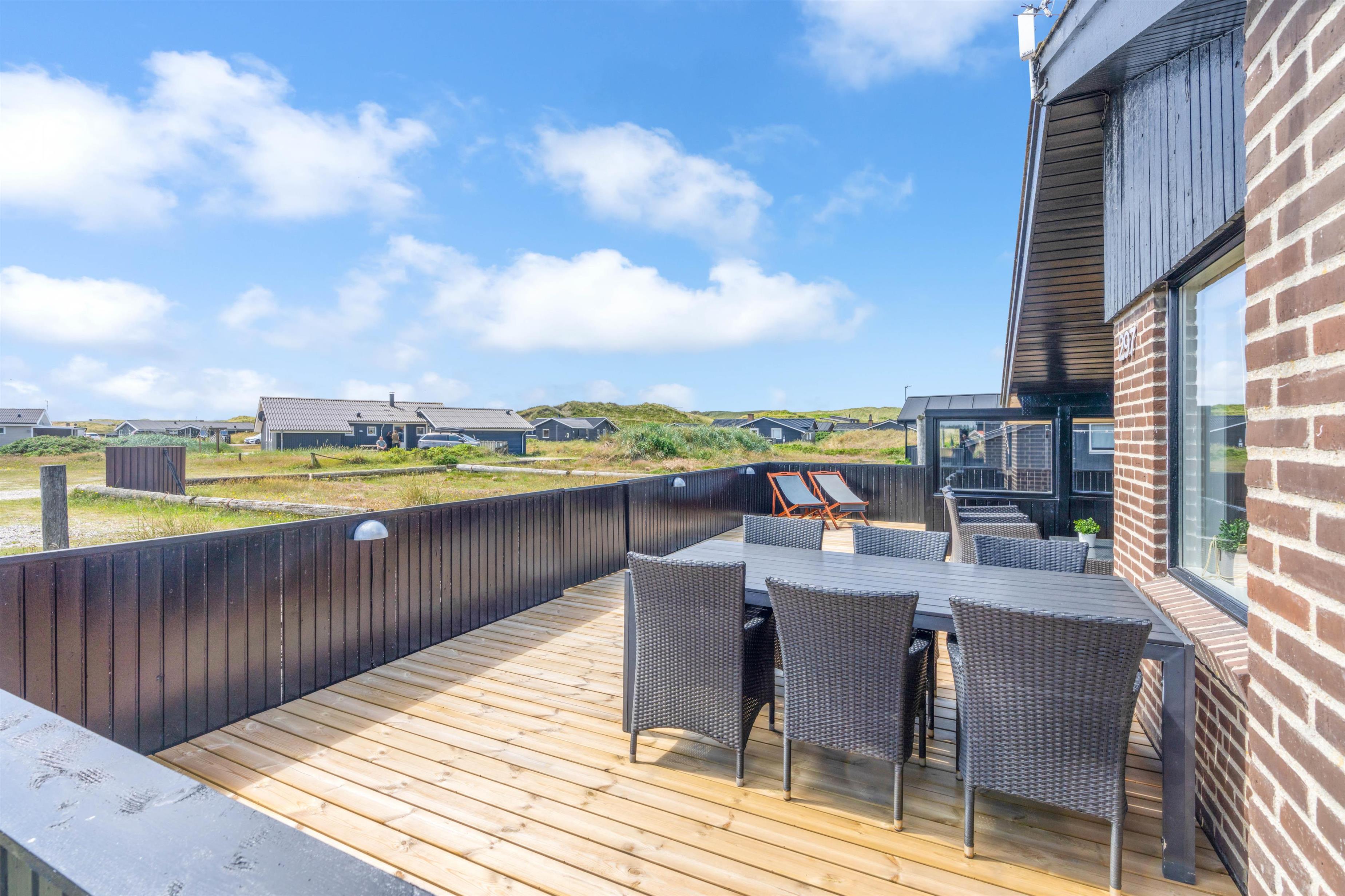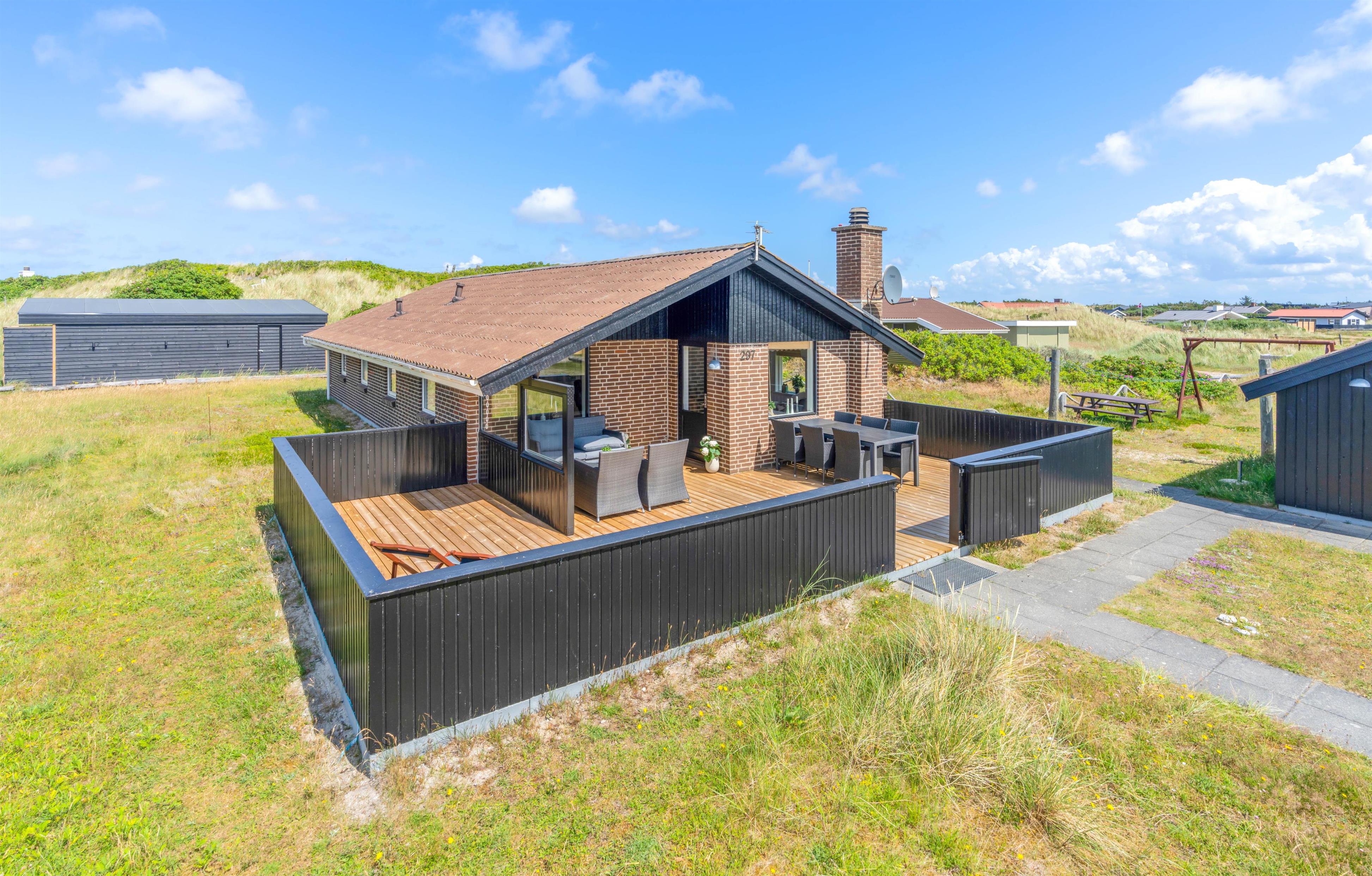 Sommerhuset på Bjerregårdsvej 297 ligger i naturskønne Bjerregård mellem hav og fjord. Området er præget af et smukt hede- og klitlandskab, som er forbundet af gode stier til gåture med hele familien. Fra sommerhuset er der kun 250 meter til stranden og Vesterhavet, som året rundt er et besøg værd.