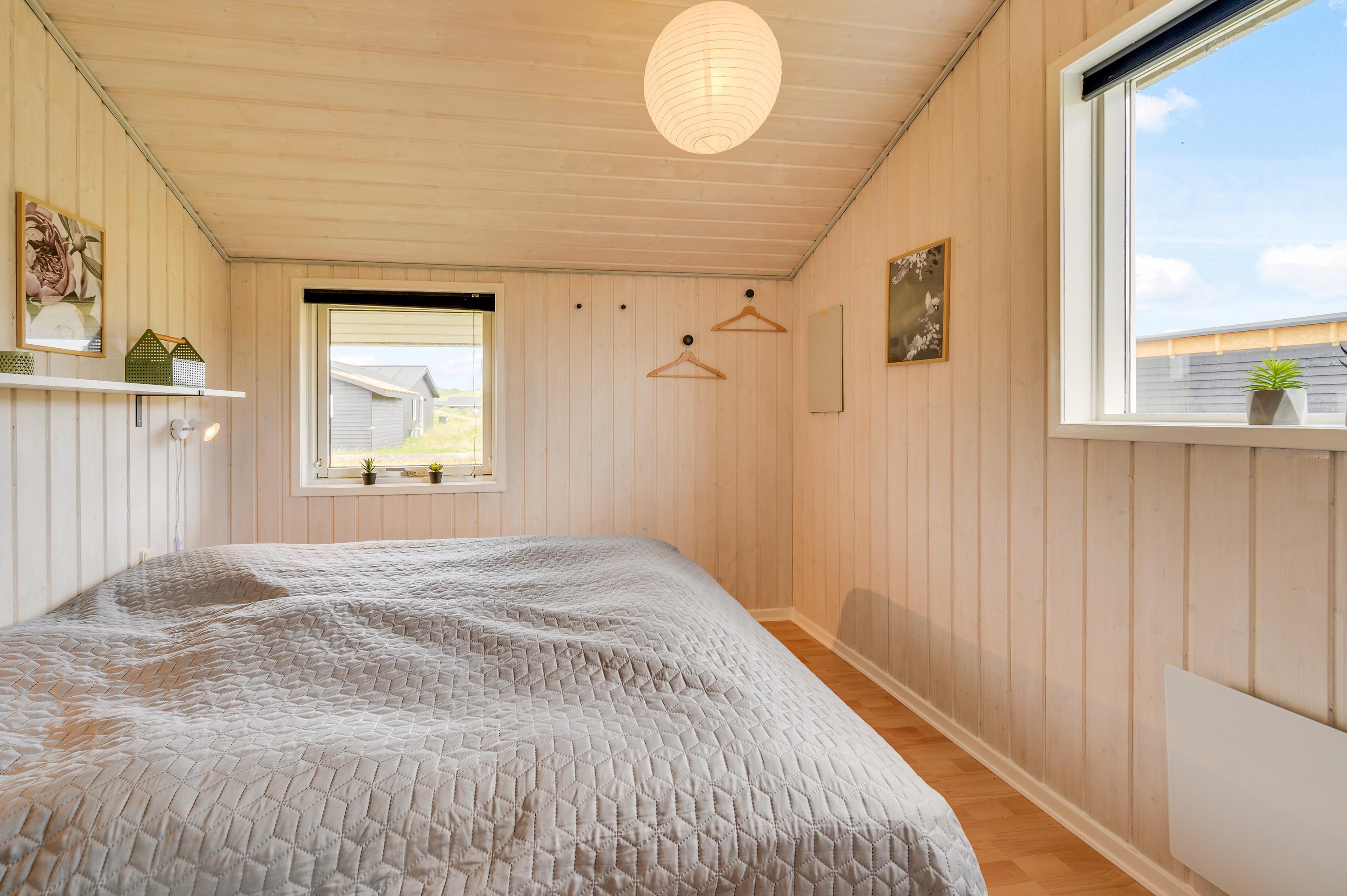 I dette hyggelige og meget velholdte sommerhus er rammerne for en dejlig ferie absolut til stede. Feriehuset er lyst og indbydende indrettet og har plads til 6 personer. Her er 4 soveværelser, som alle er indrettet med komfortable senge - 3 af dem med dobbeltsenge, og det sidste med en enkeltseng.