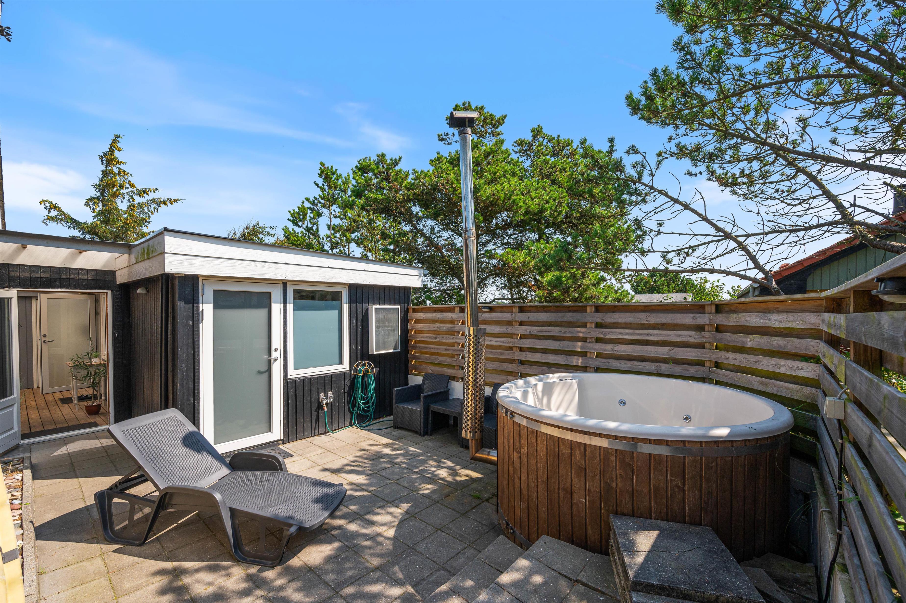 Udendørsområdet er et trækplaster ved sommerhuset. Den overdækkede terrasse gør det muligt for jer at nyde den friske luft selv i ustadigt vejr. Et hyggeligt bålsted indbyder til hyggelige aftener med snobrød og bålmad. Vildmarksbadet gemmer sig på den store terrasse bag gamle træer, så I kan slappe af i private omgivelser. Den indhegnede naturgrund byder på et grønt, beskyttet miljø, der er perfekt til afslappende timer i det fri. Her kan I trække jer tilbage, nyde naturen og stresse fuldstændigt af. Til de små er der en gynge, så de kan brænde lidt ekstra energi af der.