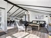 Det hyggelige køkken/alrum i forbindelse med stuen med brændeovn bliver hurtigt jeres fælles opholdssted på Dortheasvej 40. De store vinduer lukker masser af lys ind og fremhæver beliggenheden i klitlandskabet. Jeres køkkenevner kan I udfolde i det veludstyrede køkken med induktionskomfur og opvaskemaskine. Måltiderne kan I nyde ved spisebordet, og I kan trække jer tilbage til afslapning i sofaen med knitrende ild i brændeovnen, mens I mærker den skønne feriestemning – også på kølige aftener.