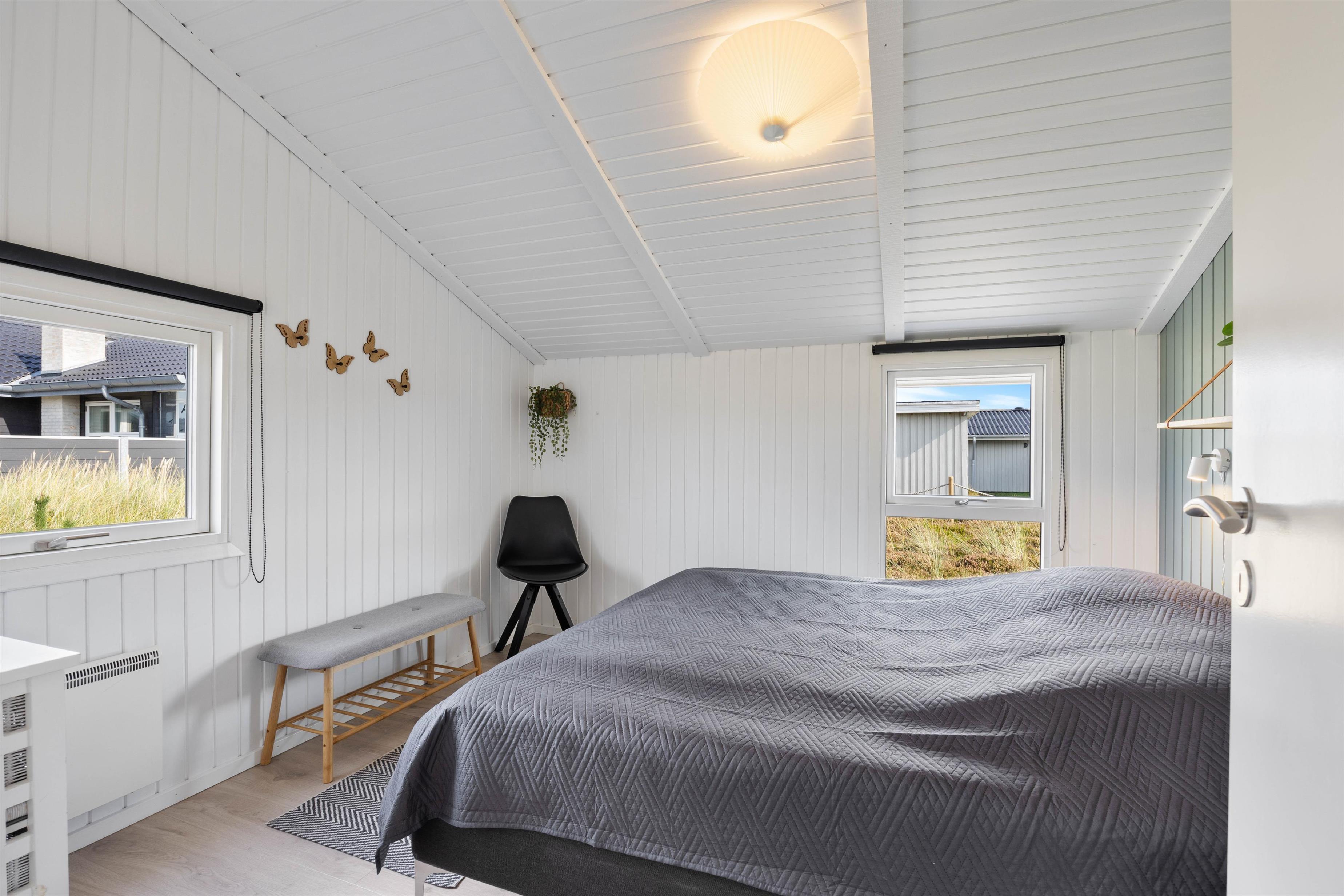 Sommerhuset har 3 gode soveværelser med 6 komfortable sengepladser, 2 med dobbeltsenge og 1 værelse med 2 enkeltsenge, hvilket gør det ideelt for både mindre og større familier. Sommerhuset er udstyret med en energibesparende luft-til-luft varmepumpe, hvilket gør det energieffektivt og bidrager til et behageligt indeklima hele året rundt. Der er også en vaskemaskine til rådighed for praktisk brug.