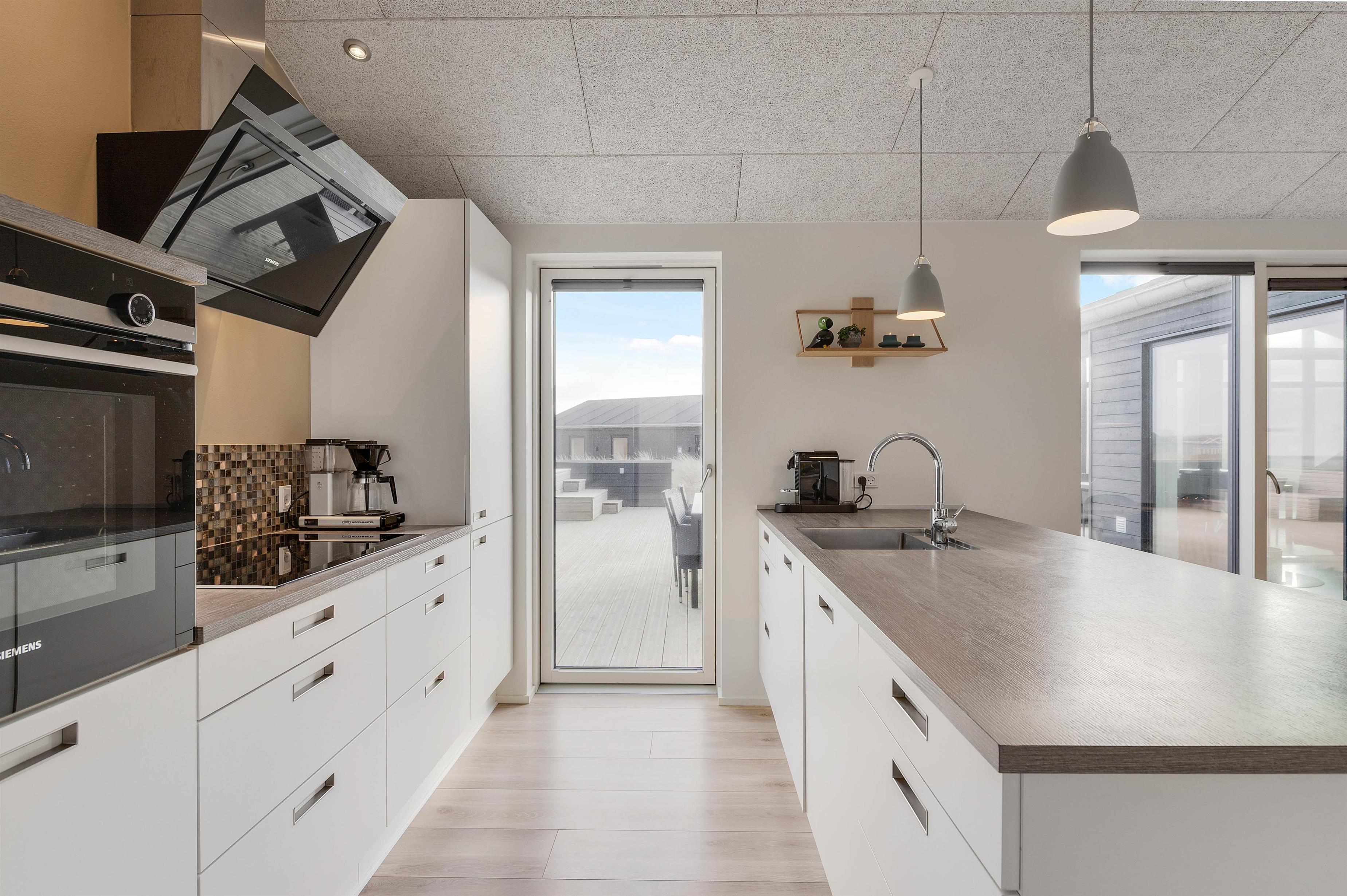Også udvendigt får I de lækreste omgivelser. Der er både lukket terrasse og en skøn udestue, så I kan nyde den friske havluft selv i regn og blæst, og der er selvfølgelig sørget for gode havemøbler og liggestole til de varme sommerdage.