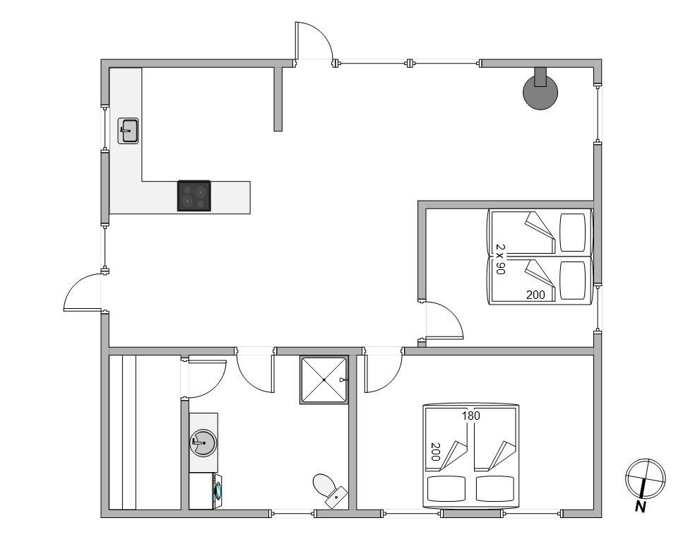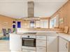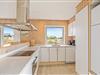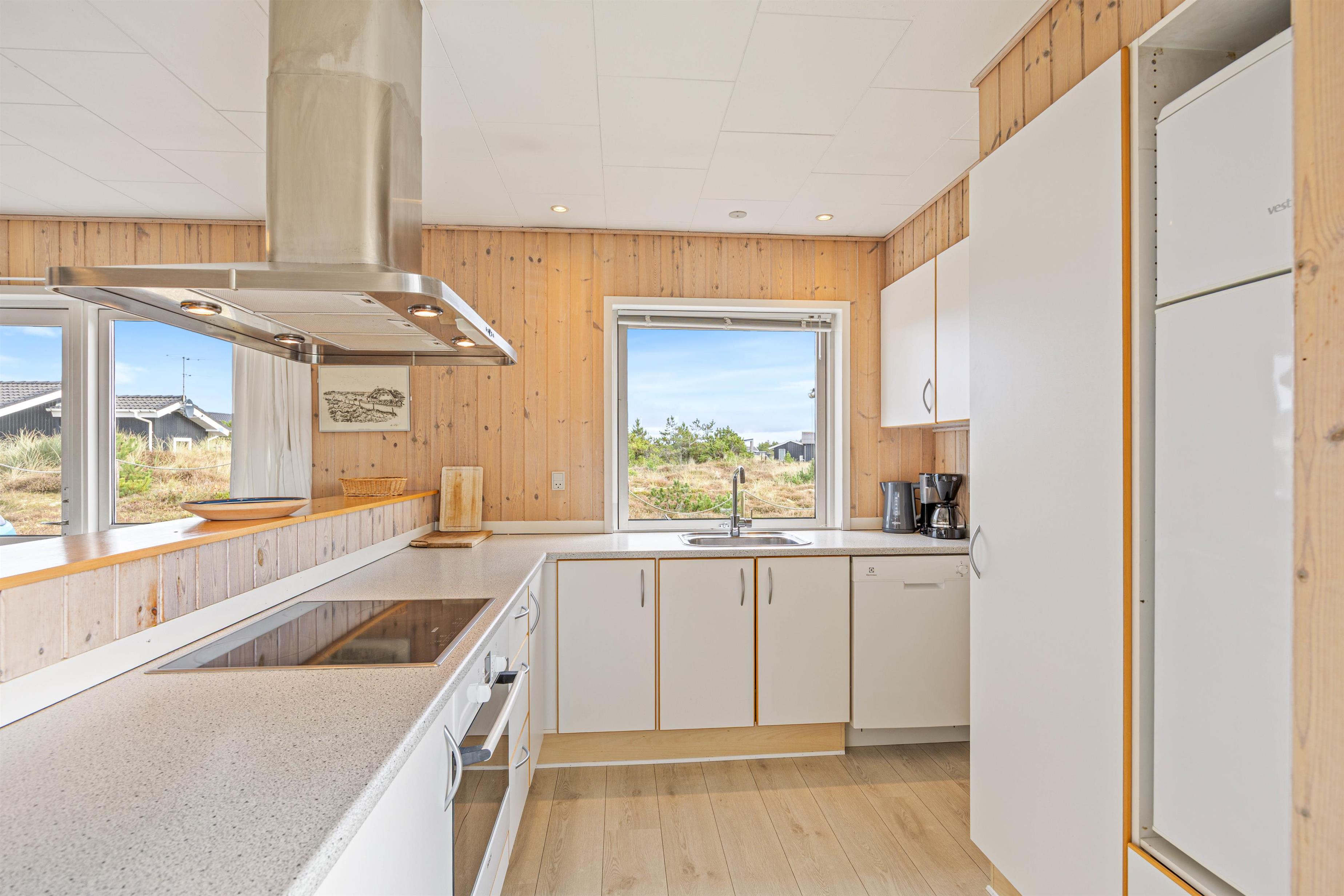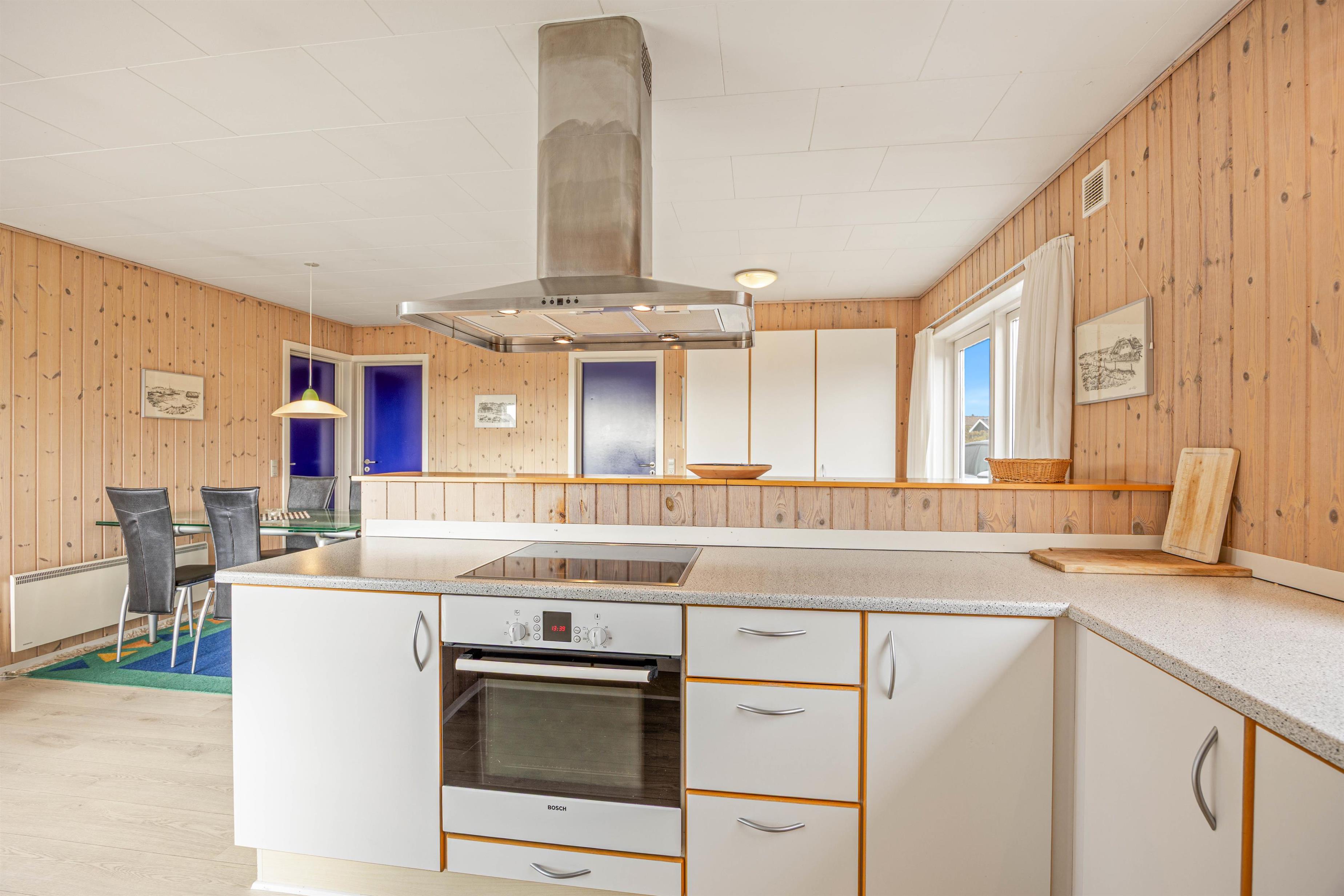 Køkkenet er dejligt lyst og åben ud mod stuen, så man også kan deltage i hyggen herfra. Og køkkenet er naturligvis udstyrret med moderne husholdningsapparater og hårde hvidevarer, der gør de huslige gøremål nemme og bekvemme under ferien.