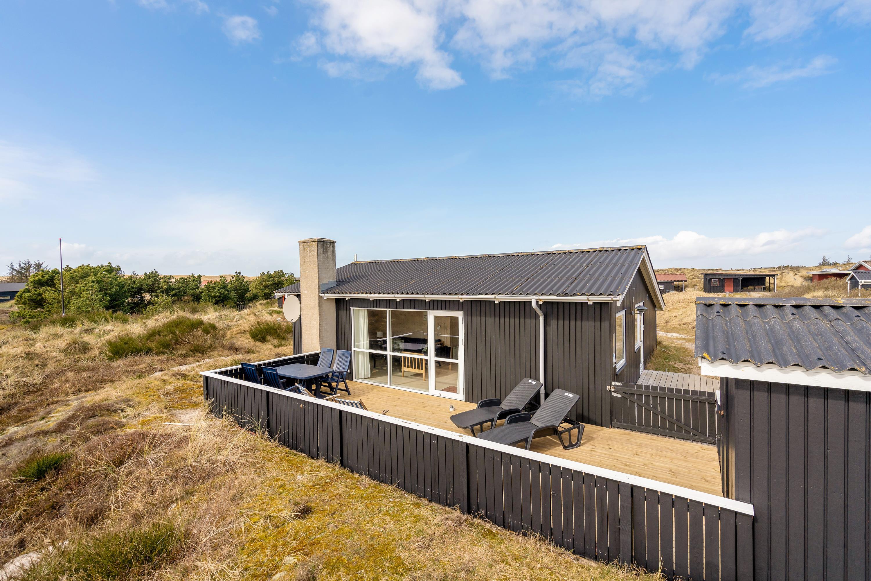 Feriehuset har også en god størrelse, hvis man som par bare gerne vil tilbringe lidt tid med hinanden væk fra hverdagens pligter. Og da sommerhuset ikke ligger så langt fra Vesterhavet, kan man her nyde tosomheden på dejlige gåture langs stranden, der virkelig kan få krop og sjæl til at geare ned og nyde nuet. Og en dag ved stranden kan eventuel fuldendes med et tur i den varme sauna og en dejlig drink.