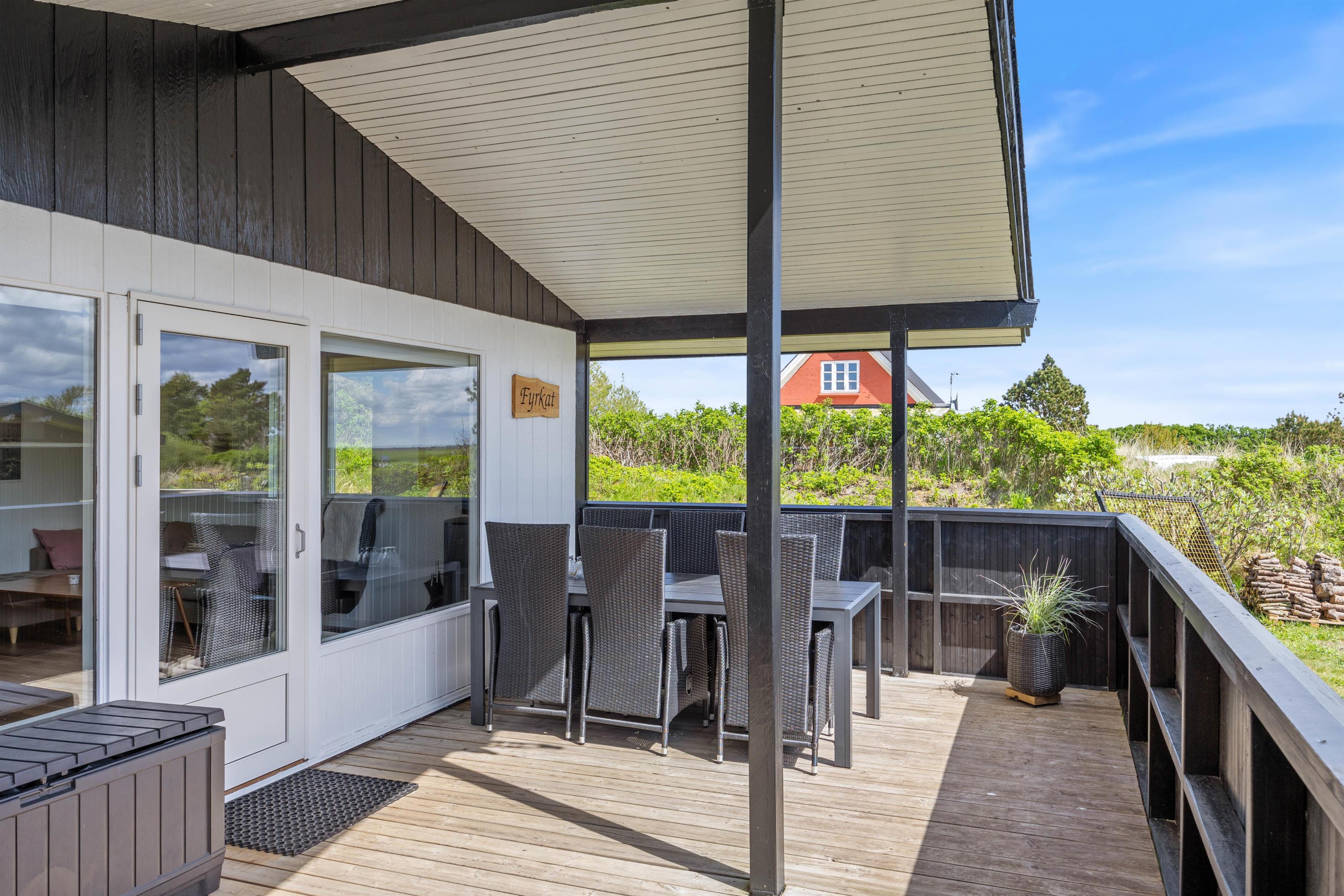 Træterrassen er overdækket og helt perfekt til de lune sommeraftner, hvor I naturligvis skal have tændt op i grillen. Tilbered en lækker sommermenu og nyd hertil et koldt glas rosé.