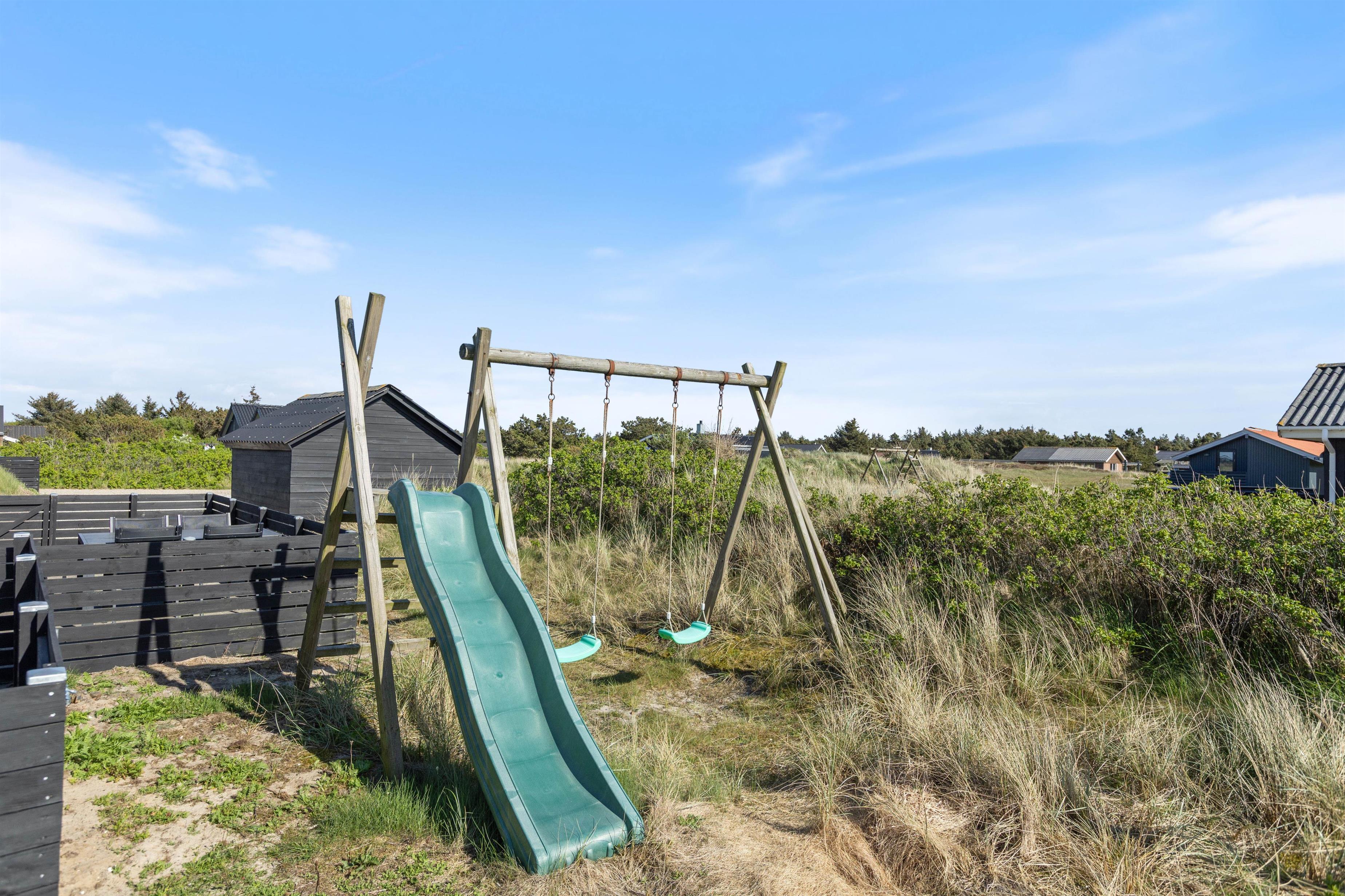 Den ene af de 2 store, møblerede terrasser er helt lukket og derfor særdeles velegnet, hvis I er en familie med småbørn og/eller hund – her kan man tumle frit, og børnene har desuden legeredskaber til rådighed. Som et ekstra plus er der både sandkasse og gyngestativ til familiens yngste.