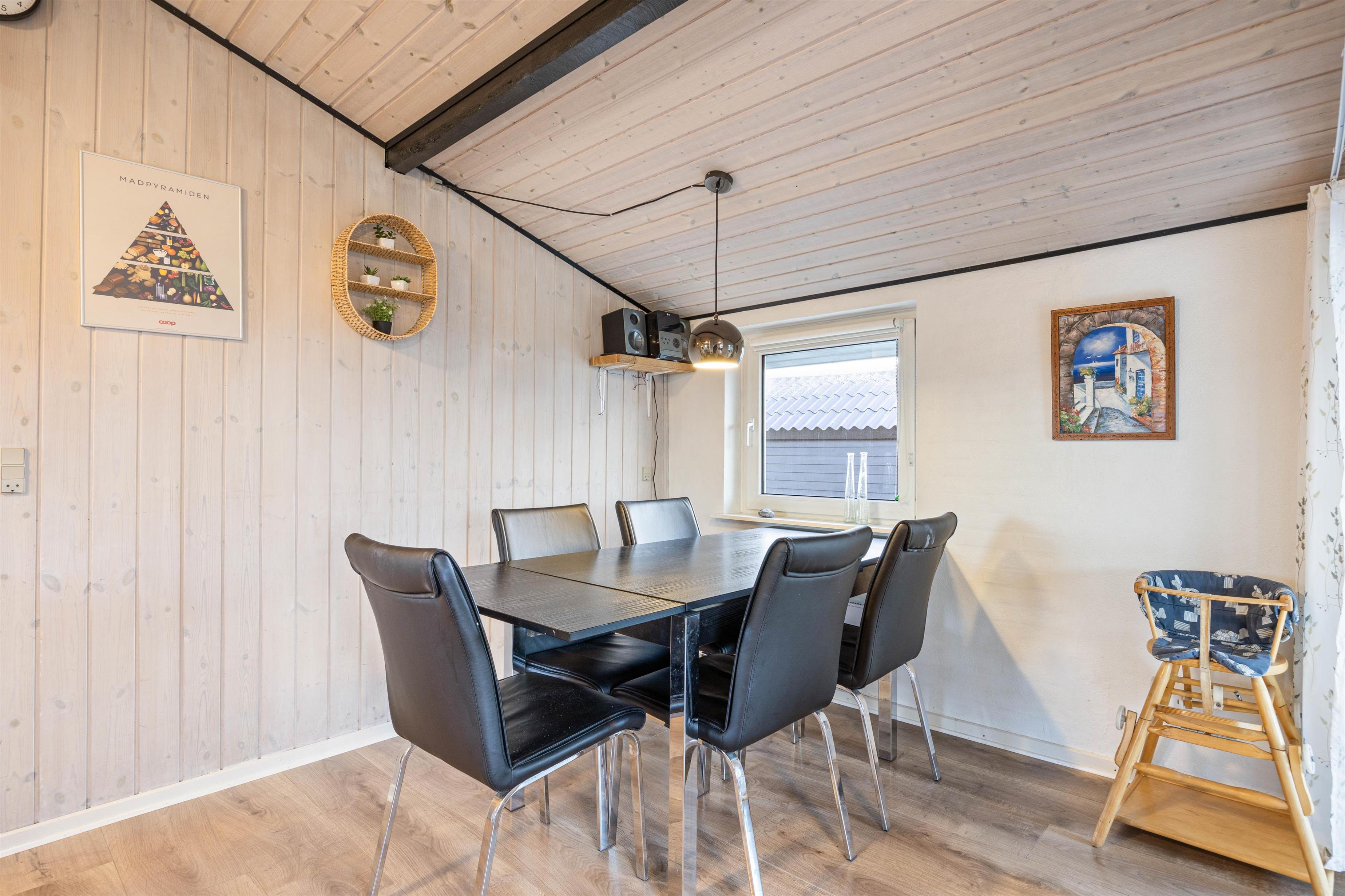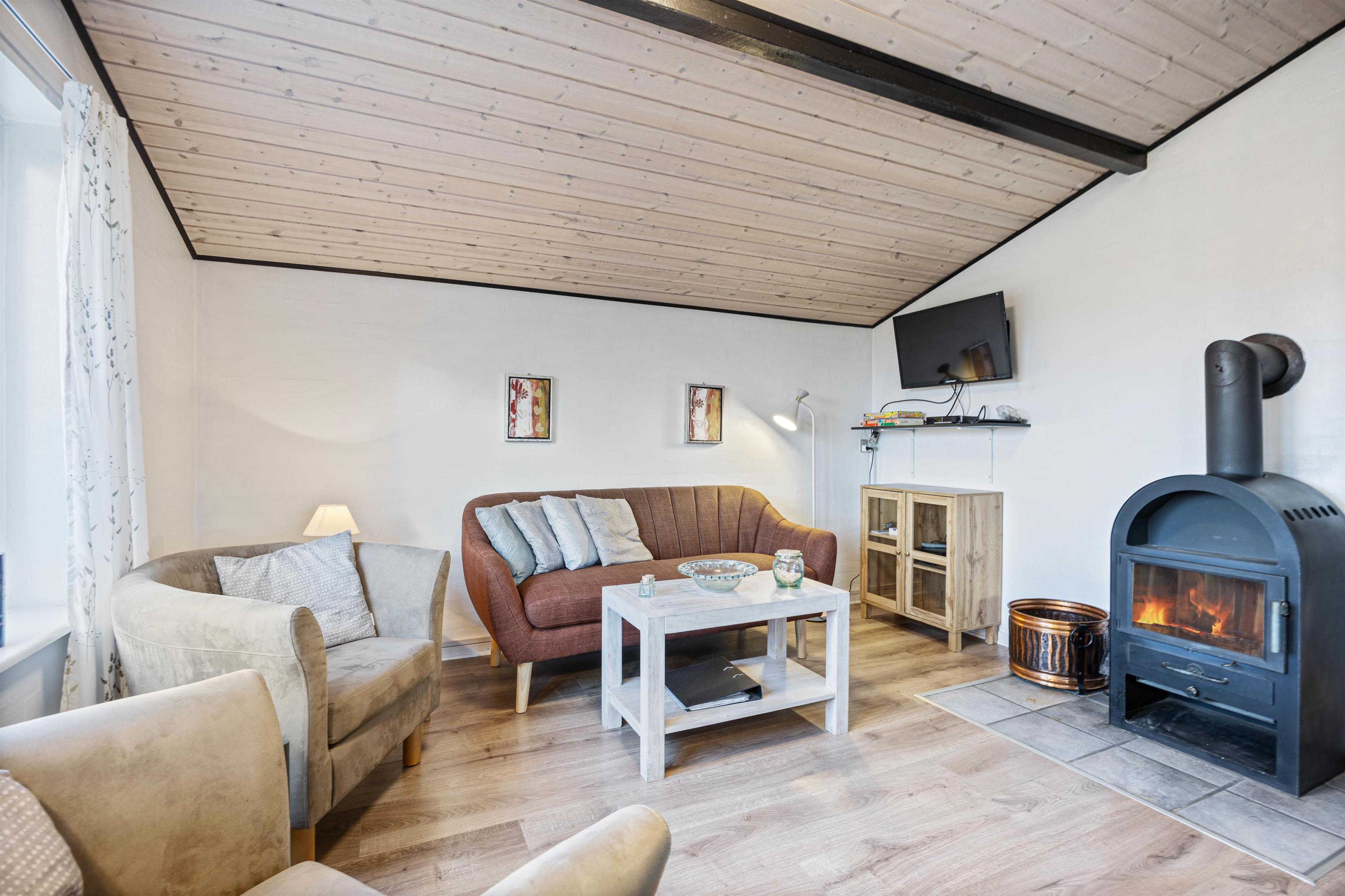 Sommerhuset er hyggeligt indrettet med lyse rum. Køkkenet er i åben forbindelse med spiseafdelingen. I opholdsafdelingen findes både brændeovn, fladskærmsTV/parabol, DVD og CD-radio.