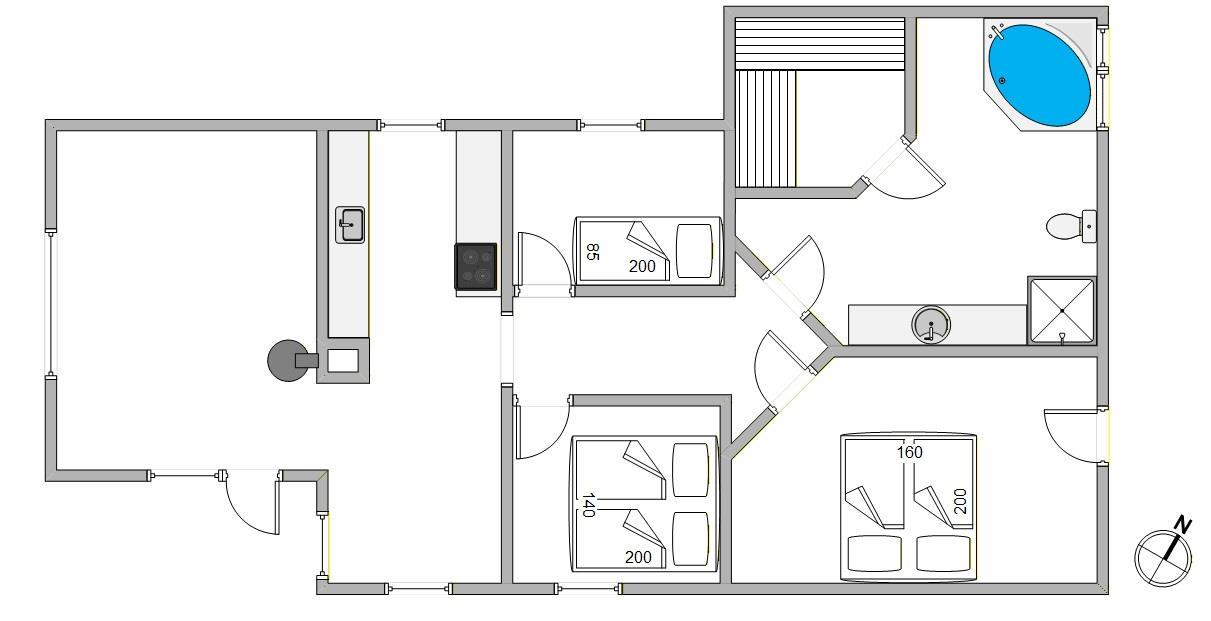 De op til 5 feriegæster kan fordele sig på 3 værelser, hvoraf 2 er indrettet med senge på 140 cm. På det sidste værelse finder I en komfortabel enkeltseng til en god nats søvn, så batterierne kan lades op til morgendagens ferieaktiviteter.