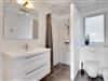 Sommerhuset har 2 flotte badeværelser med gulvvarme og bruser. Det store badeværelse har desuden et dejligt boblebad til 2 personer.