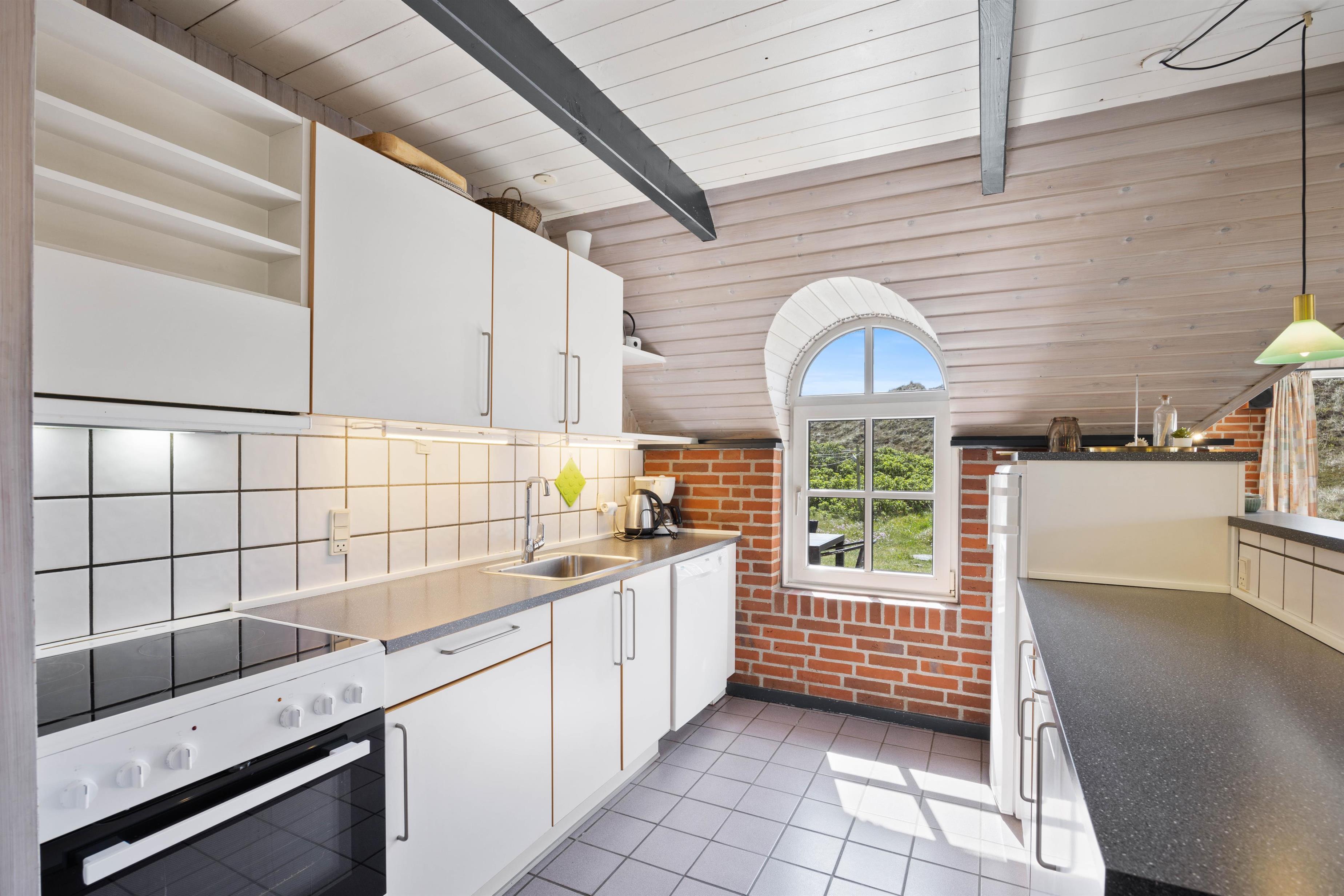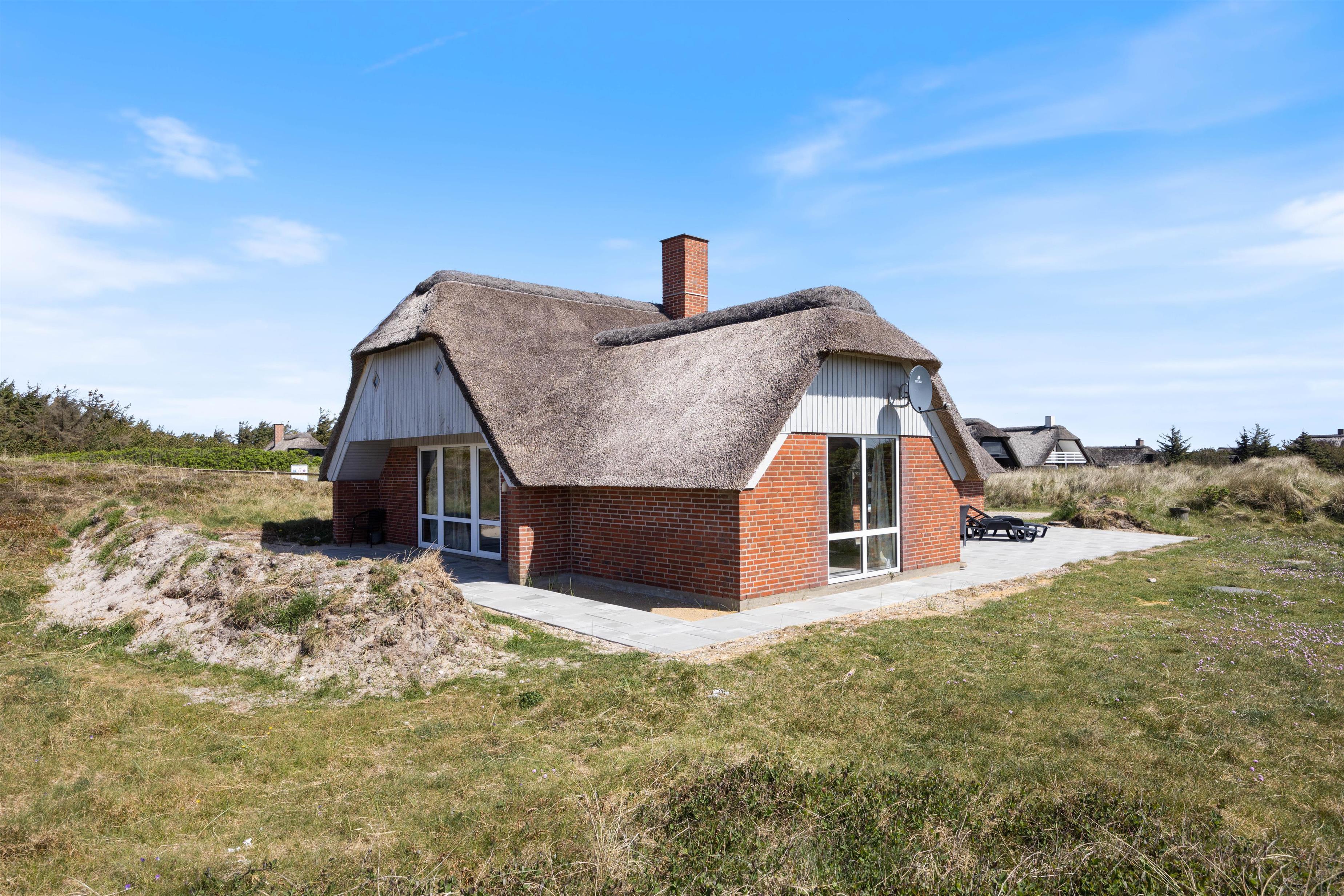 Den førsteklasses beliggenhed ved foden af den yderste klitrække i den storslåede natur i Vestjylland gør udendørslivet til en oplevelse, den fine sandstrand er lige på den anden side af klitten og fra den flisebelagte og velmøblerede terrasse er der udsigt over vidtstrakte hedearealer, hvor en travetur med familiens hunde vil være en daglig fornøjelse.