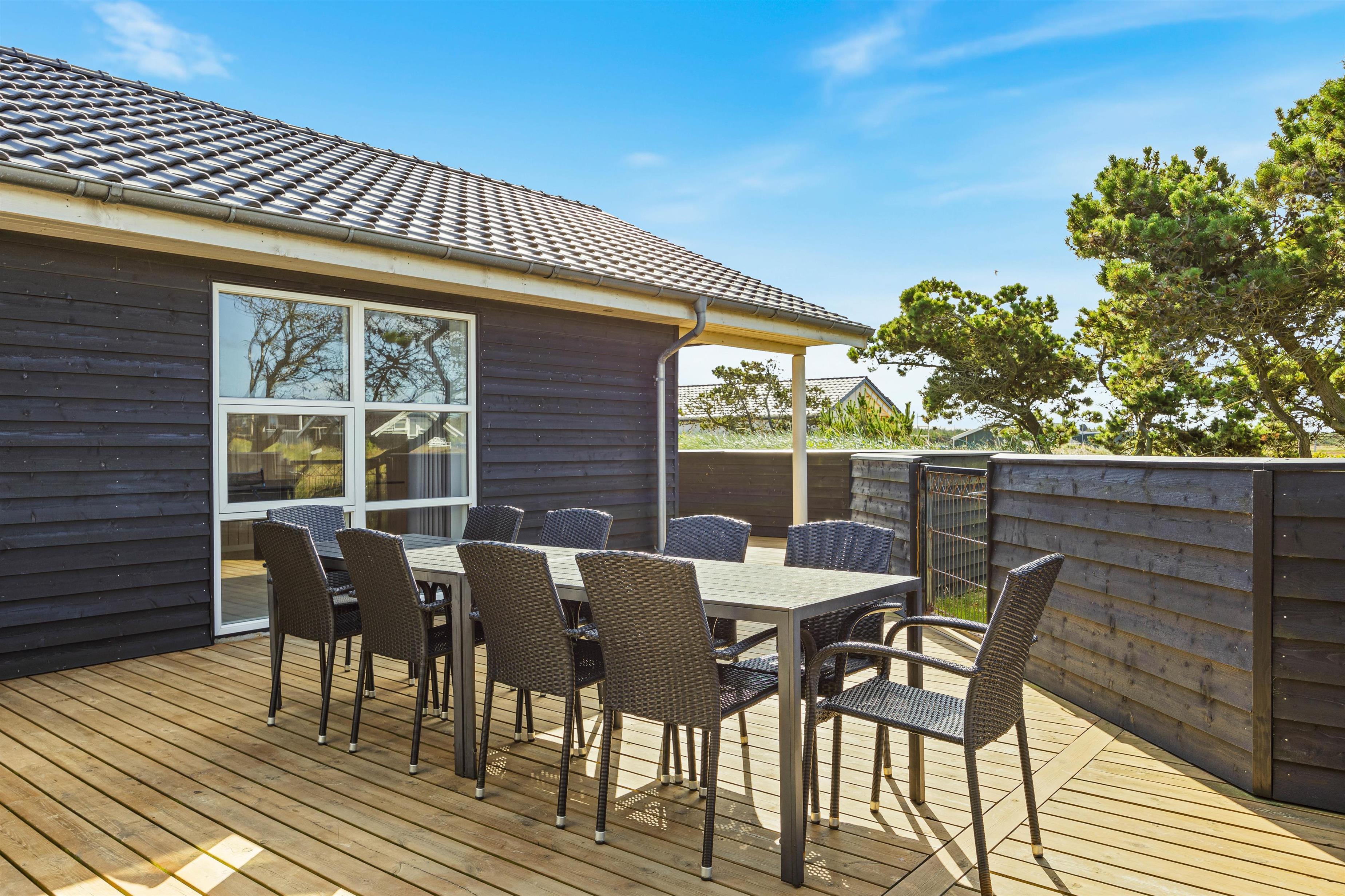 Her er plads til 10 gæster, og familiens hunde også velkommen – praktisk er her en lukket terrasse, hvor I kan nyde solskinstimerne og bekymringsfrit lade hundene lege.