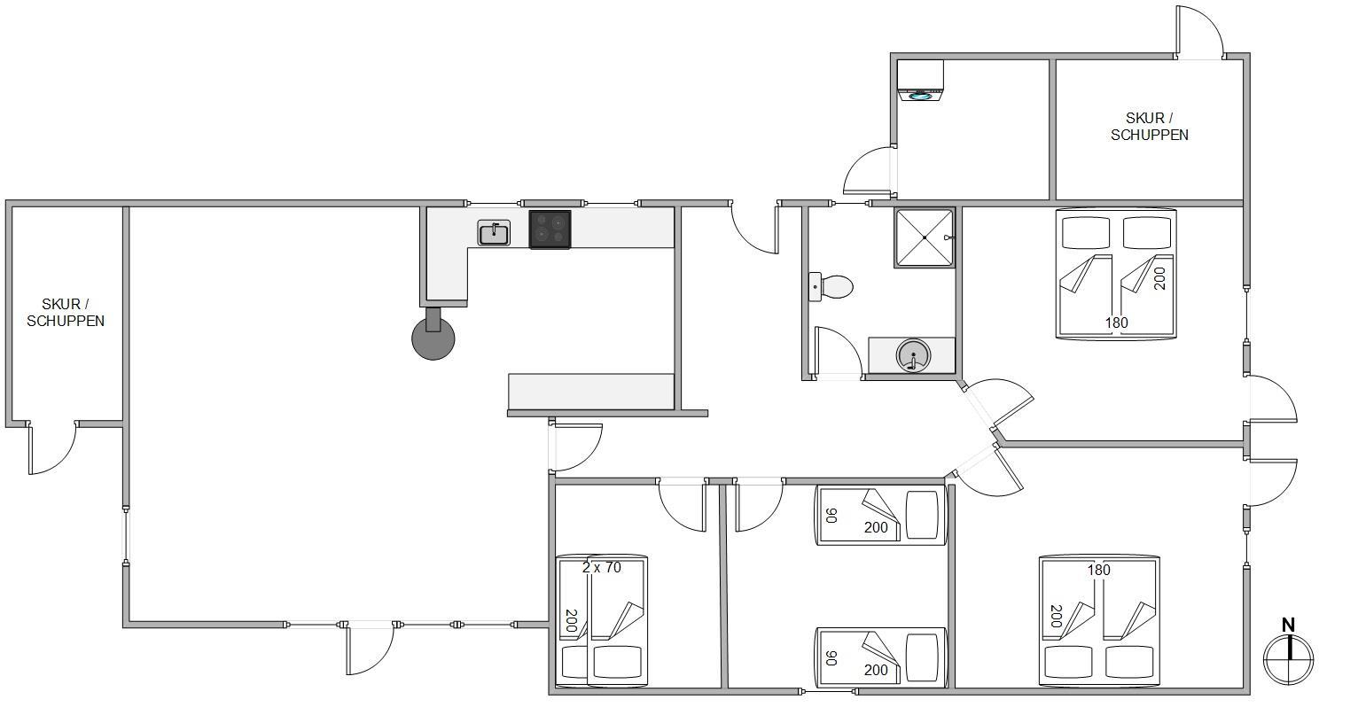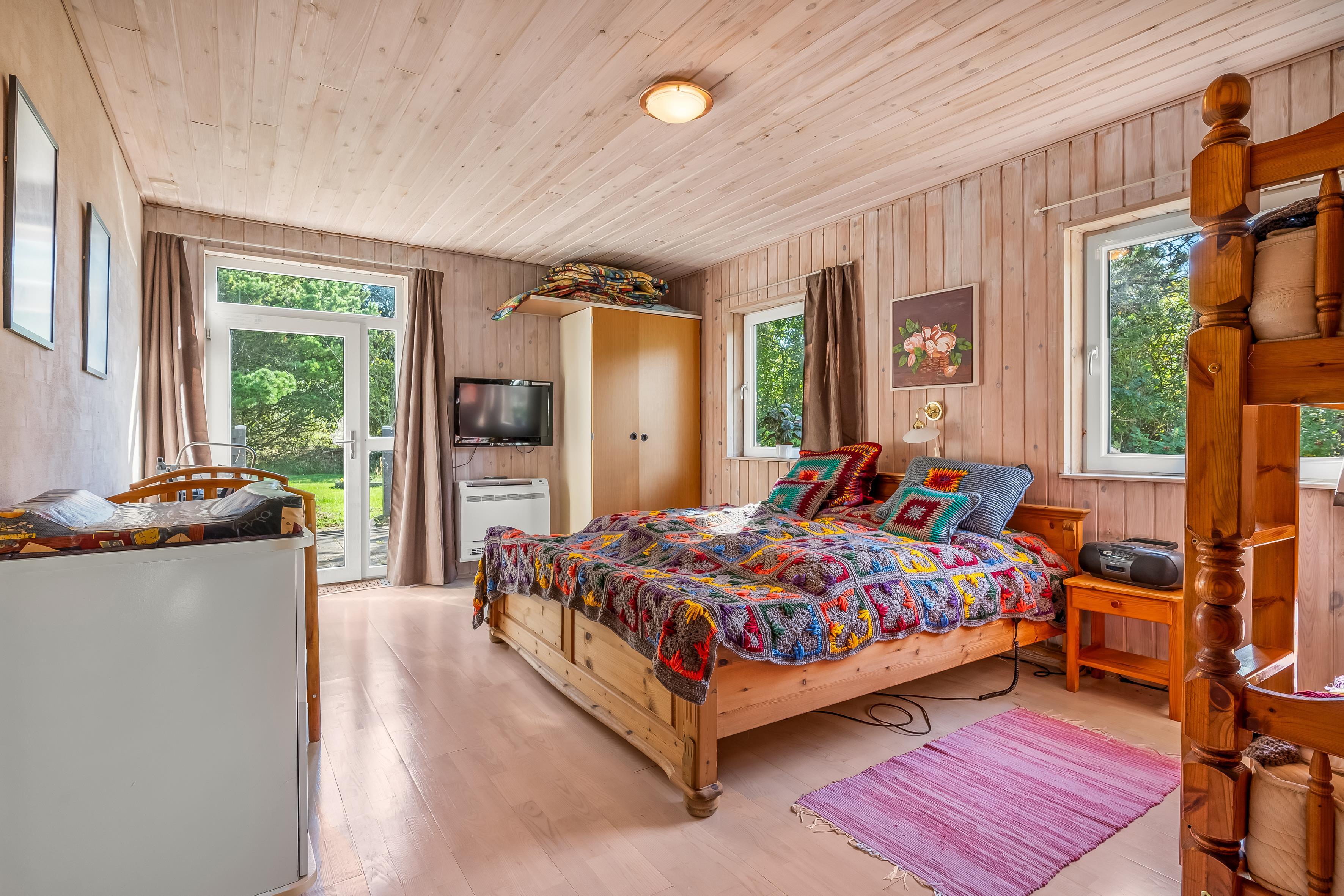 Velkommen på Heidesvej 12 – en praktisk feriebolig på 124 m2, som rummer 4 soverum. Alle værelser er indrettet med dobbeltsenge og på det ene værelse, findes også en køjeseng. Her har børnene mulighed for at sove hos forældrene eller også kan værelset danne rammerne omkring det hyggeligste børneværelse.