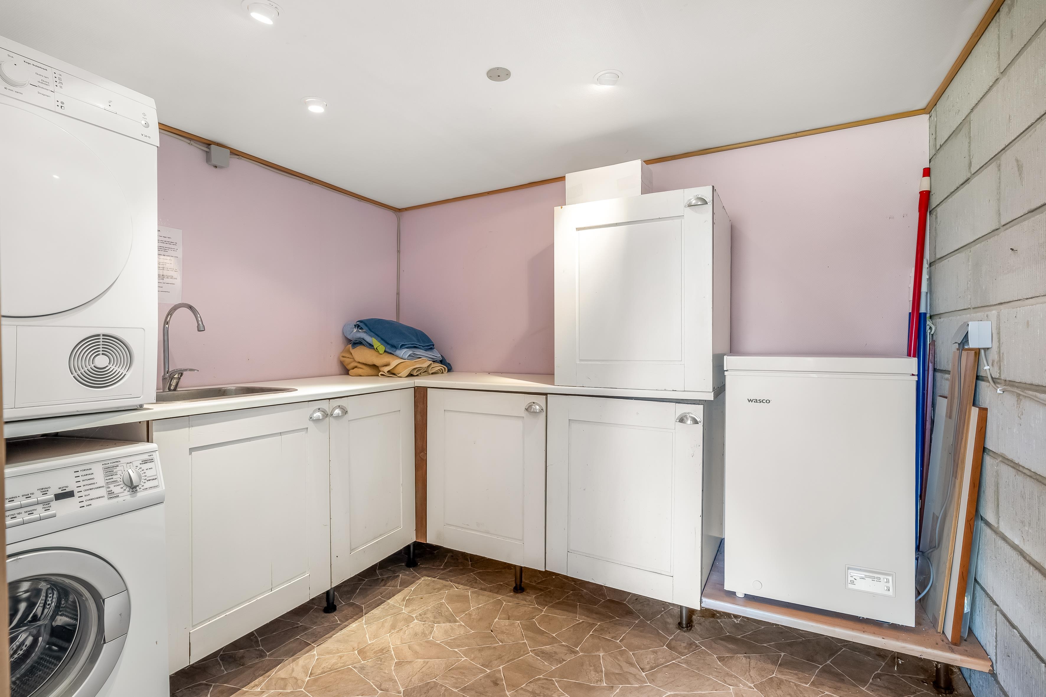 Køkkenet er udstyret med opvaskemaskine, og I feriehuset finder I en stor 100L fryser. Sommerhuset råder derudover også over et rummeligt badeværelse samt et stort bryggers med både vaskemaskine og tørretumbler. Så er I sikret friske strandhåndklæder under hele ferien.