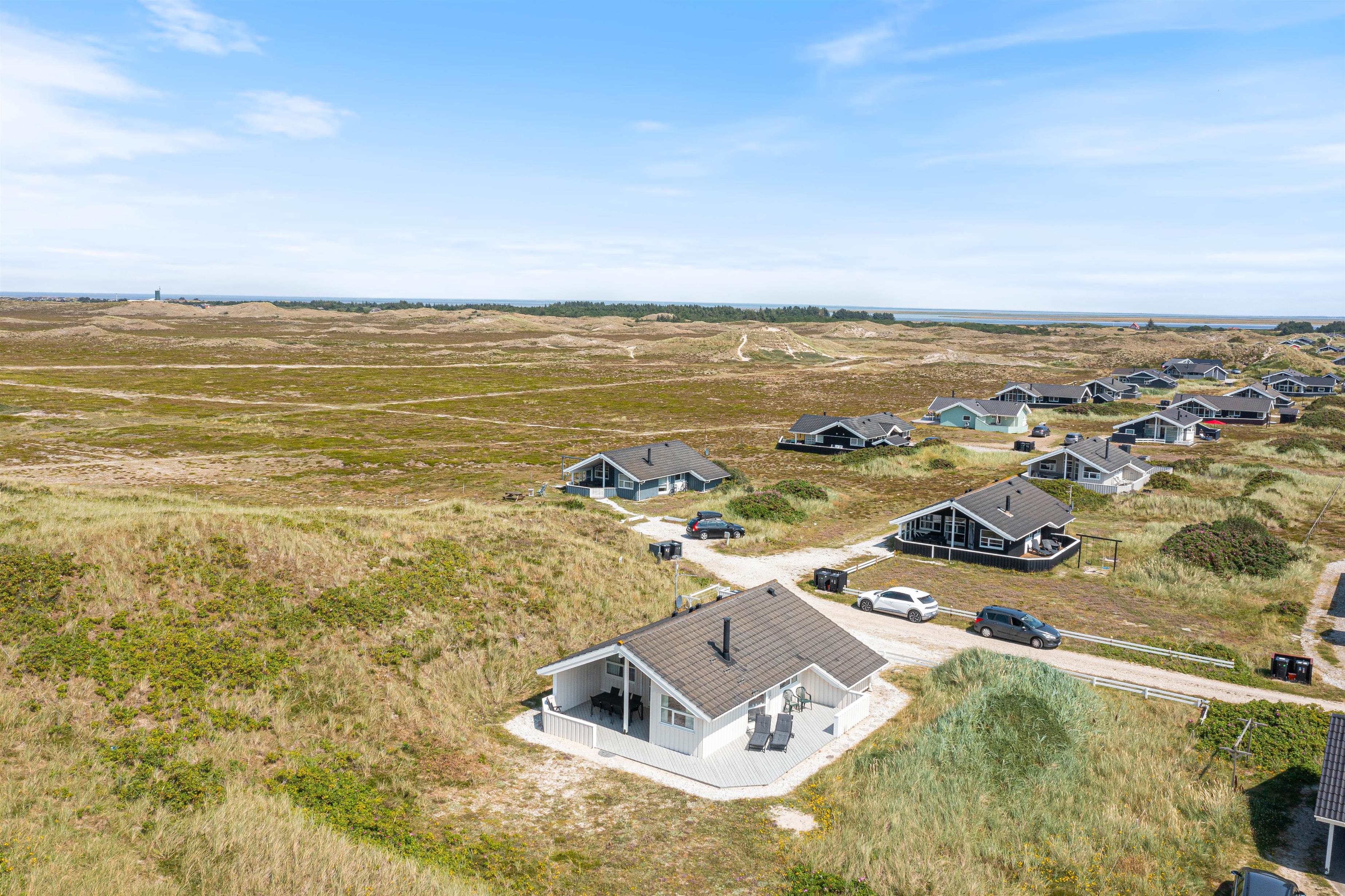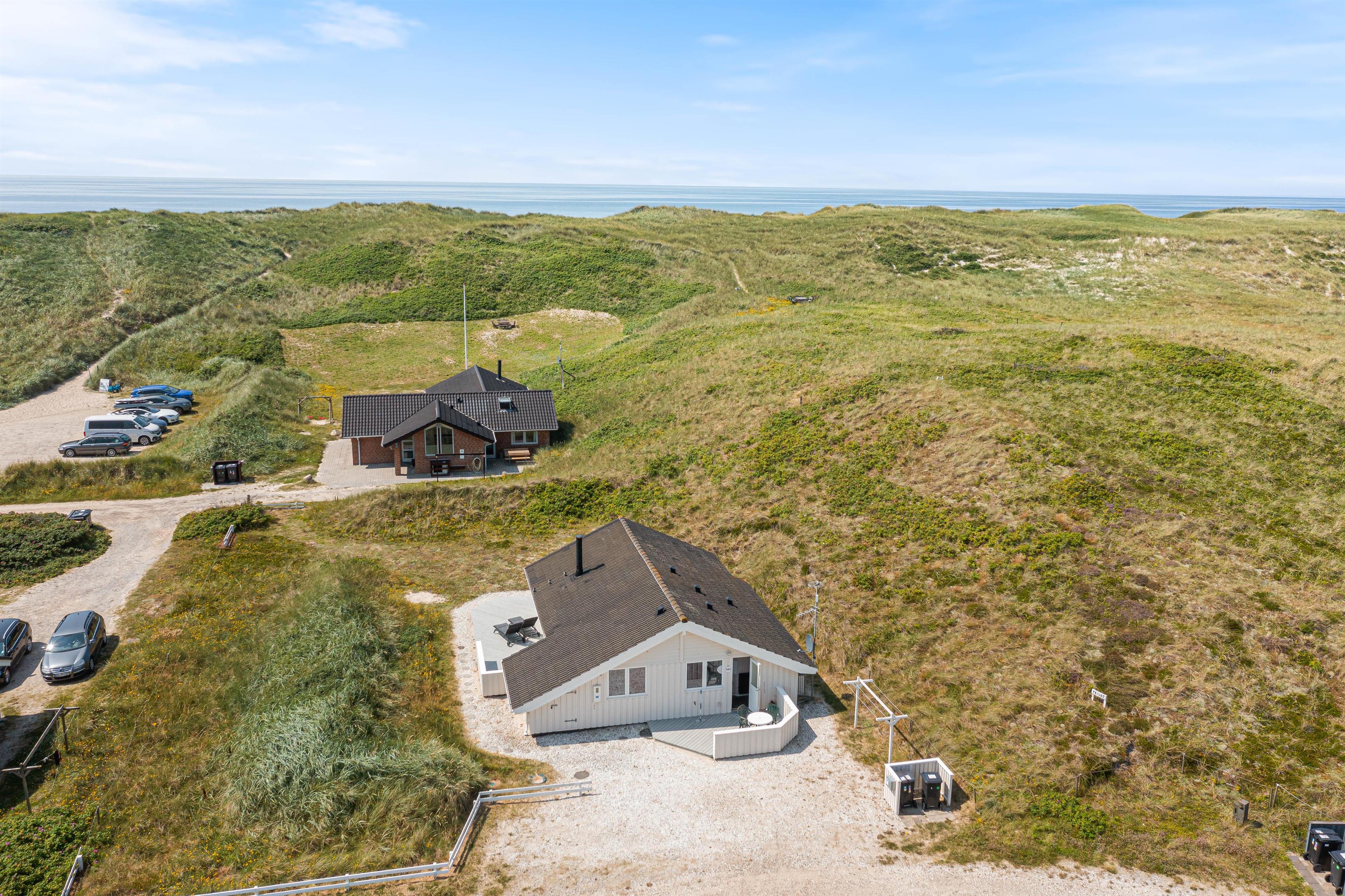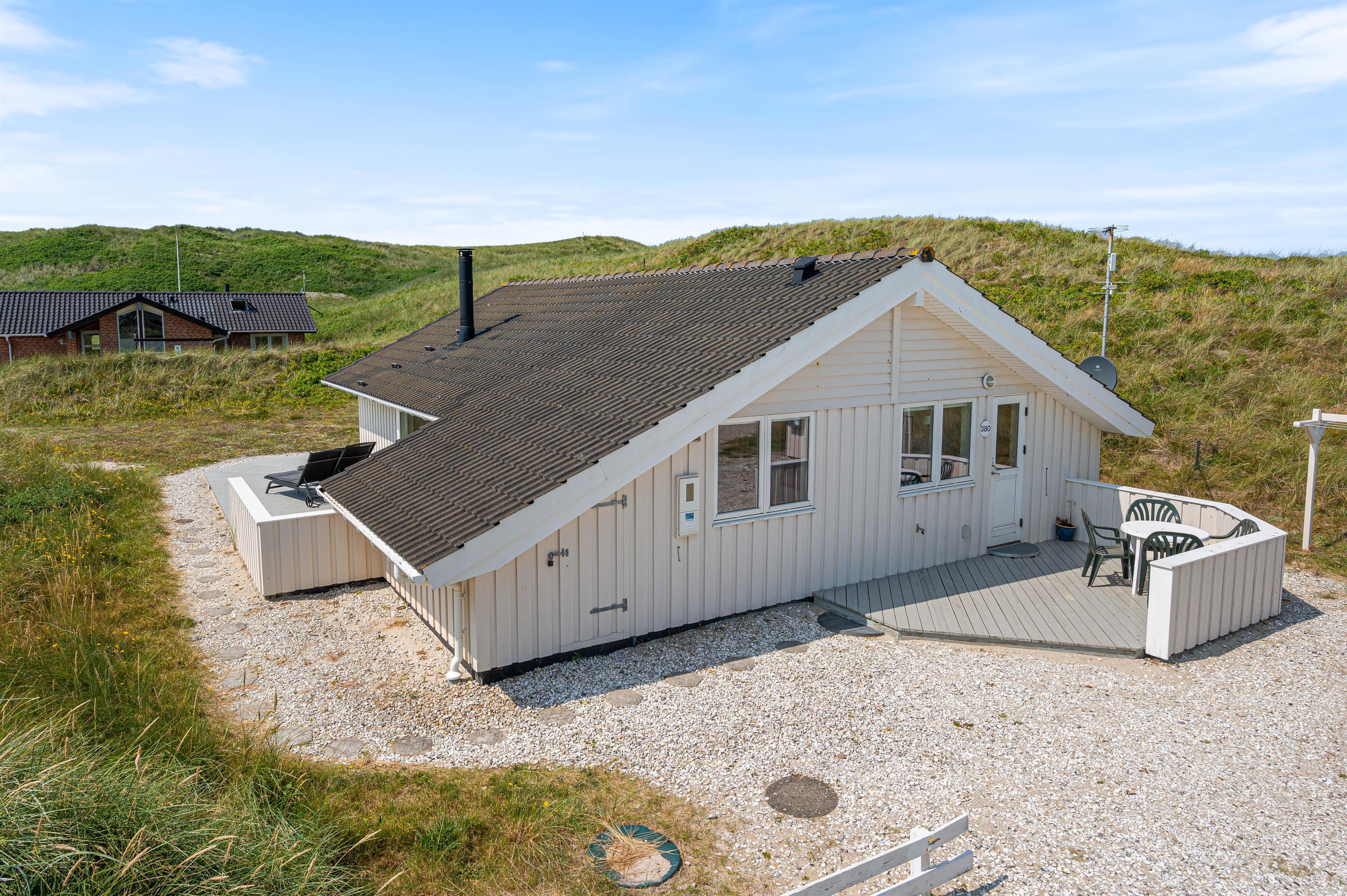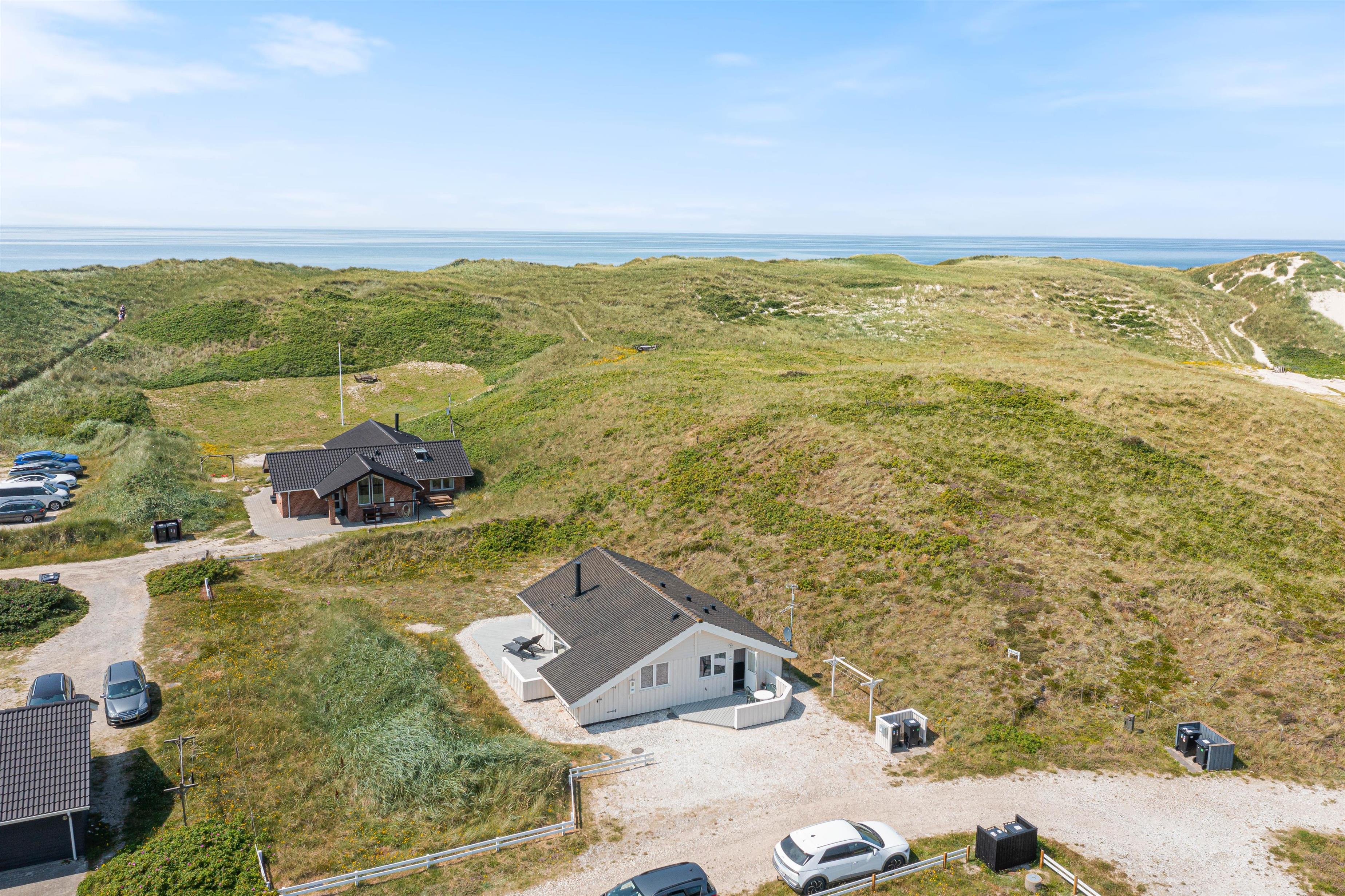 Her på Bjerregårdsvej 380 kan I holde ferie i et dejligt og hyggeligt sommerhus. Sommerhuset til 5 personer er lyst og venligt indrettet og smagfuldt møbleret. Sommerhuset har en fantastisk beliggenhed på en skøn afskærmet klitgrund for enden af en lille vej direkte ved Vesterhavet.