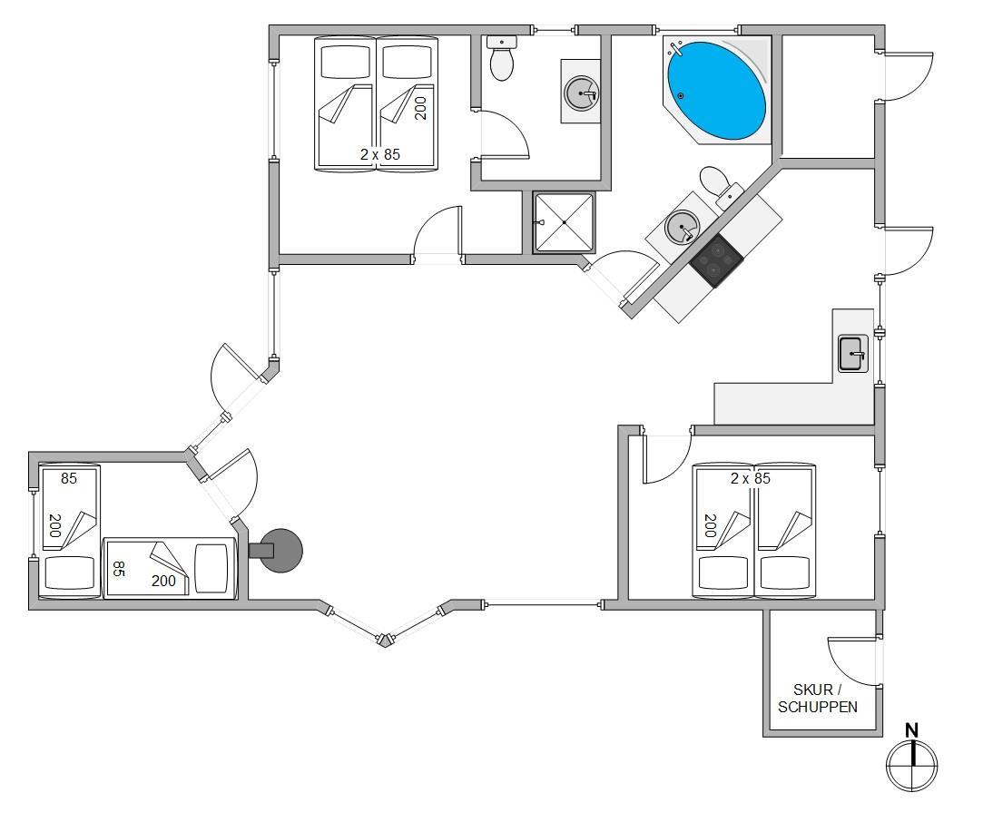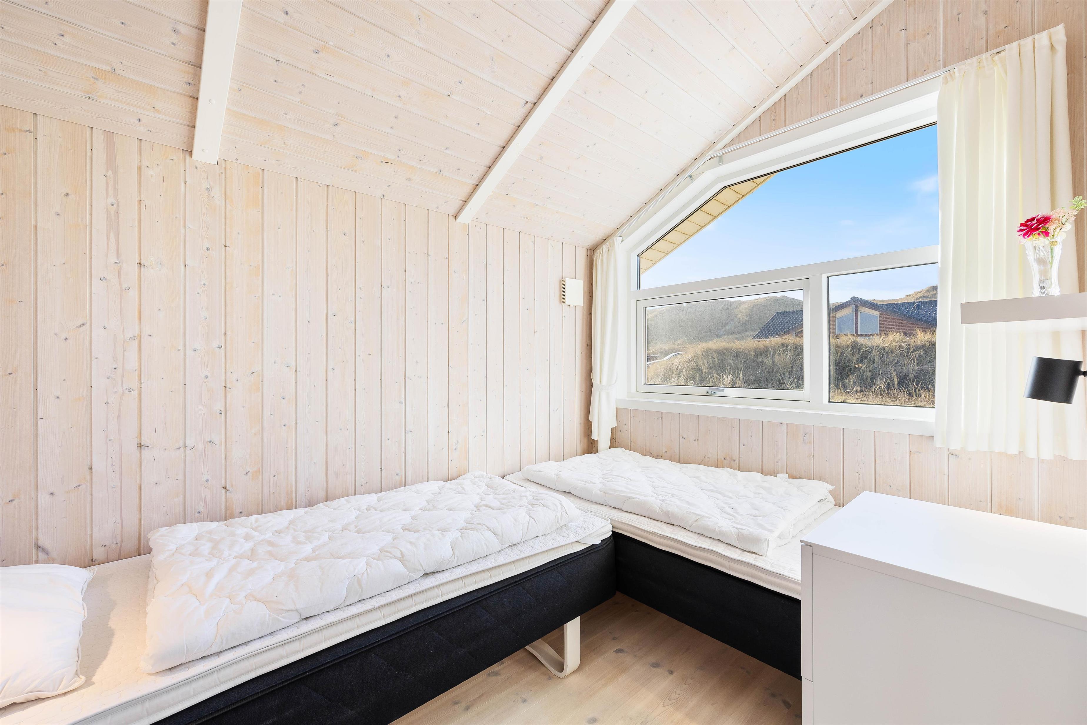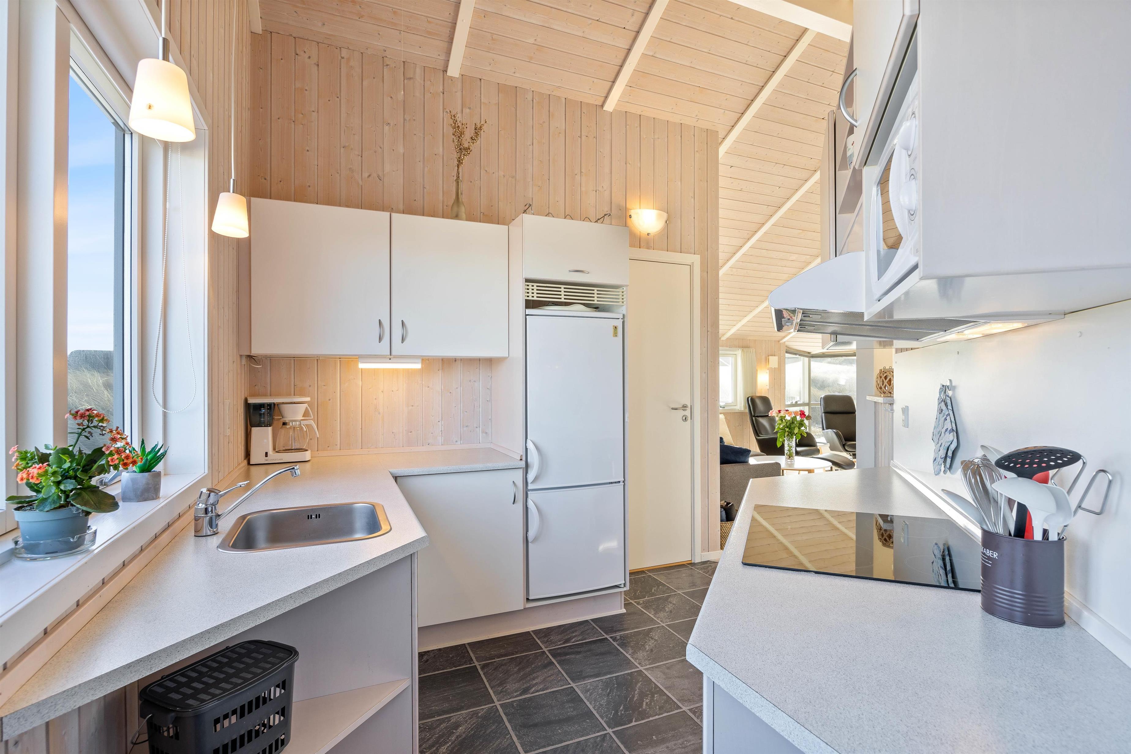 Efter en lang dag på stranden kan du nyde de hyggelige omgivelser i feriehuset. Her er plads til 5 personer i de 3 soveværelser. Køkkenet er udstyret med alt, hvad du behøver for at tilberede en herlig middag. I stuen kan du nyde varmen fra brændeovnen, slappe af i sofaen eller hygge dig med en god bog.