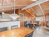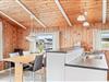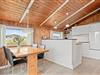 Centrum i sommerhuset er det hyggelige opholdsrum, hvor I både har køkken- og spiseafdeling, samt et hyggeligt sofahjørne foran TVet. På de køligere dage kan du måske nyde en god bog her foran den knitrende ild i brændeovnen.