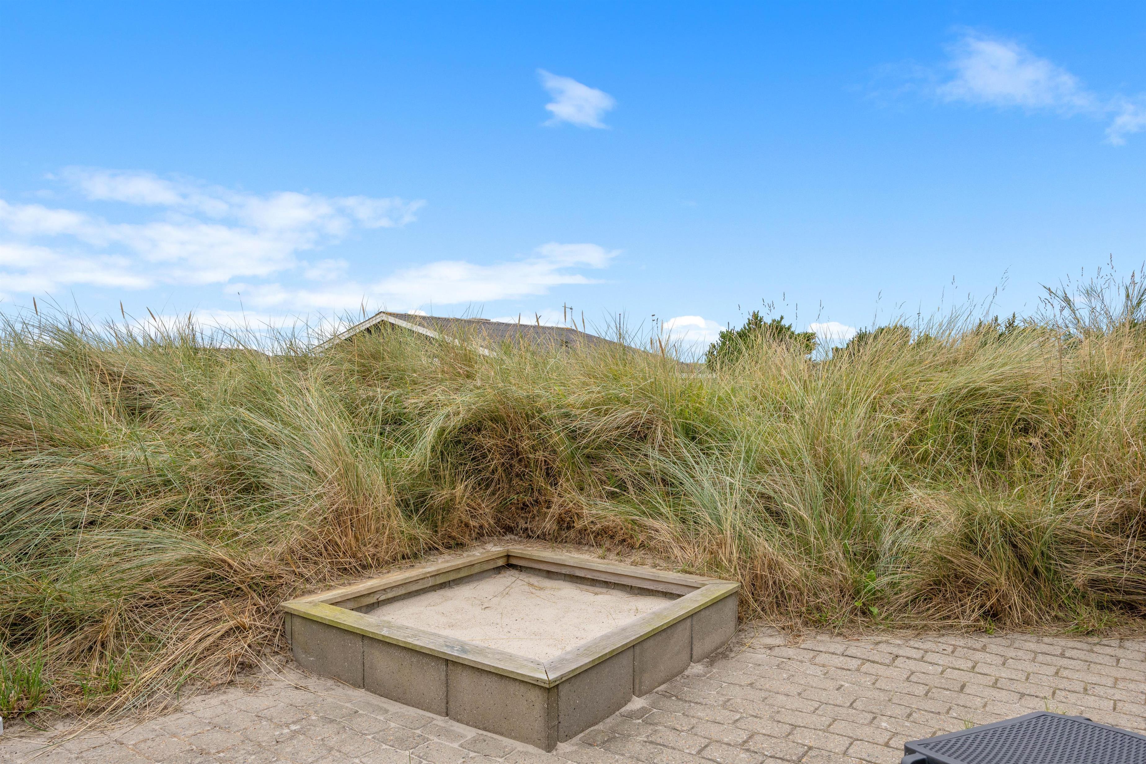 På Holmsland Klit mellem hav og fjord i det skønne Vestjylland ligger dette særdeles velholdte og indbydende feriehus. Den kuperede naturgrund gør, at du ugeneret kan slappe af på den store, delvis overdækkede terrasse. Her er naturligvis gode havemøbler og liggestole og det er altid muligt at finde en lækrog til afslapning og kulinariske udfoldelser på grillen. Til familiens yngste er der både sandkasse og gynge på naturgrunden.