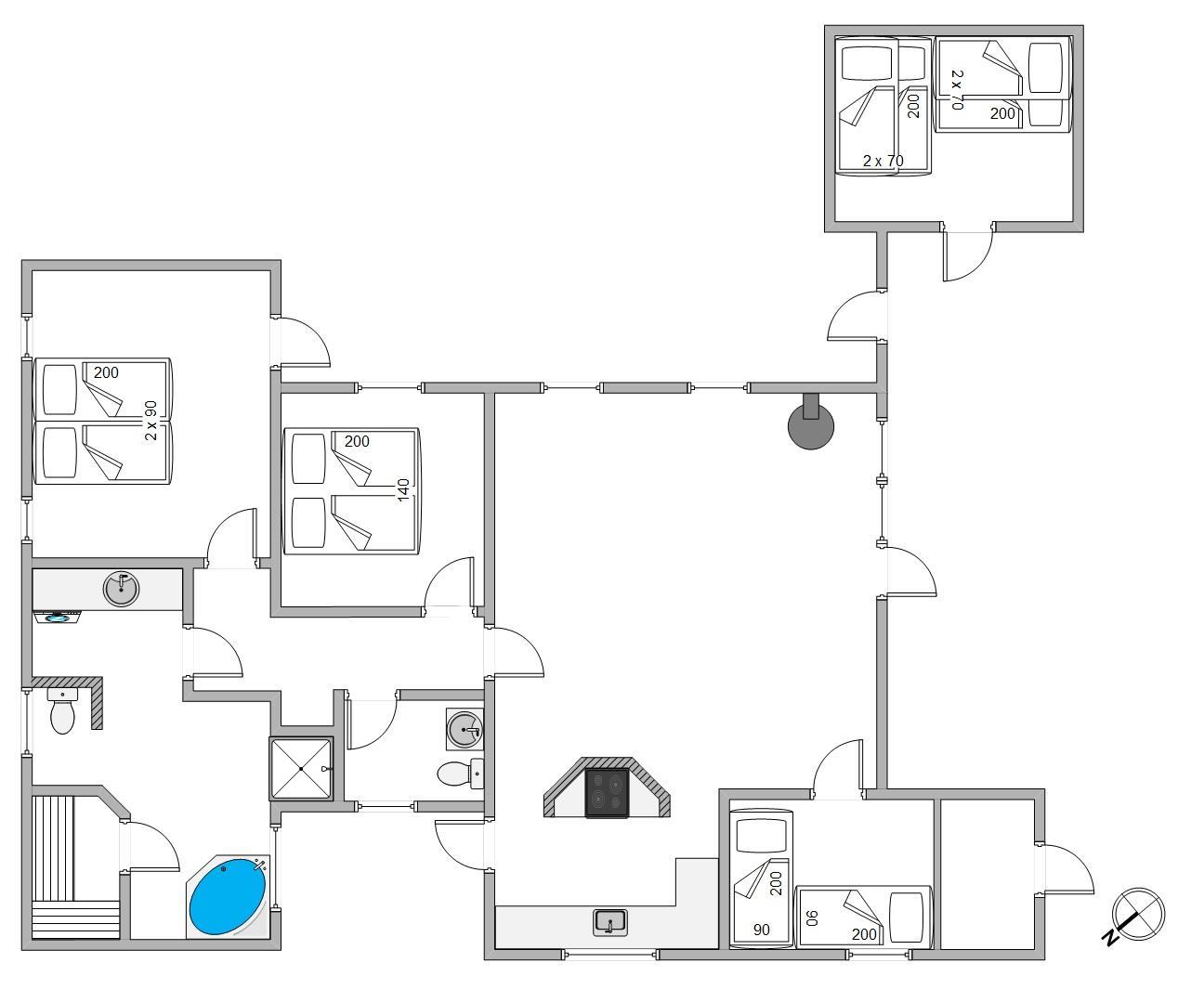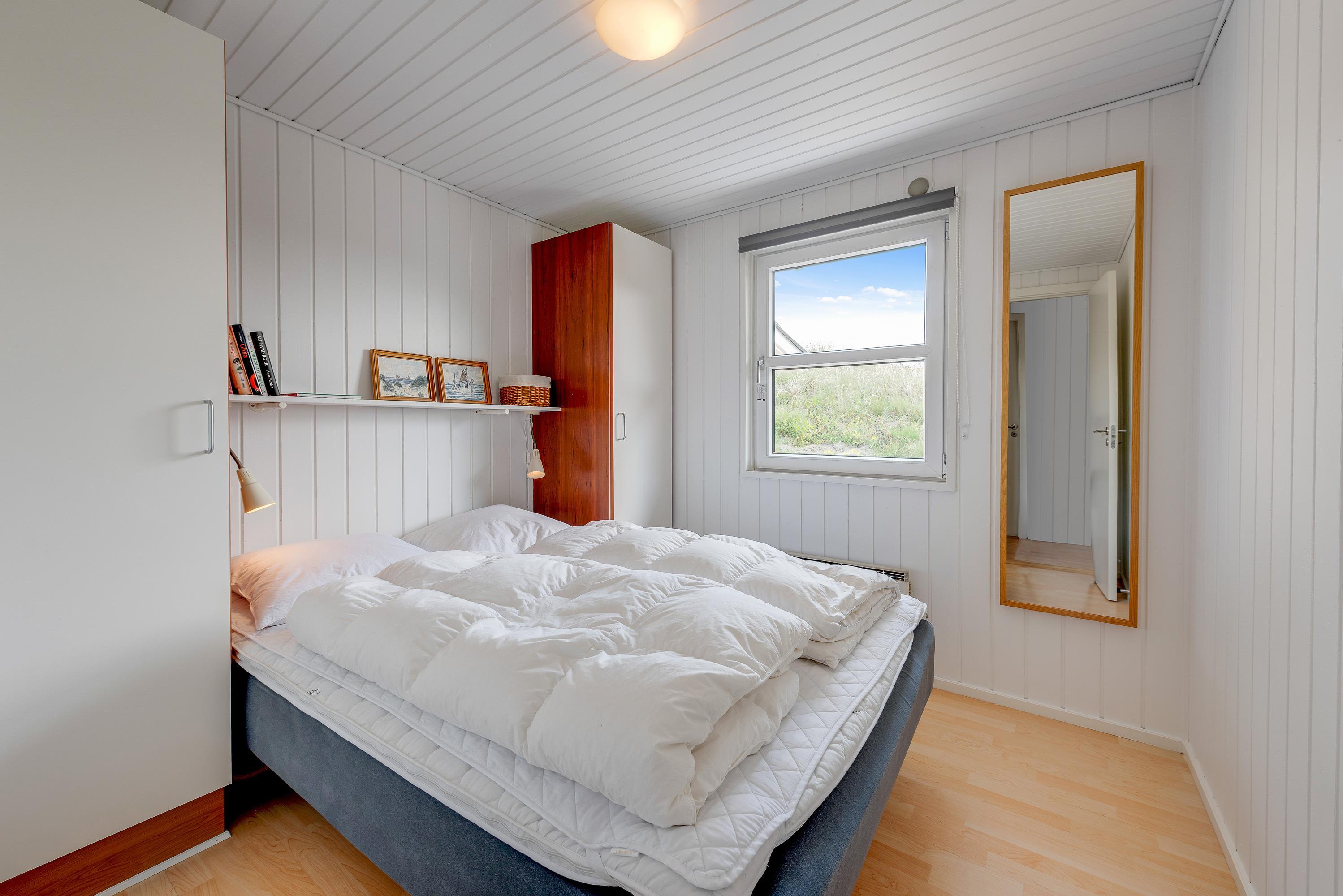 Sommerhusets 6 sovepladser fordeler sig på 3 værelser, hvoraf der er 2 med dobbeltseng. Det sidste værelse er indrettet med en enkeltseng, og her er der også en køjeseng, som kan bruges af et barn. Som et ekstra plus er der et fint anneks med 2 sovepladser, så I kan fordele jer, som det passer jer bedst.