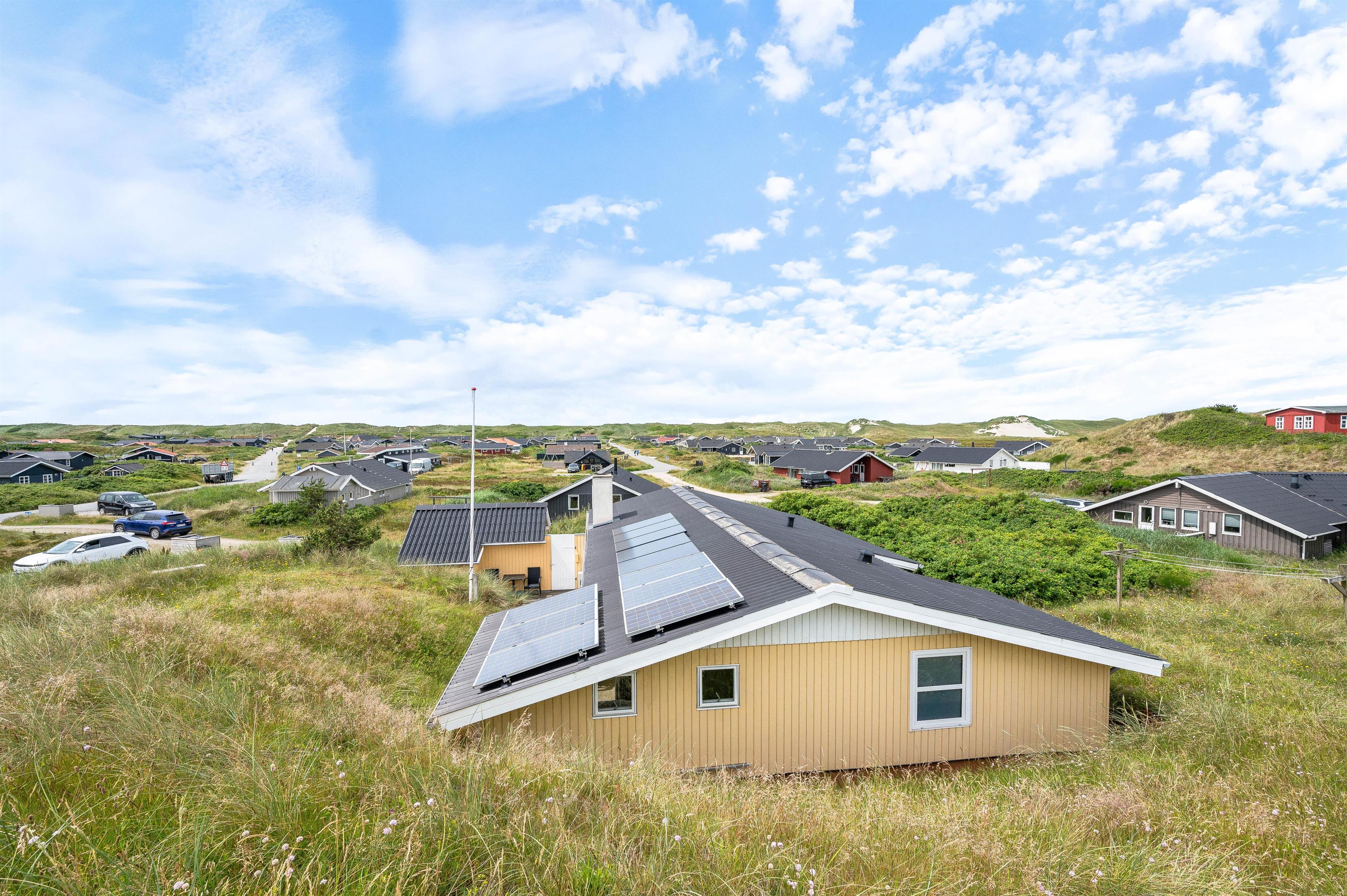 Dette feriehus har en rigtig god beliggenhed på en kuperet naturgrund i det flotte område, Bjerregård, som kendetegnes ved klitlandskabet og den korte afstand til Vesterhavet, som sikkert vil være målet for mange af jeres udflugter og gåture under ferien, da både hunde, børn og barnlige sjæle kan boltre sig her.