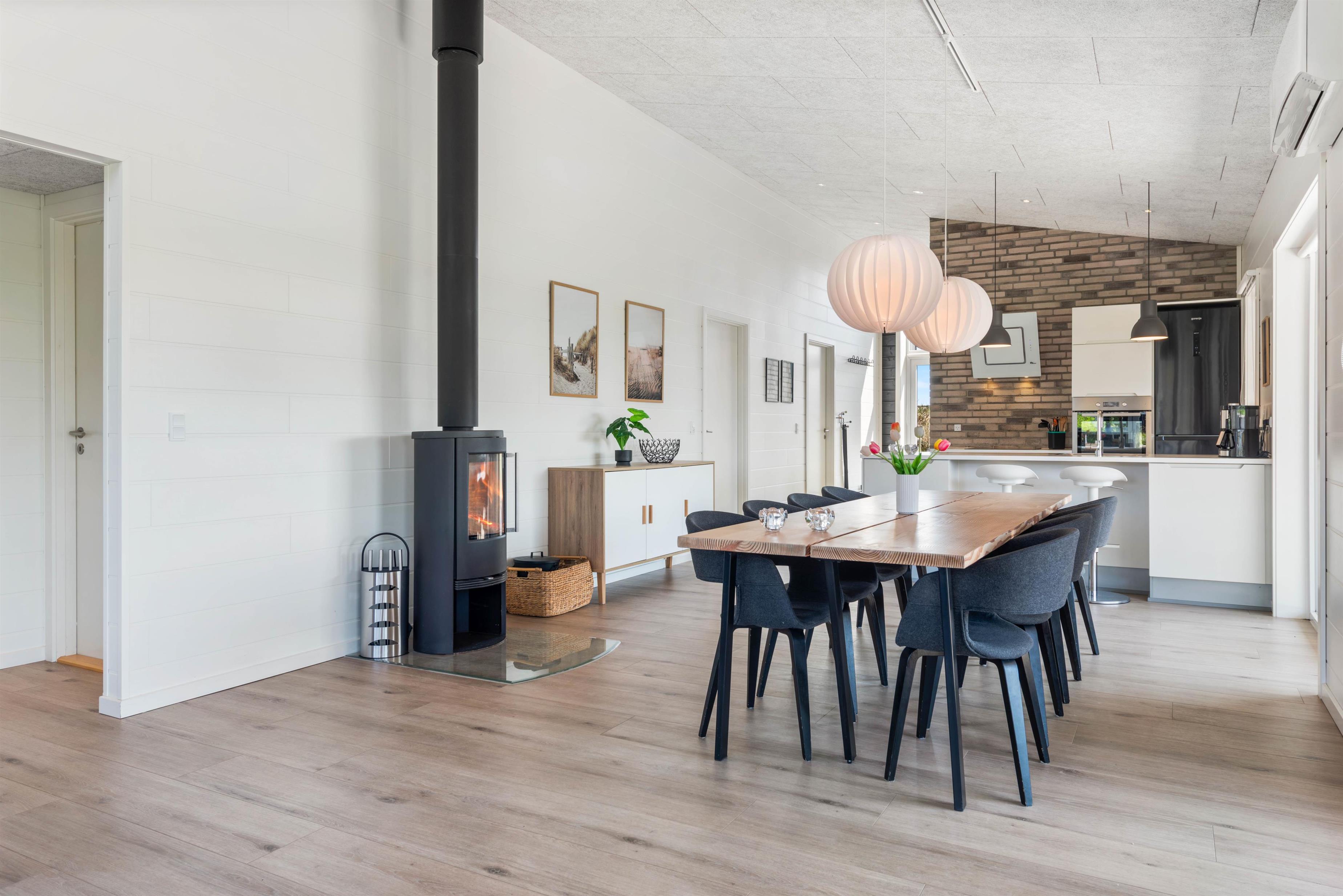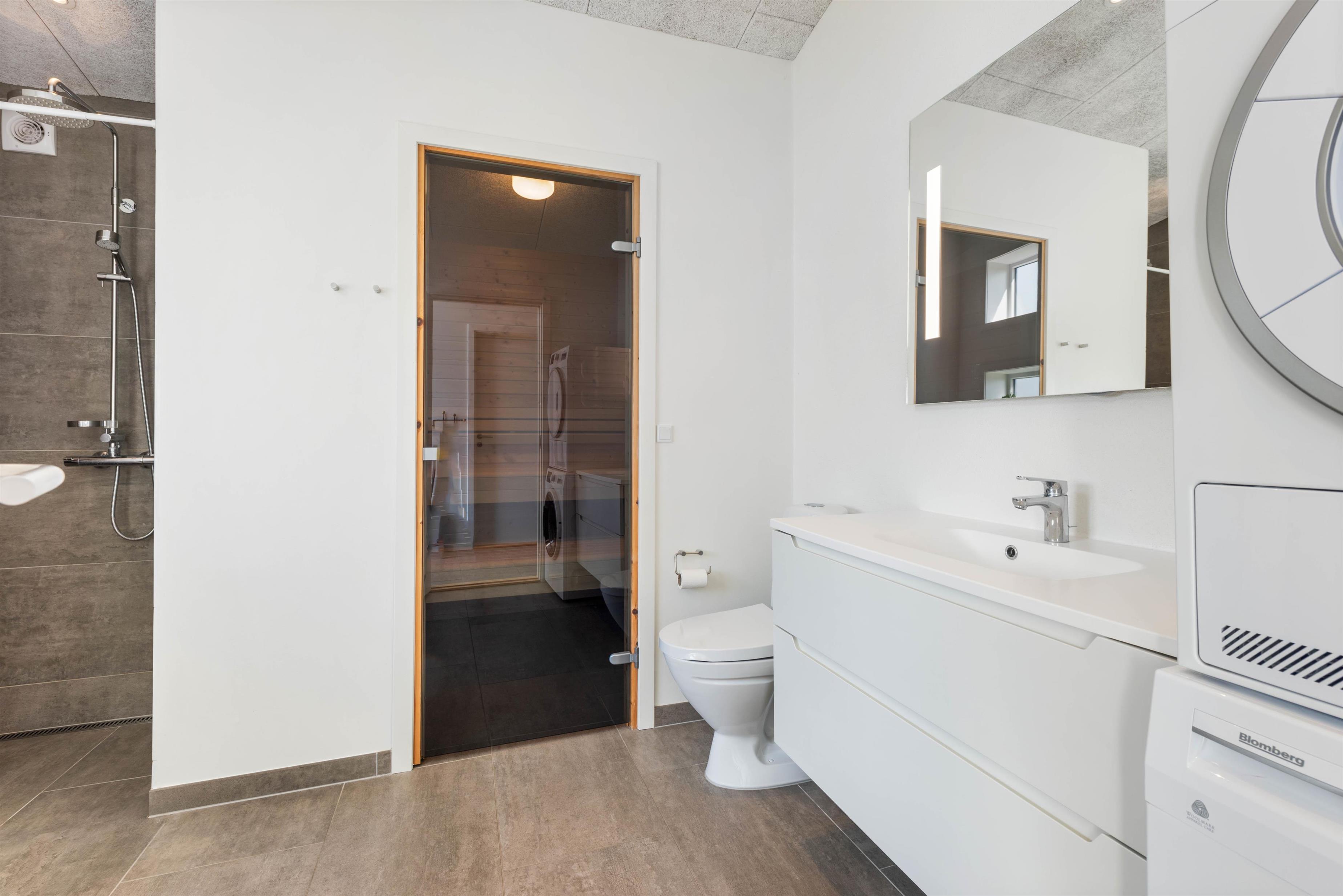 I behøver ikke tænke meget på feriepakningen, for her er både vaskemaskine og tørretumbler. En energibesparende varmpumpe finder I naturligvis også her. Overalt er der flotte trægulve eller klinker.