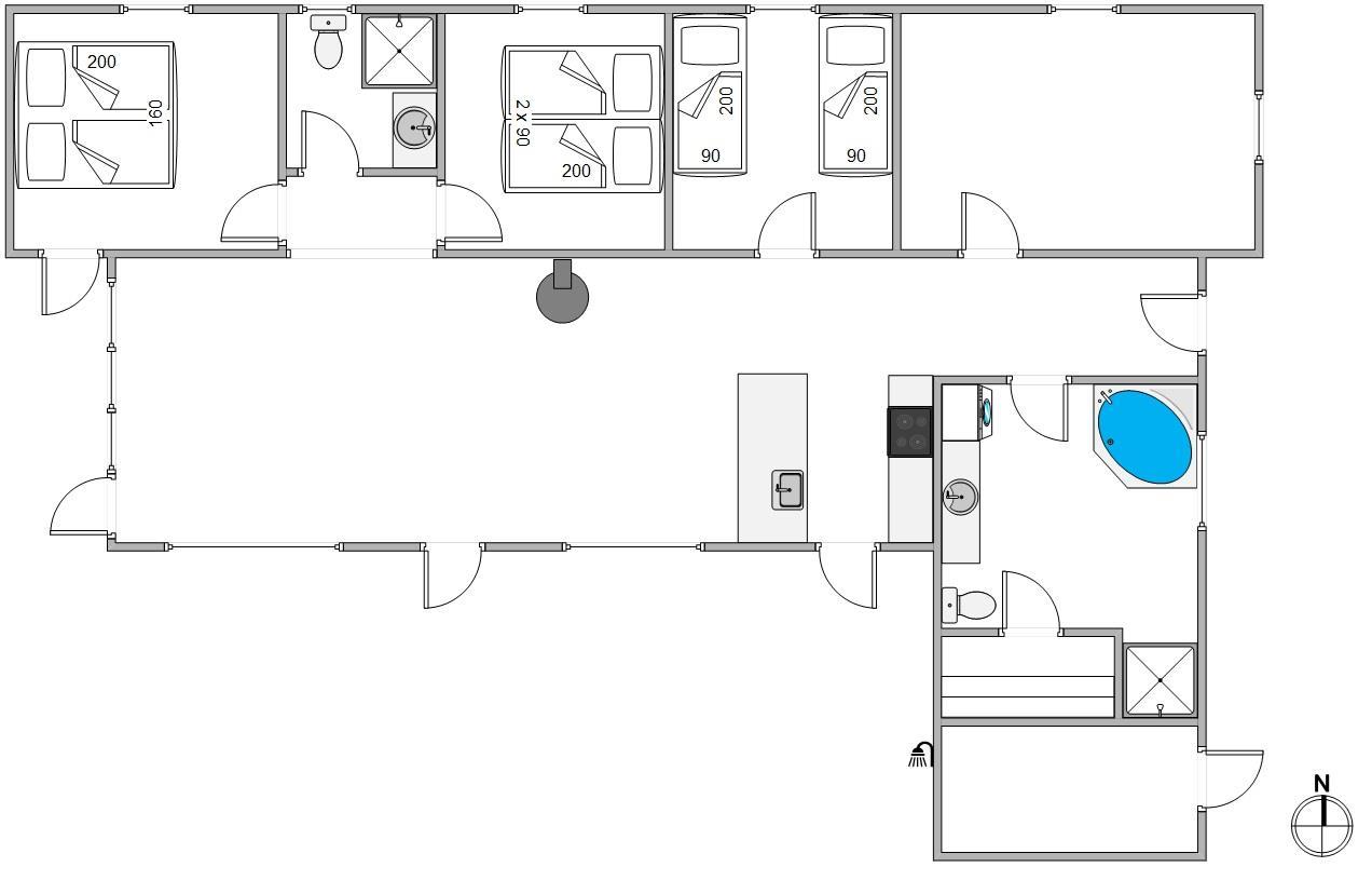Huset er på Dortheasvej 14 er med 3 soverum, hvoraf 1 værelse med dobbeltseng og 2 værelser med hver 2 enkeltsenge. Hele to badeværelser, som begge har alt, hvad man har brug for, afhjælper eventuelle kødannelser, når der skal børstes tænder. I forbindelse med det ene badeværelse finder I også en skøn sauna, som indbyder til wellness.